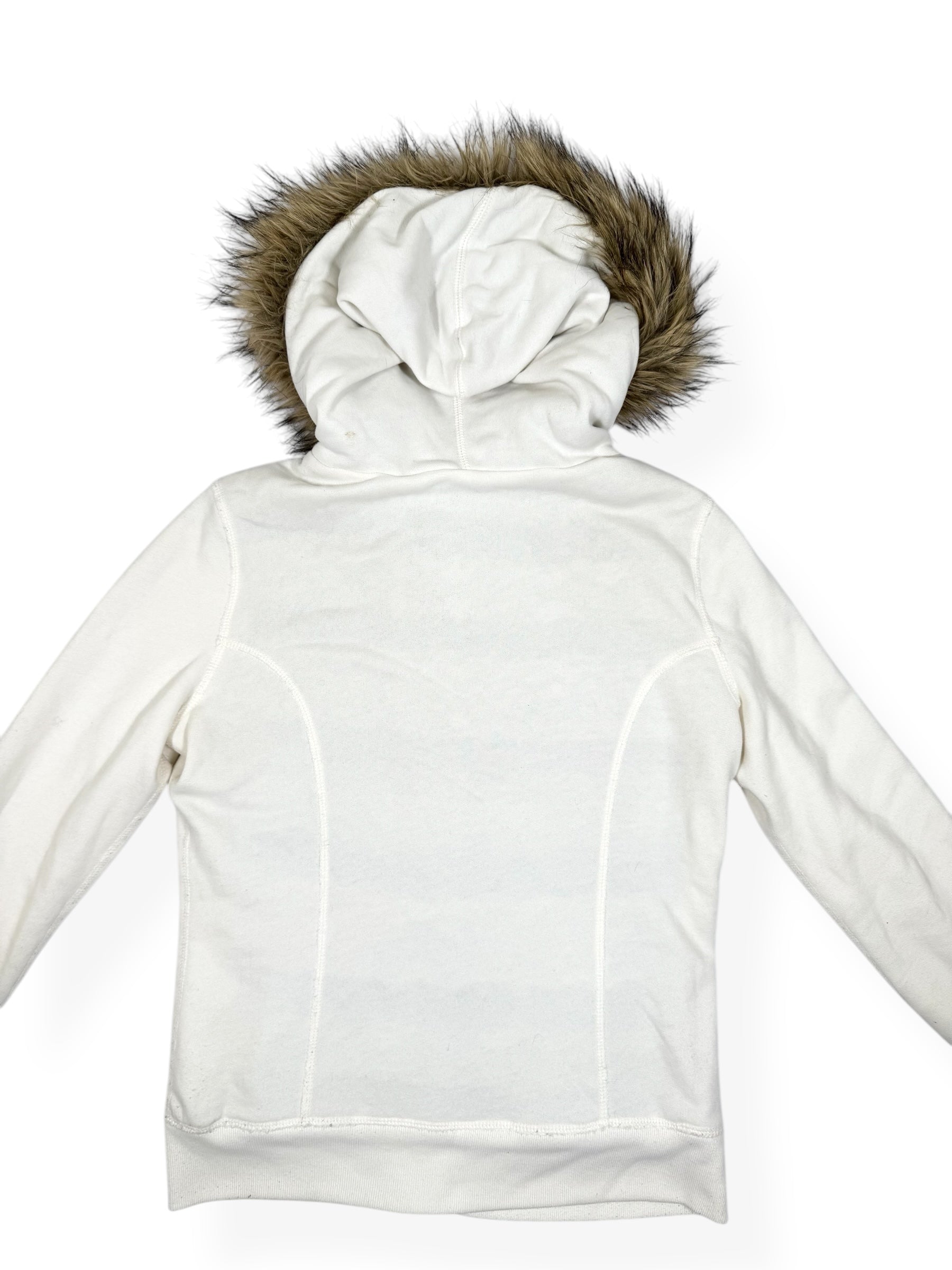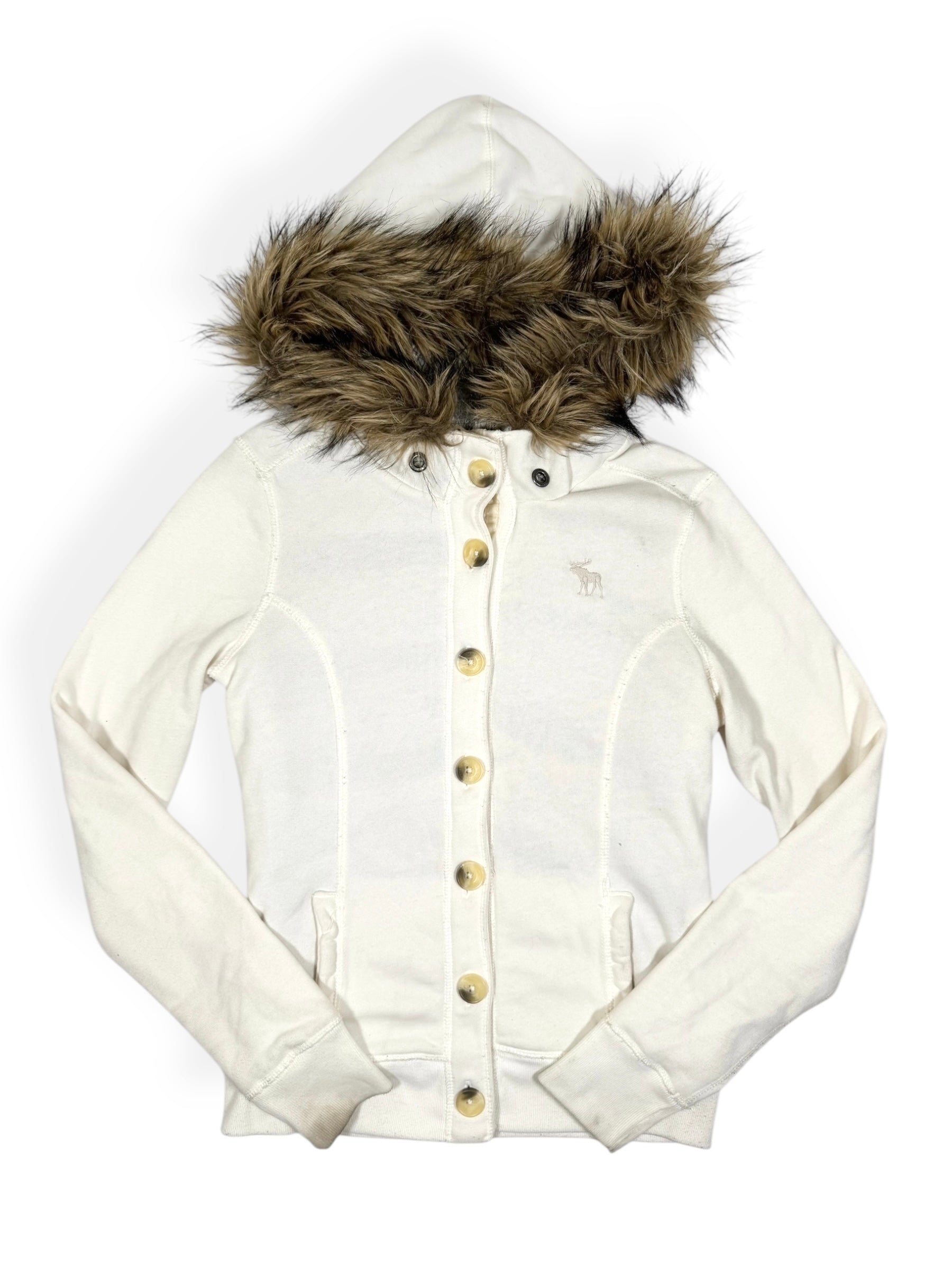 00s Abercrombie & fitch white button up front jacket with fur hood🤍