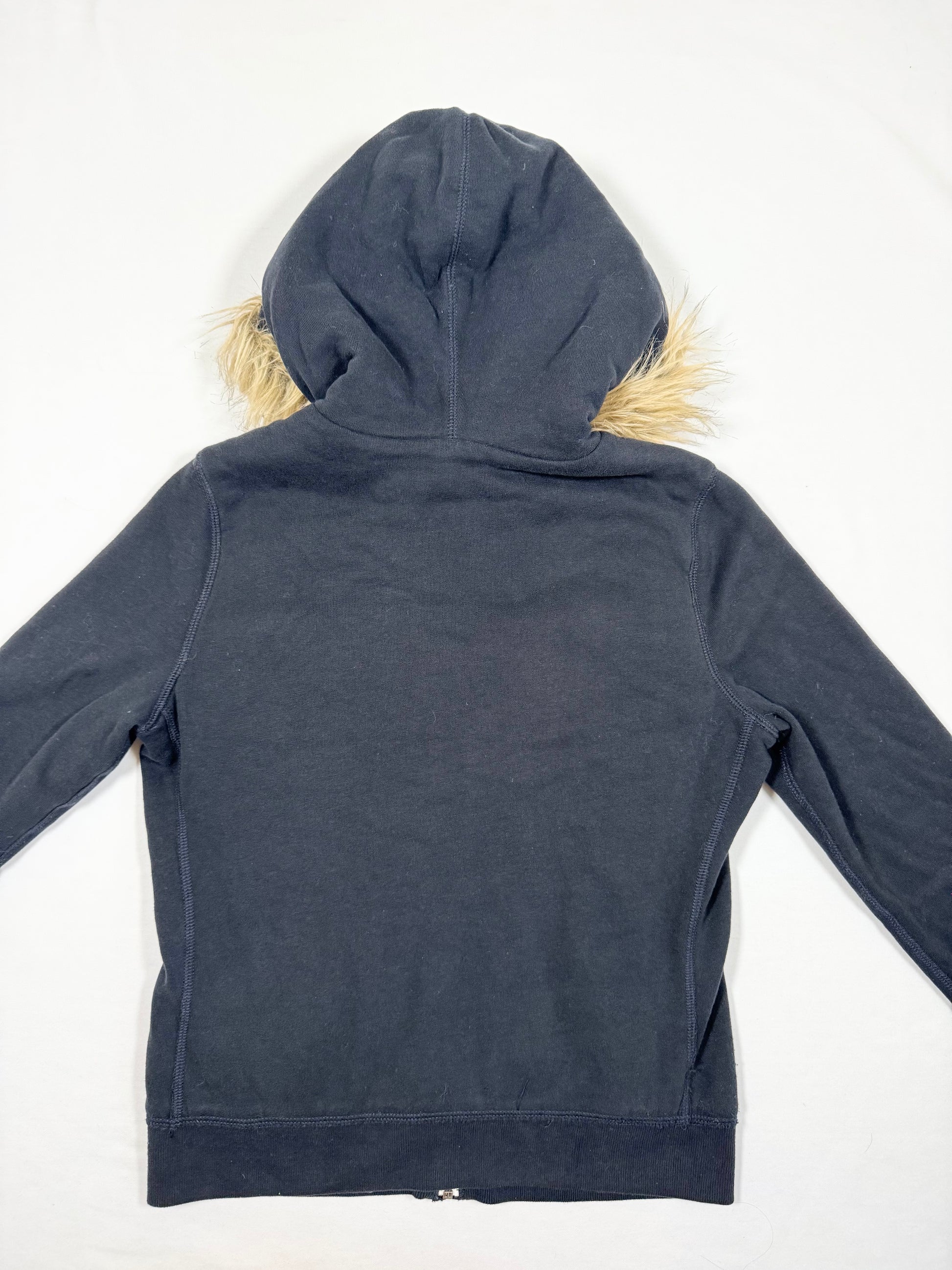 Perfect 00s navy blue Abercrombie zip up with fur hood🖤Logo across the front🖤