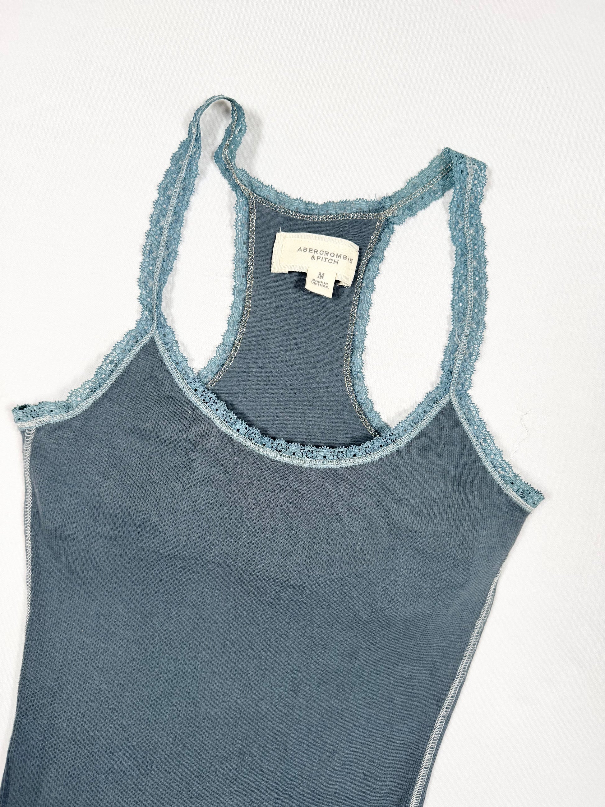 Adorable 00s Abercrombie and fitch blue cami with lace trim🤍