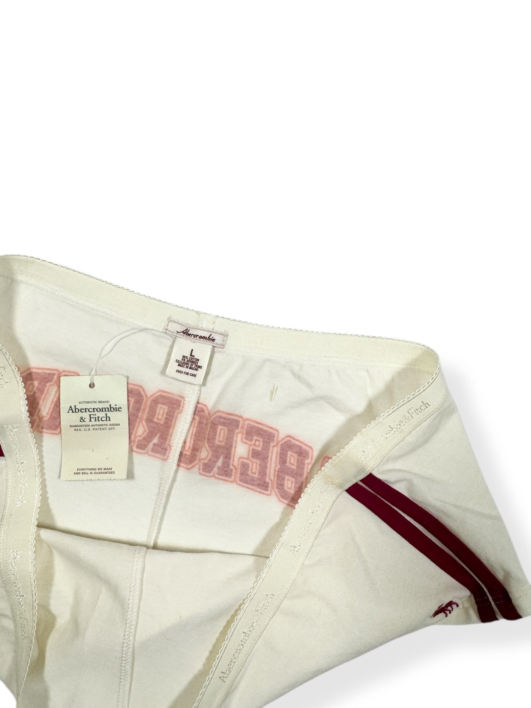 Hot 00s low rise Abercrombie micro shorts♥️brand new with tags♥️White with red logo across the back and side stripes♥️Perfect for a festival♥️