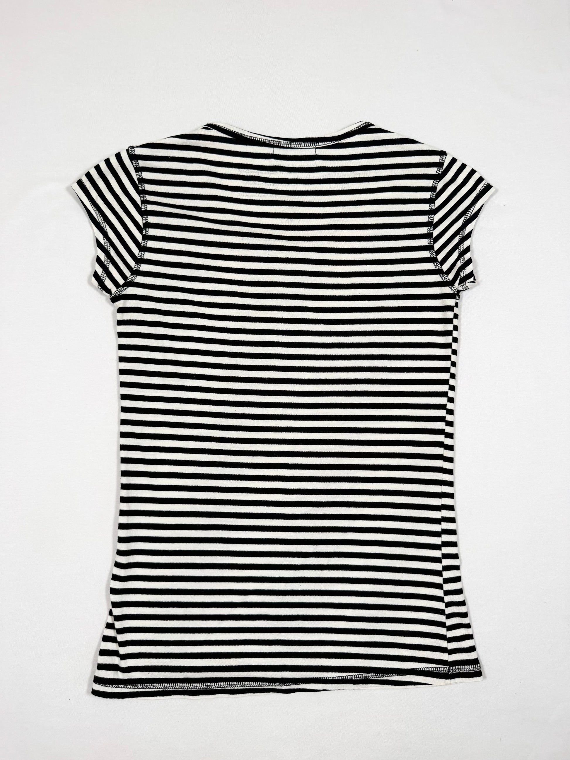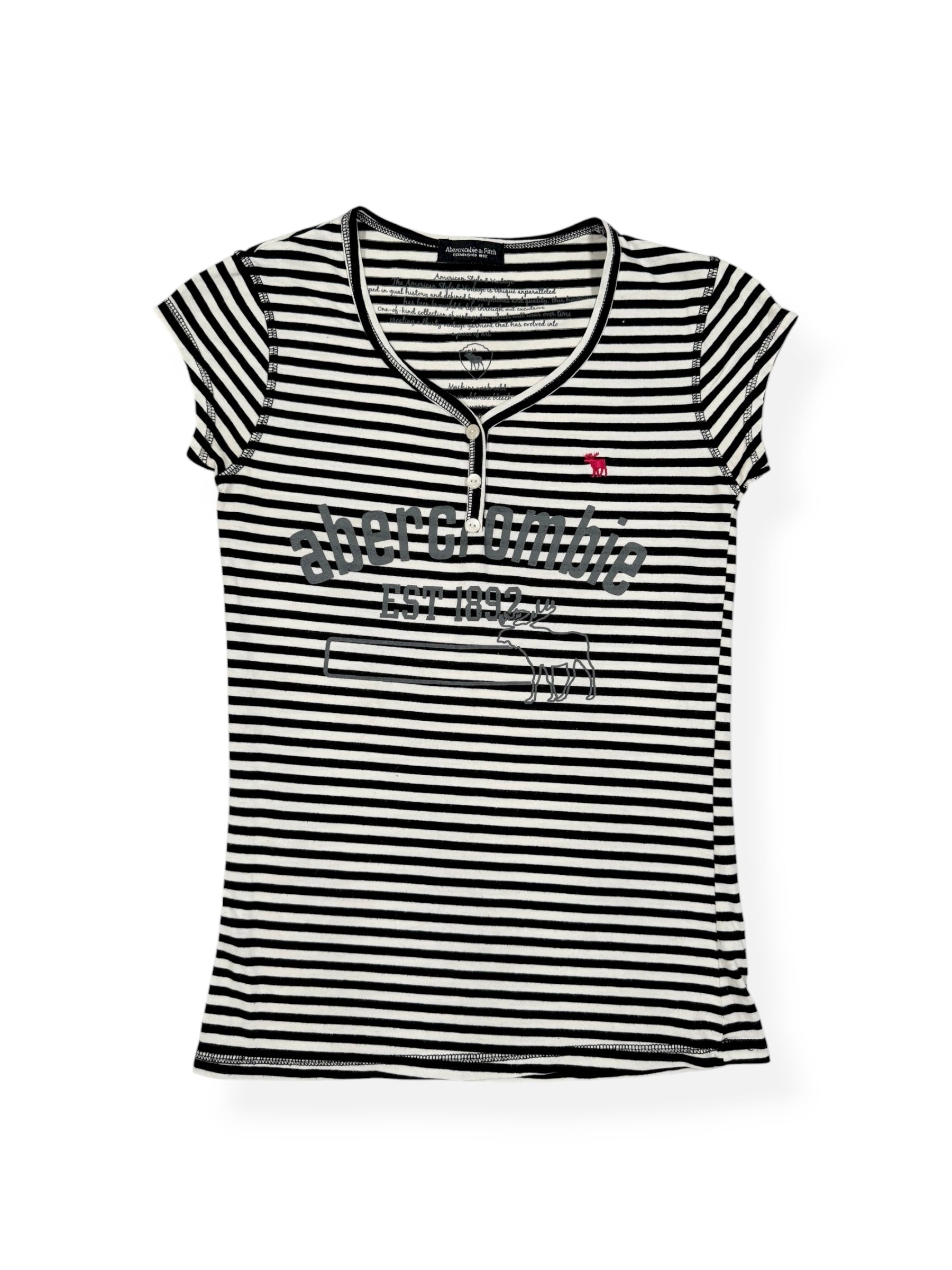 Cute 00s black and white striped Abercrombie tee🤍Button up front and logo print🖤
