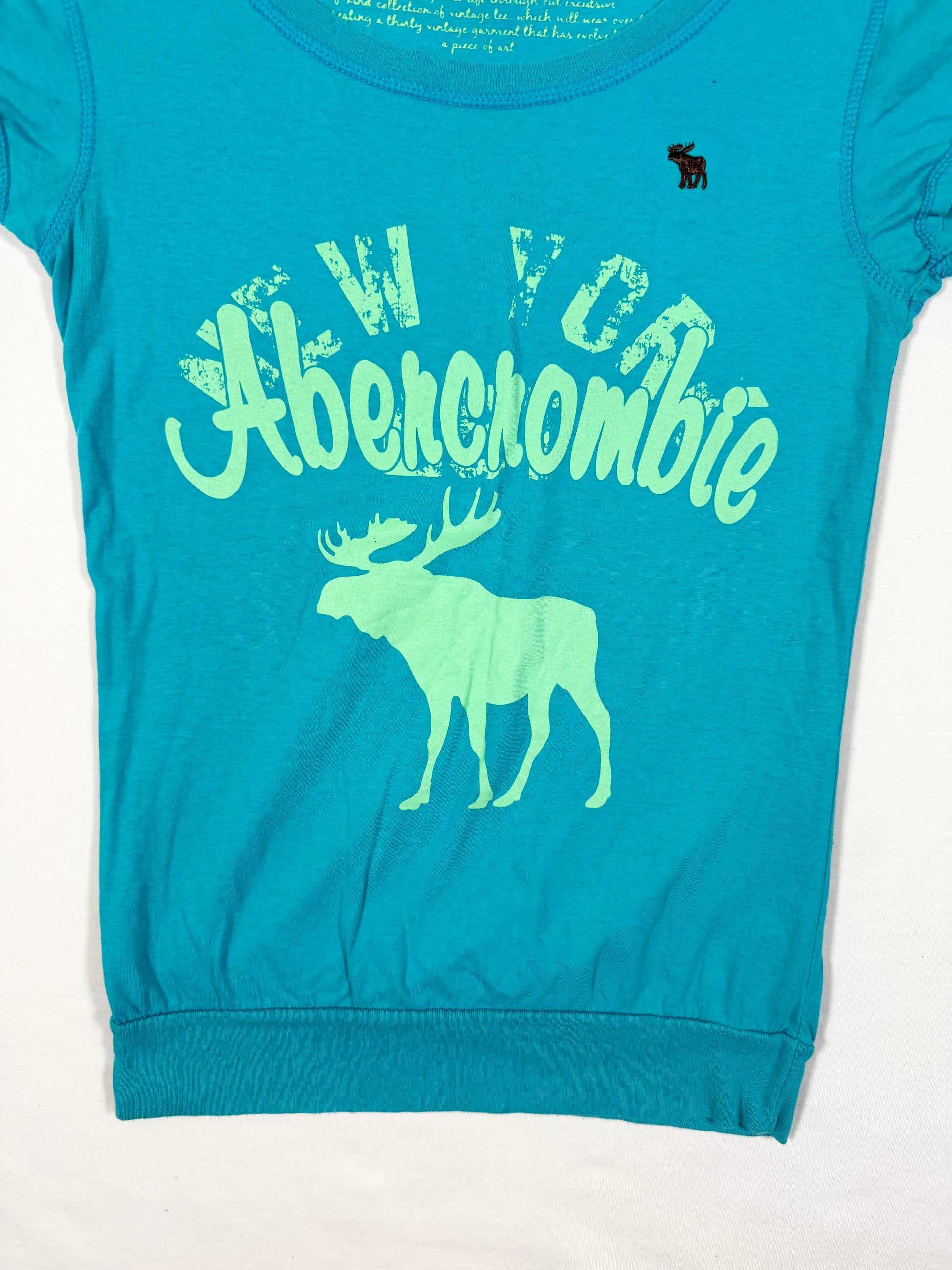 Adorable 00s Abercrombie tee in blue with green logo print🤍