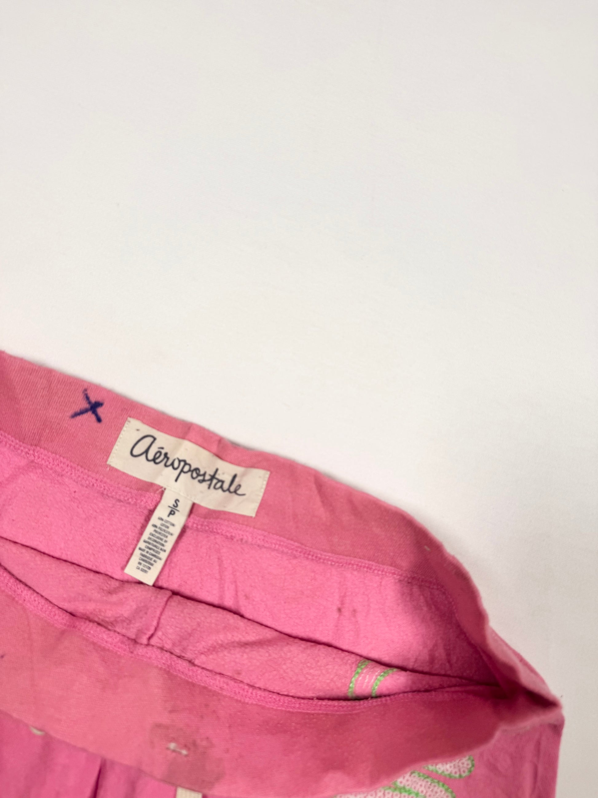Super cute 00s aero low rise pink drawstring shorts🩷Green sequin logo on the front🩷