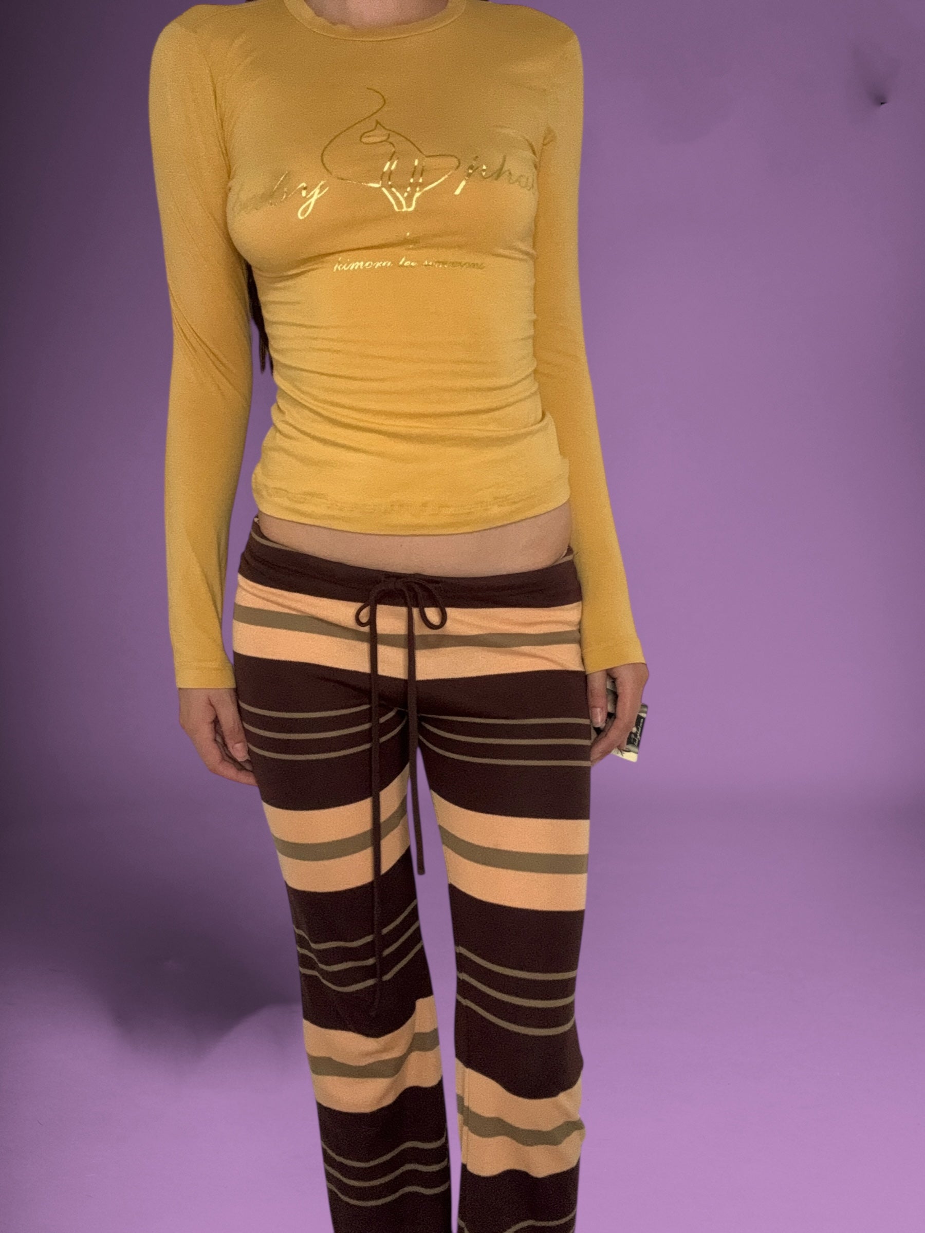Cute 00s alba Rosa brand low rise pants🤎Brown and dusty yellow stripes🤎drawstring waistband🤎Micro knit fabric🤎