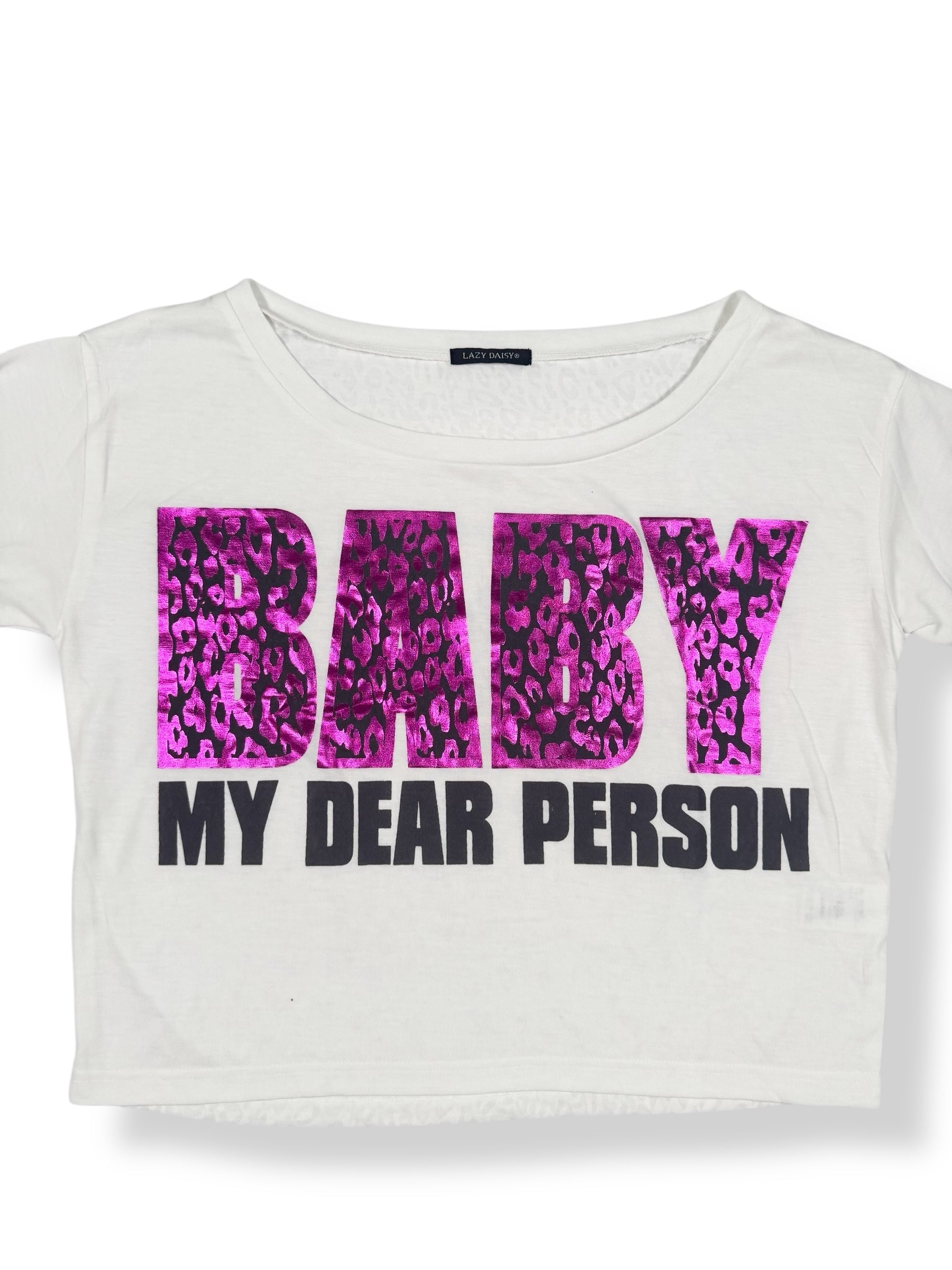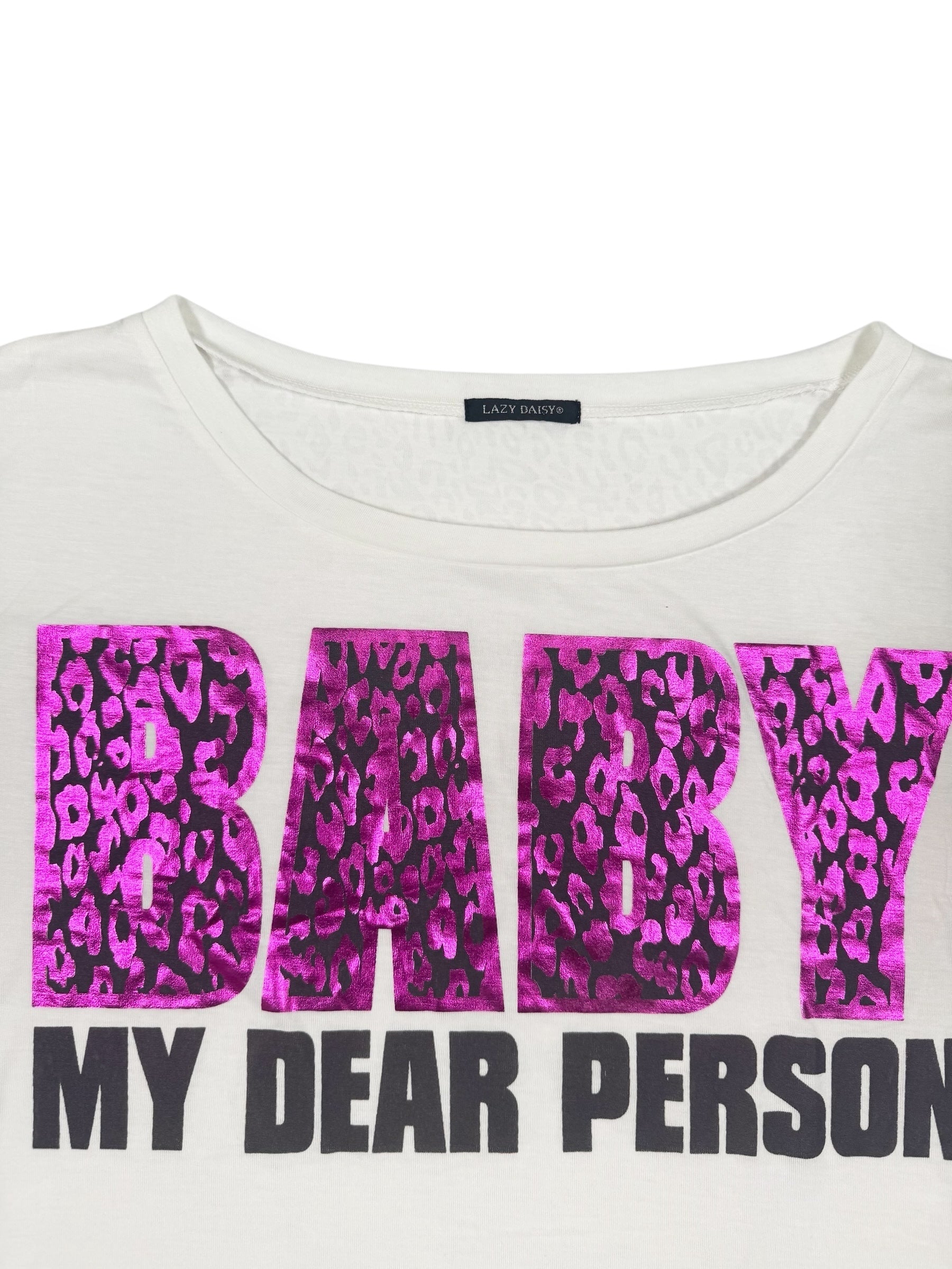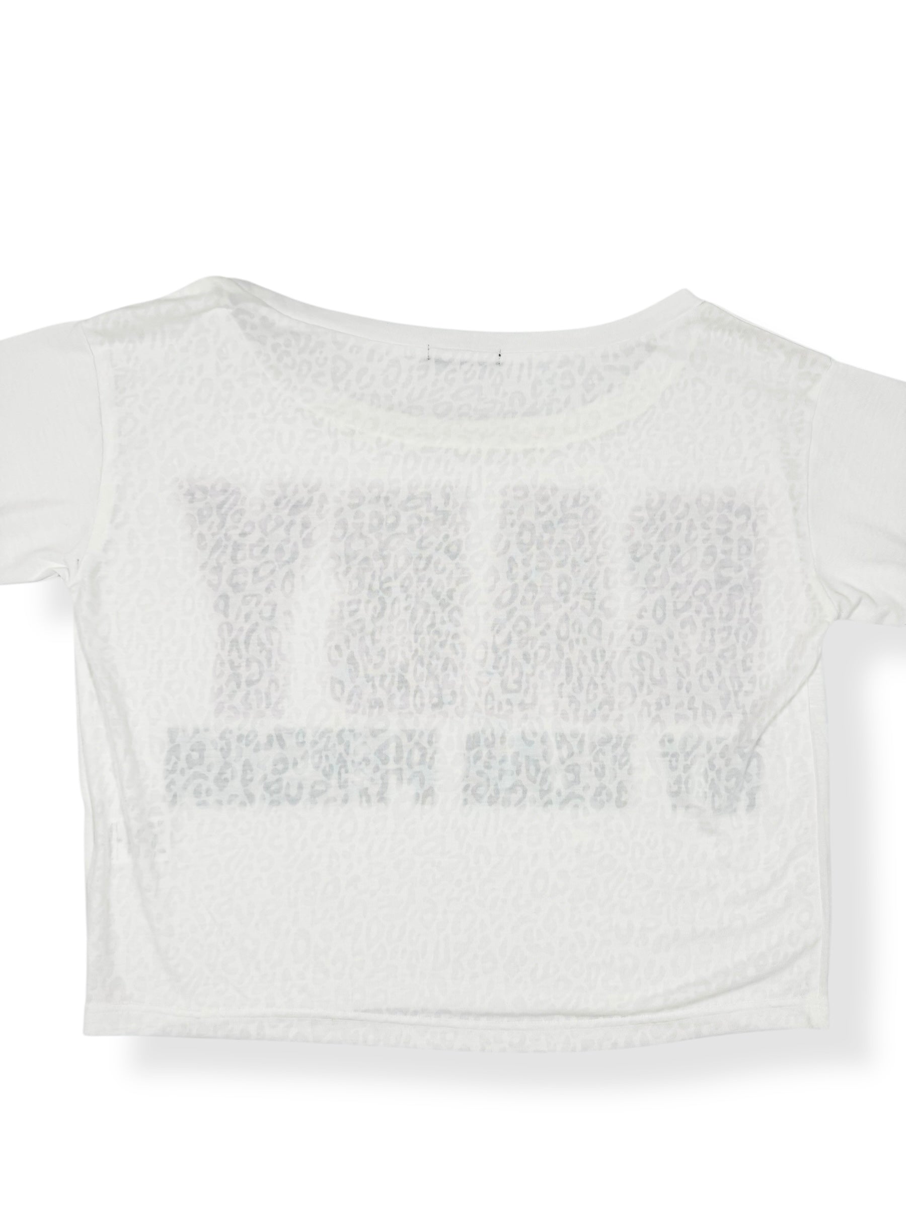 Cute 00s white baggy Long sleeved top with purple leopard “baby” print💜Leopard print sheer back💜