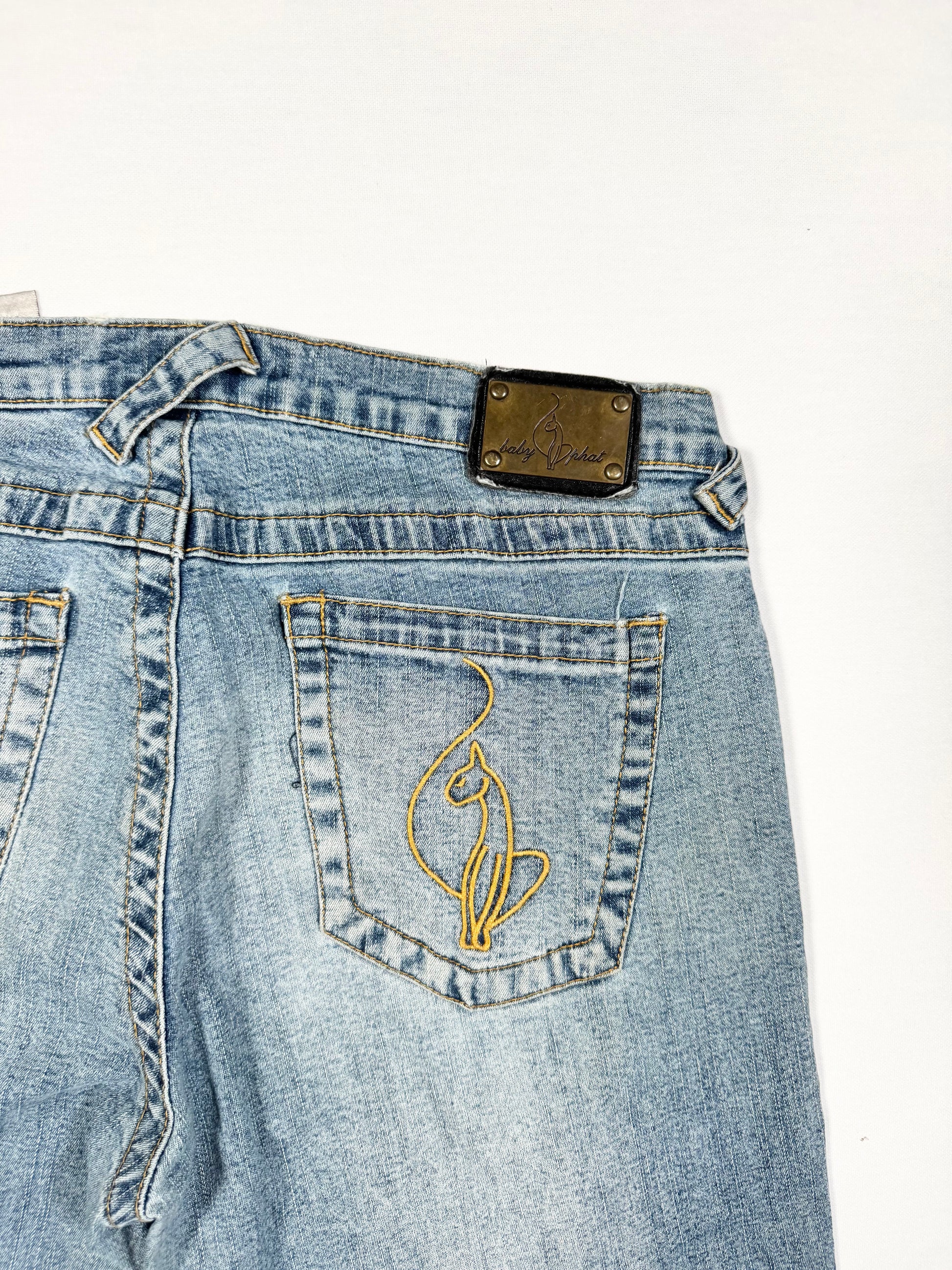 Perfect 00s low rise baby phat flared jeans in lightwash denim🤍Embroidered logo on the back🤍