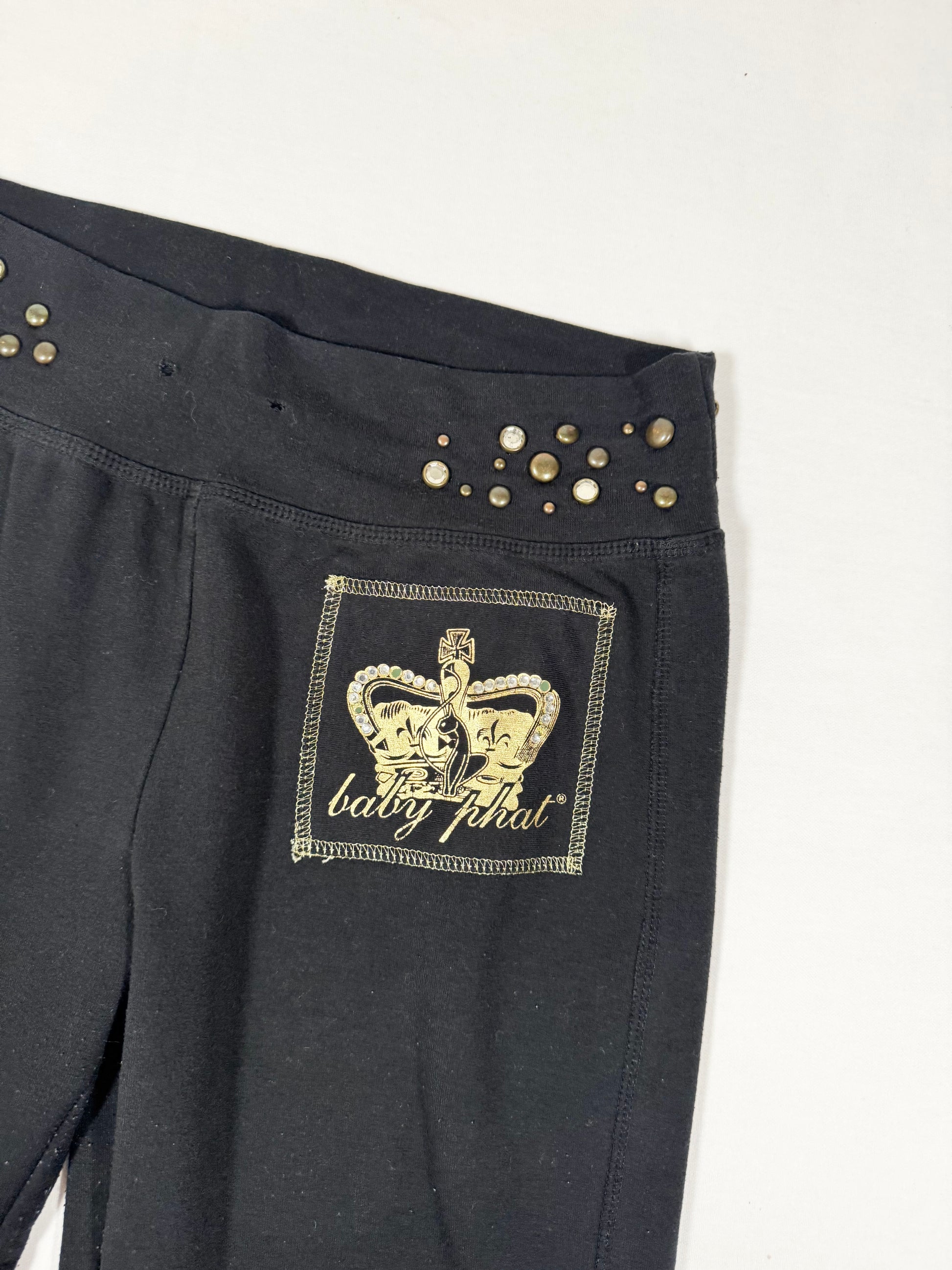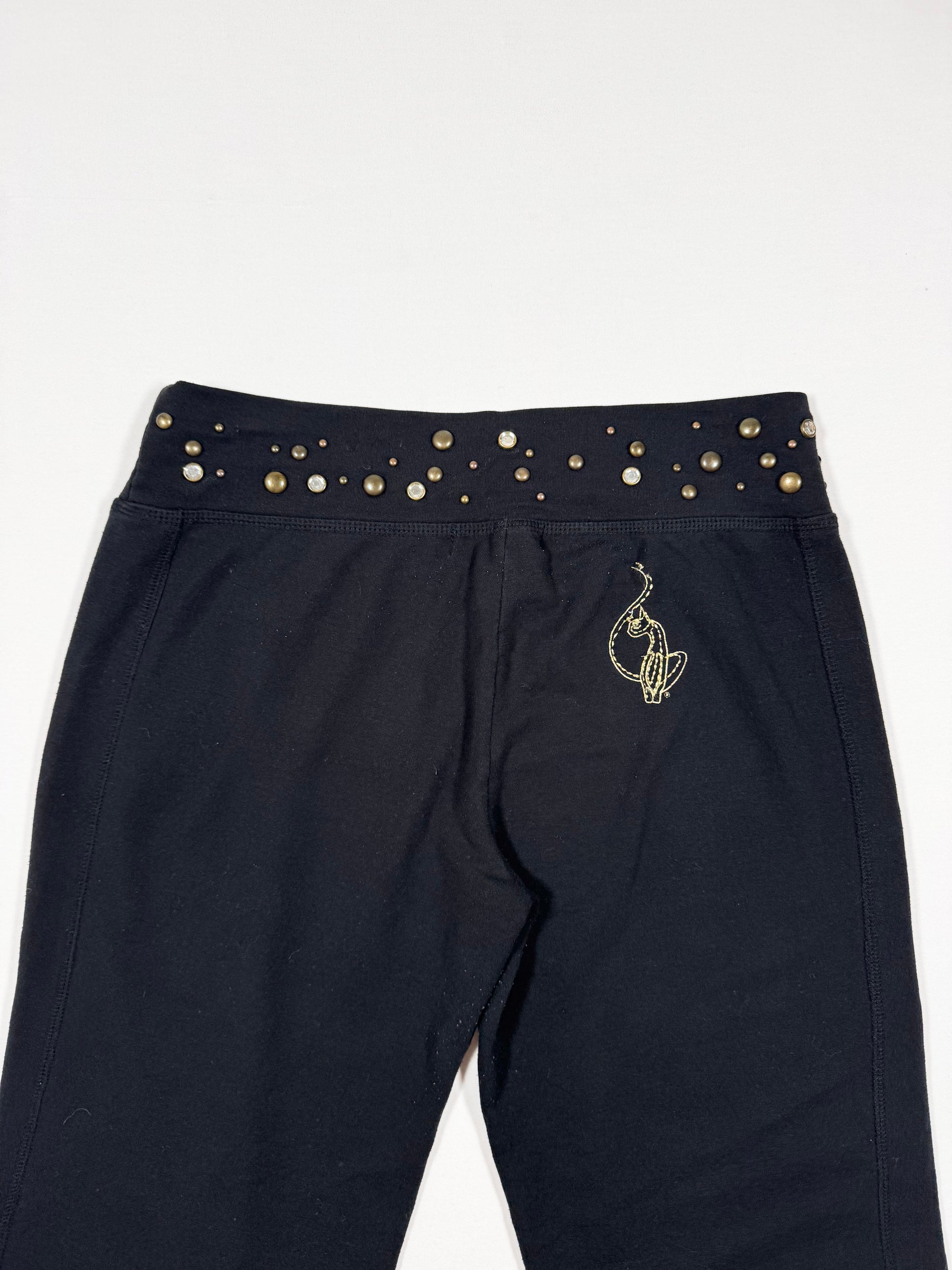 Sick 00s baby phat low rise Trackpants in black🖤Diamante and metal studded waistband🖤Gold logo print design on the front🖤