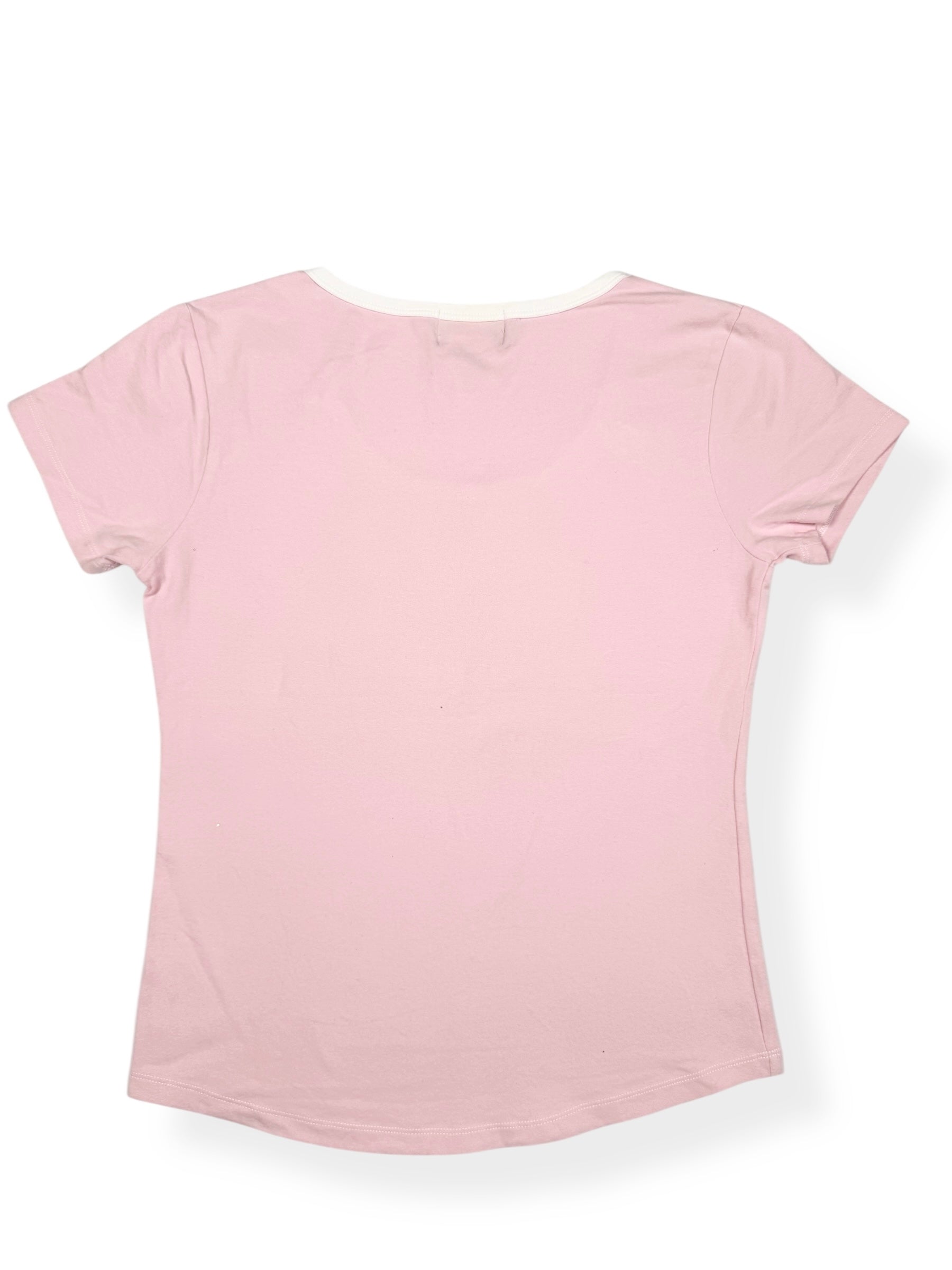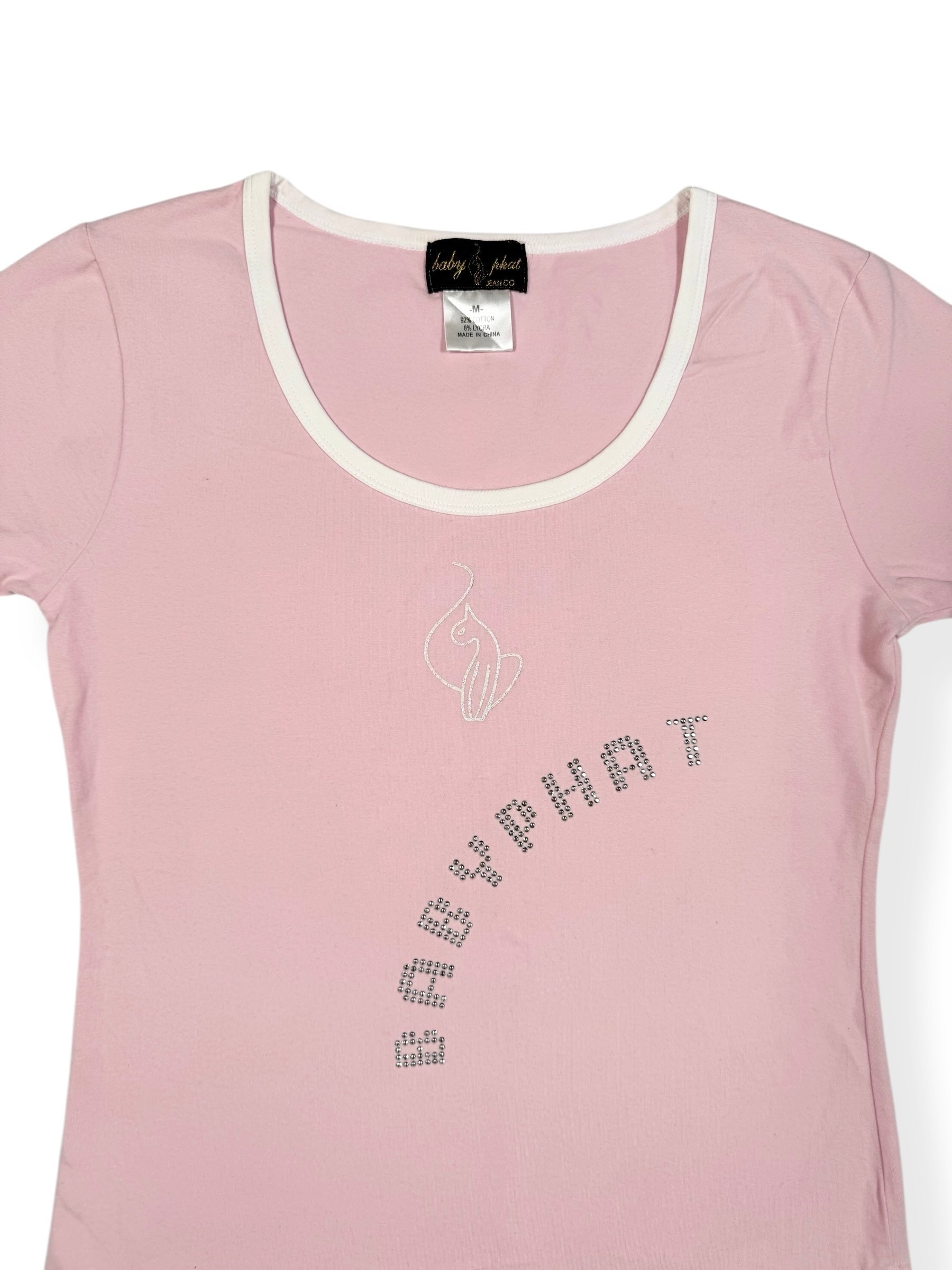 Adorable 00s light pink baby phat tee with white contrast trim neckline💗Diamante logo and white cat print on the front💗