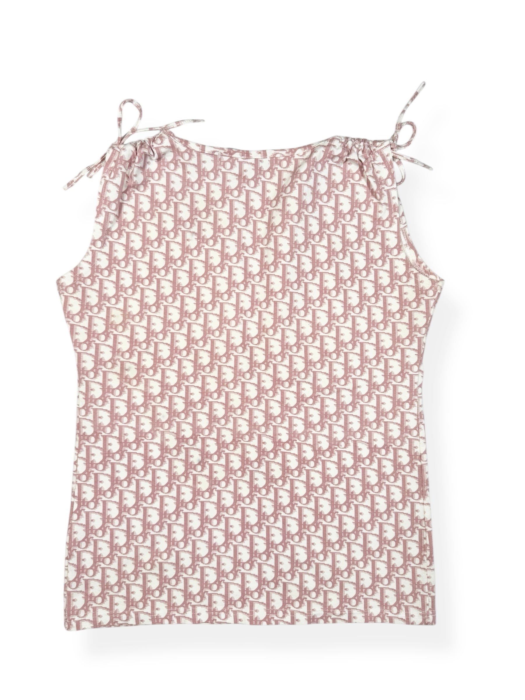 00s iconic replica Dior monogram tank in white and pink🩷Ruched shoulders with tie🩷