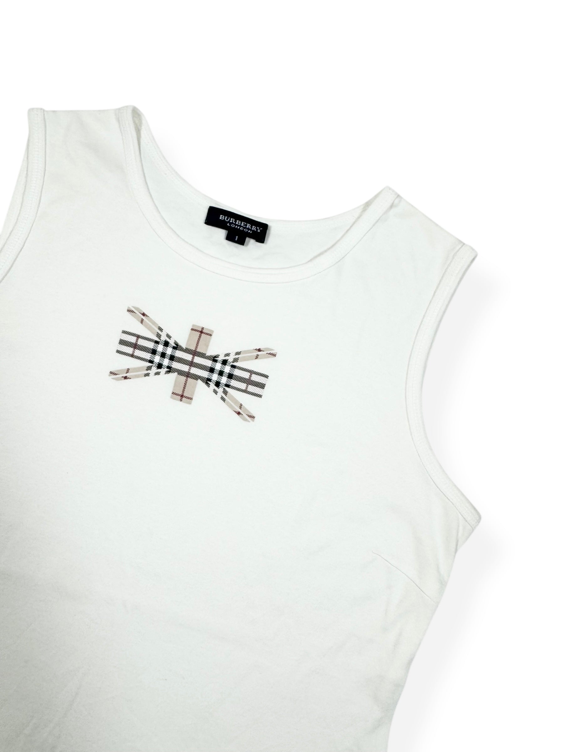 Super cute 00s Burberry tank in white with plaid Union Jack on the front🤎