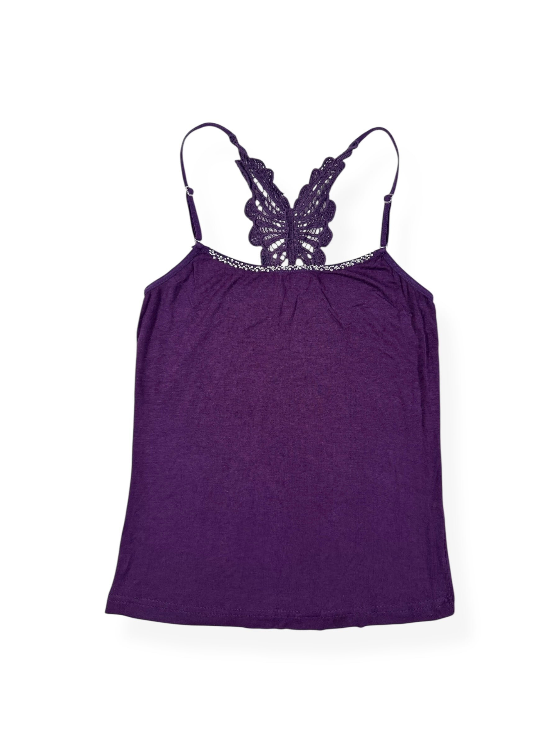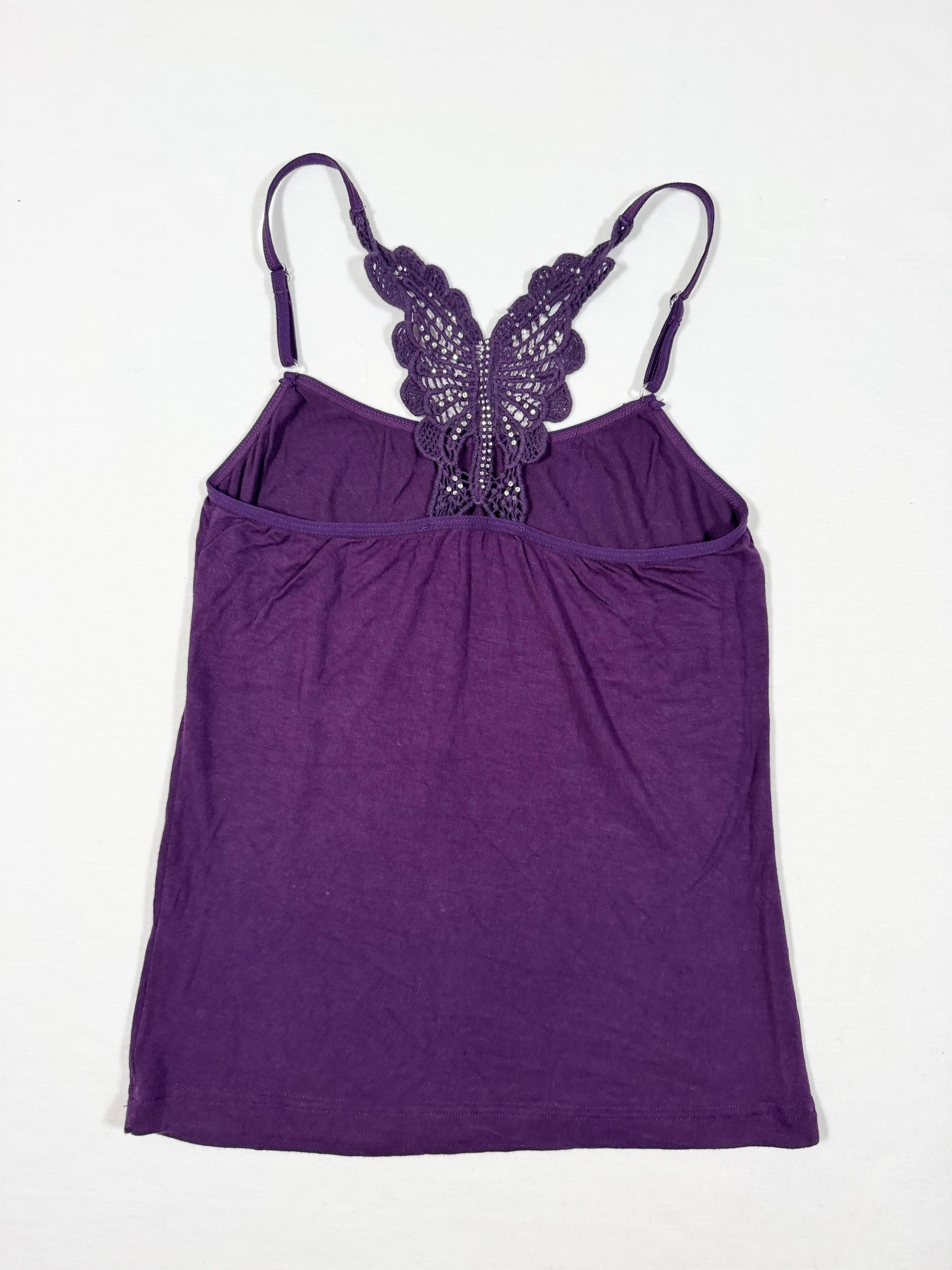Adorable 00s purple cami with butterfly back design💜Diamante trim neckline💜