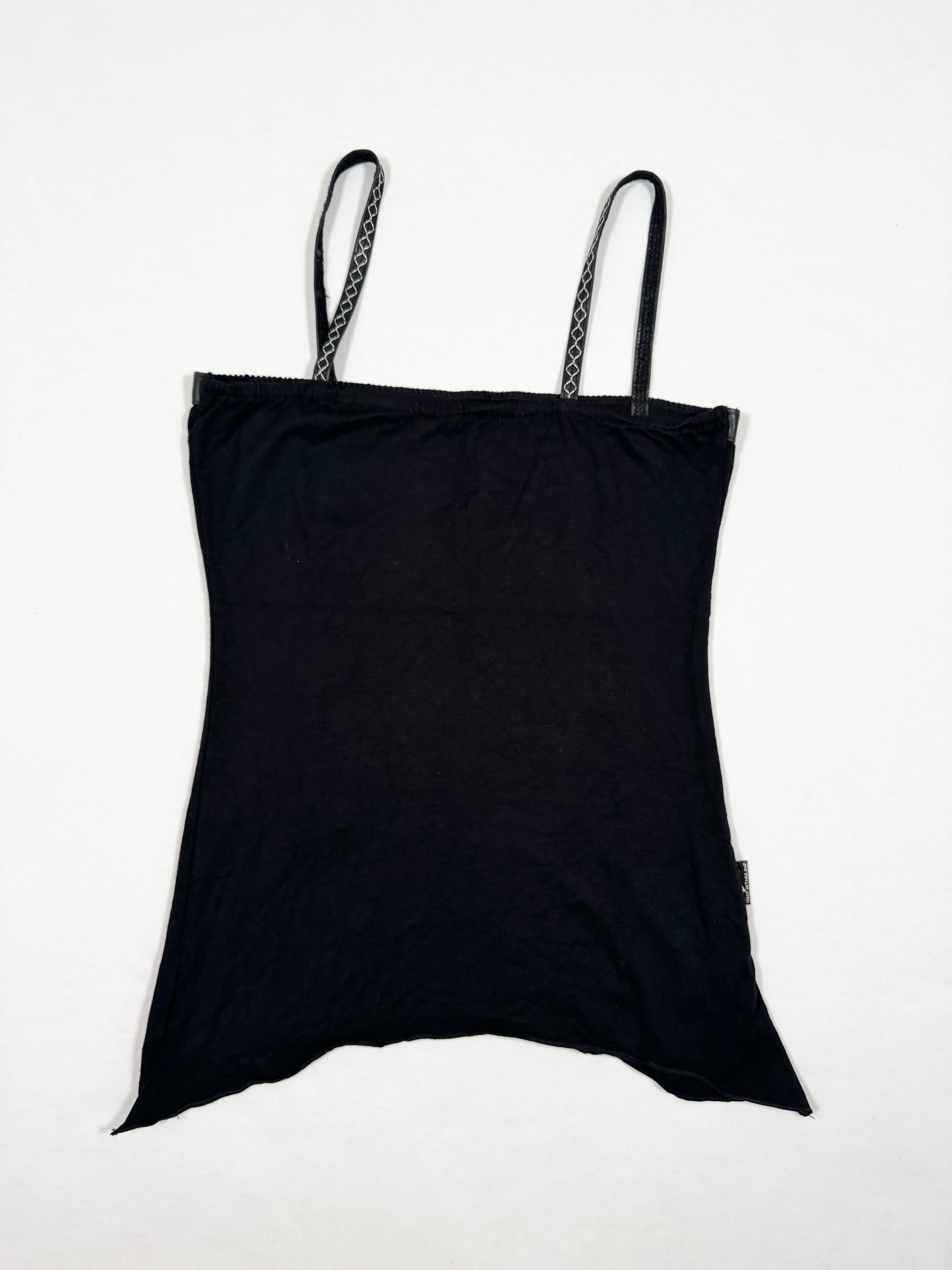 Super cute 00s black cami with asymmetric hem🖤Butterfly patch with suede tassel🖤