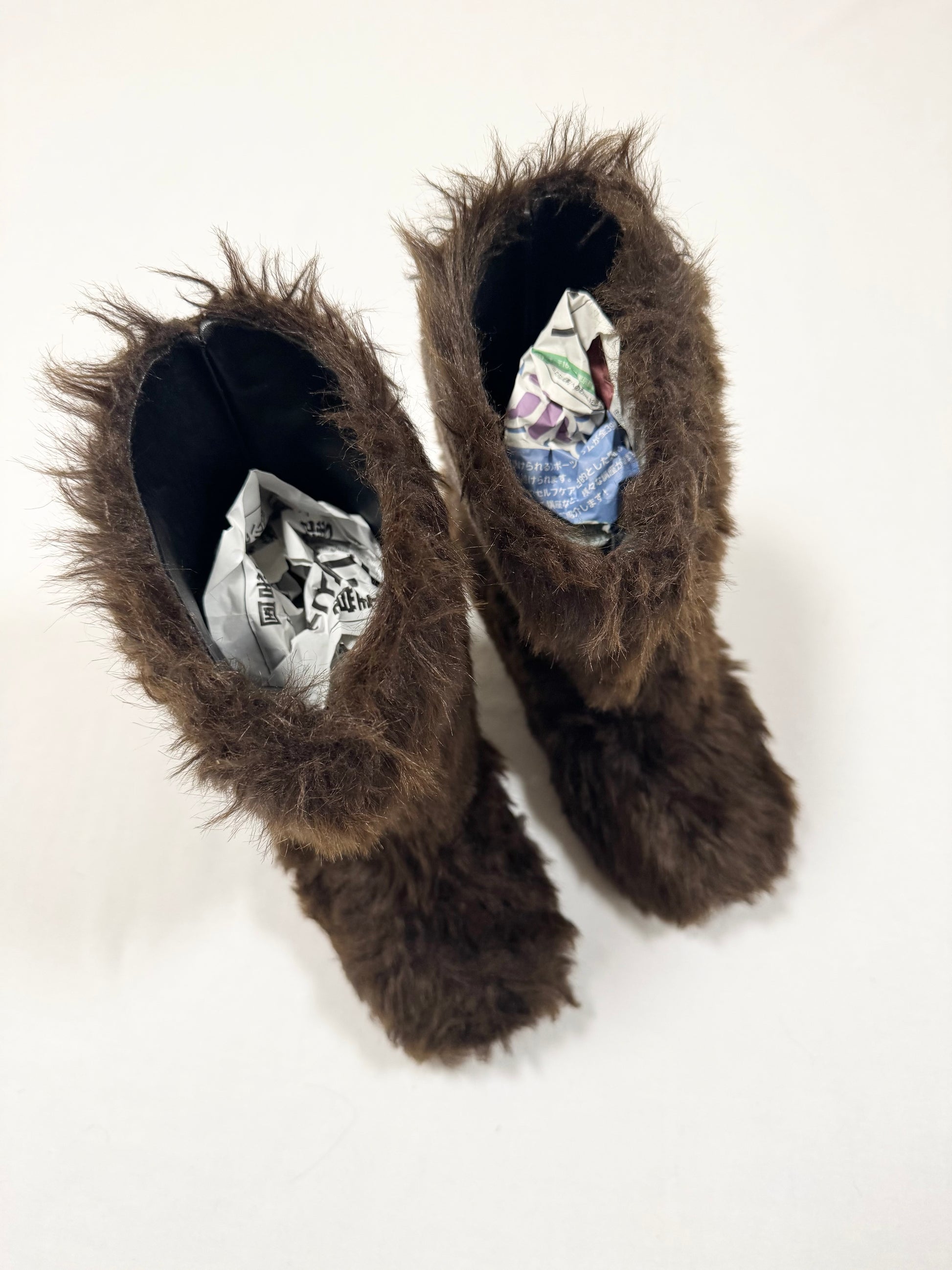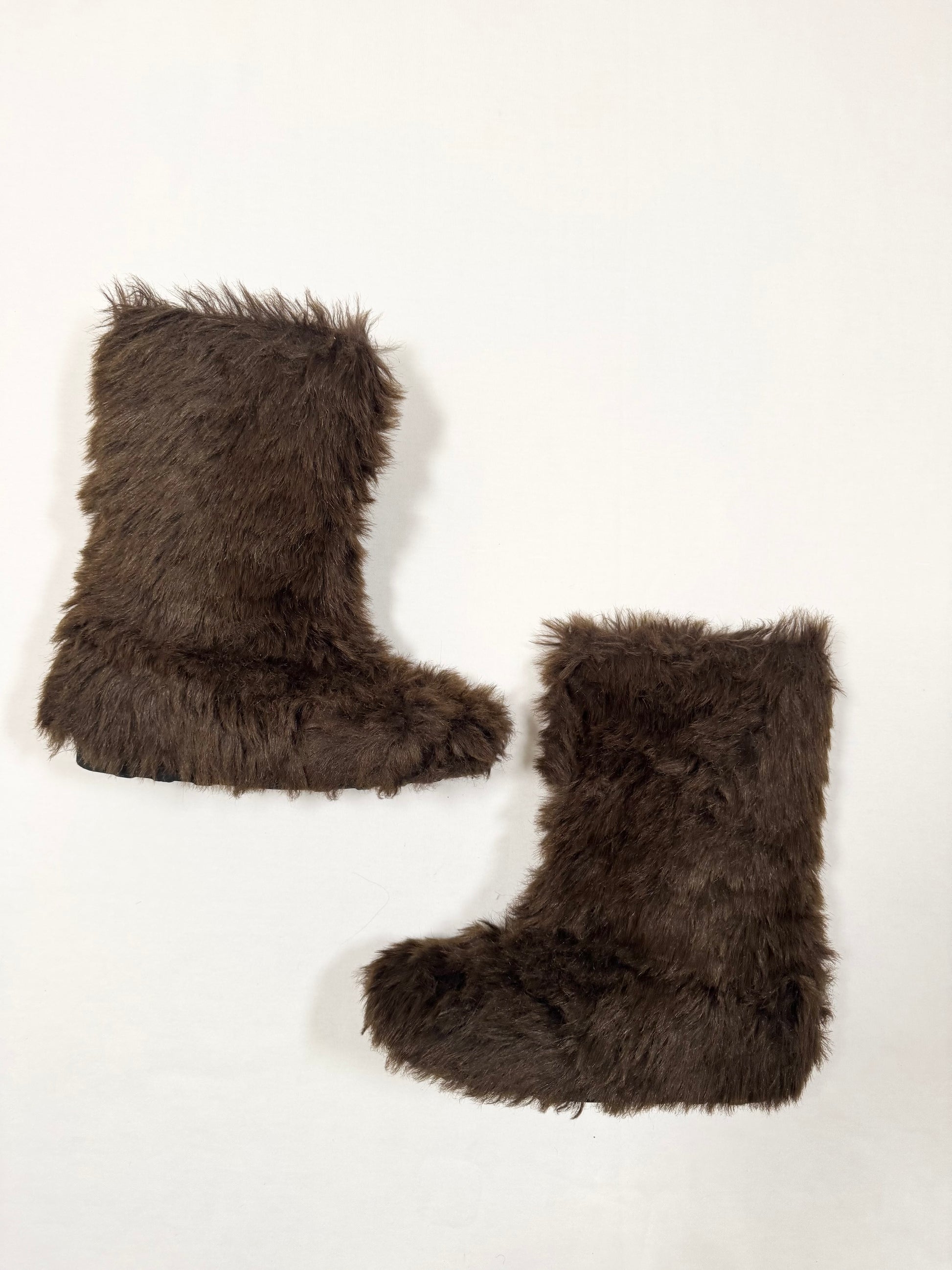 Caminado brand brown faux fur boots🤎Cone with the box🤎