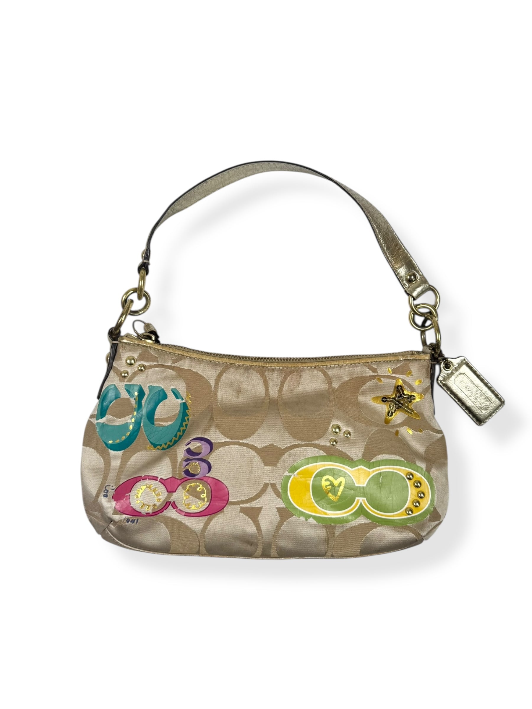 Adorable 00s coach bag🩷Tan Monogram logo design with colourful prints🩷Gold Strap🩷