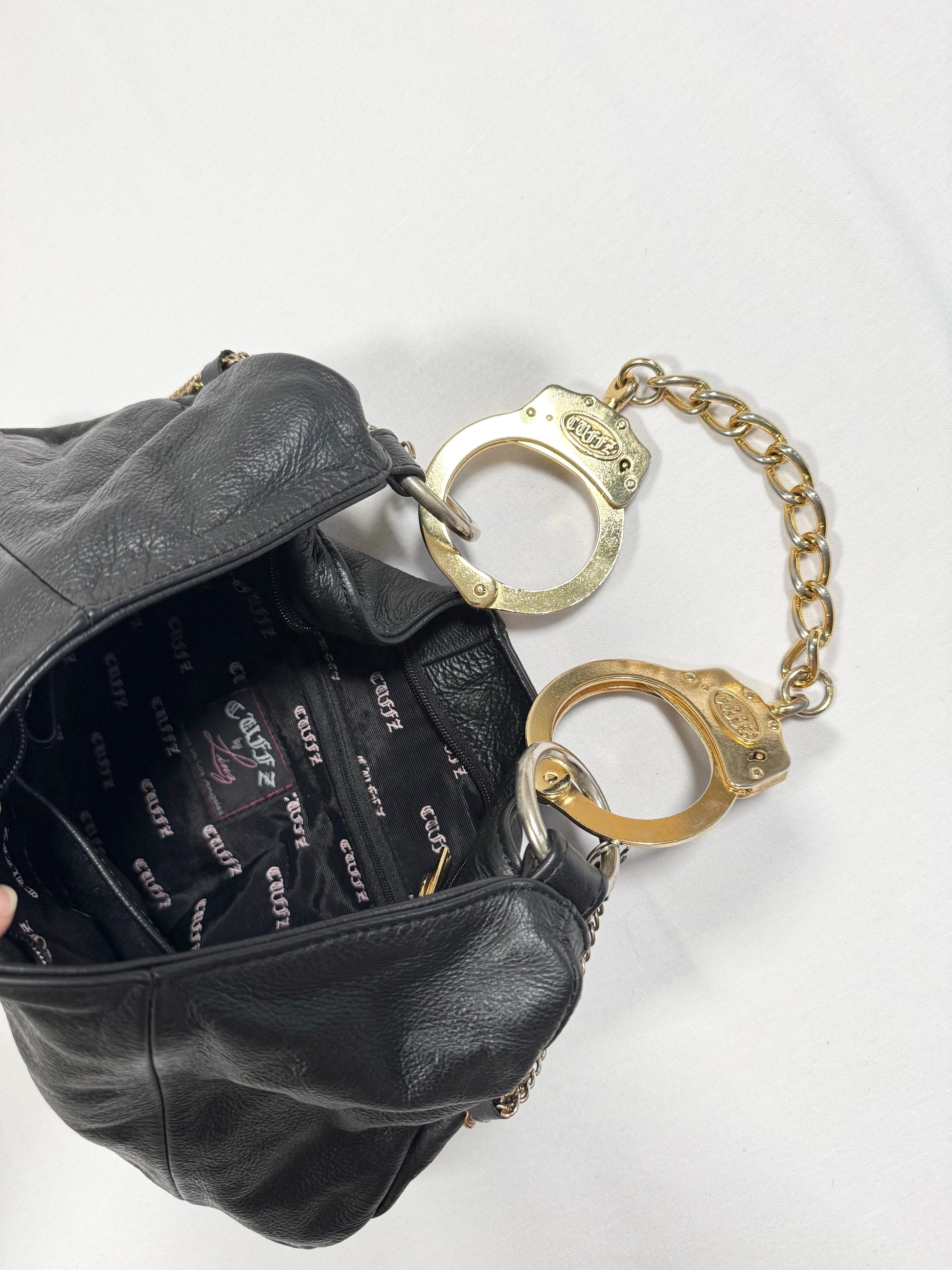 Extremely rare 00s cuffz by Linz bag in black leather🖤Gold chain detail and strap with handcuffs🖤