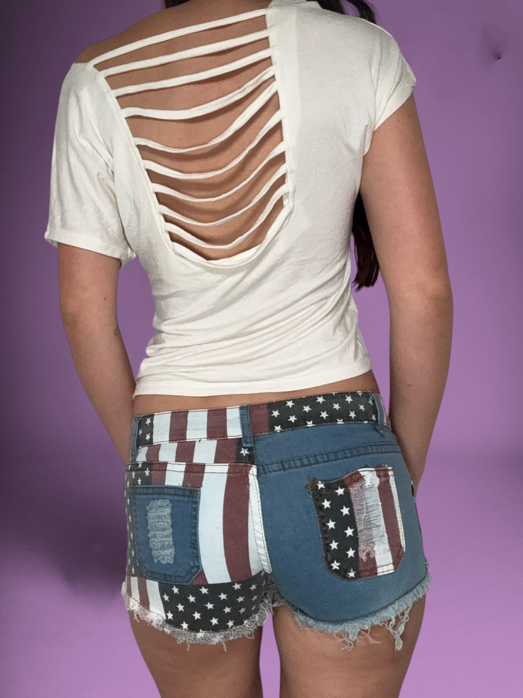 Cool white batwing tee in white with cut out back🖤Black buttons around the neckline🖤