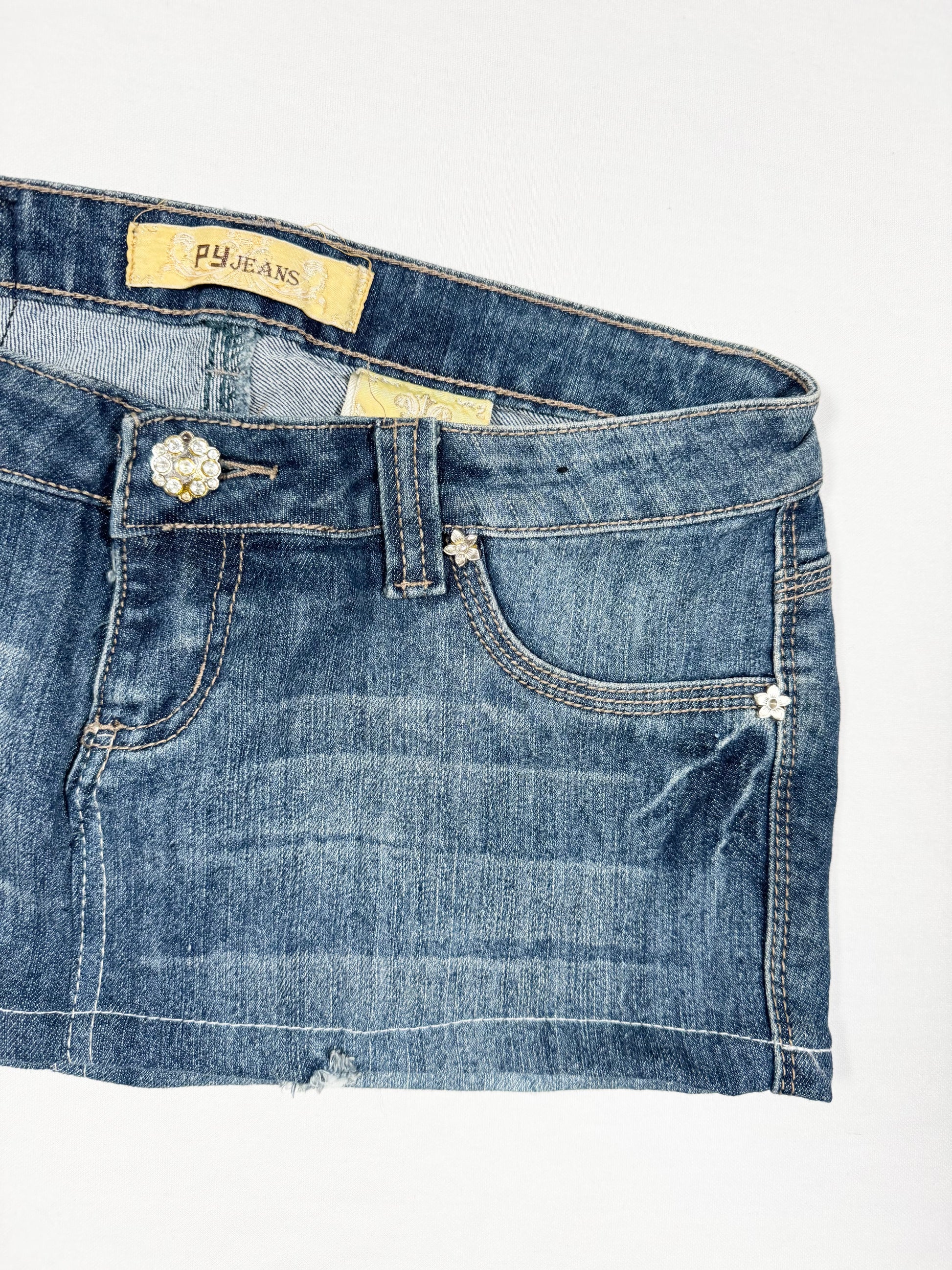 Cute 00s low rise denim mini skirt🤍Diamante design on the back pockets🤍