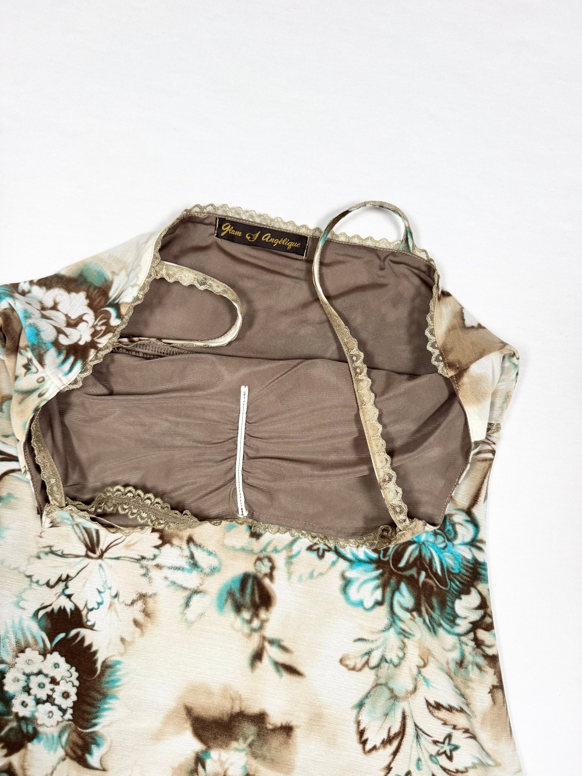 Adorable 00s cami in beige brown and blue🤍Underbust drawstring bow🤍