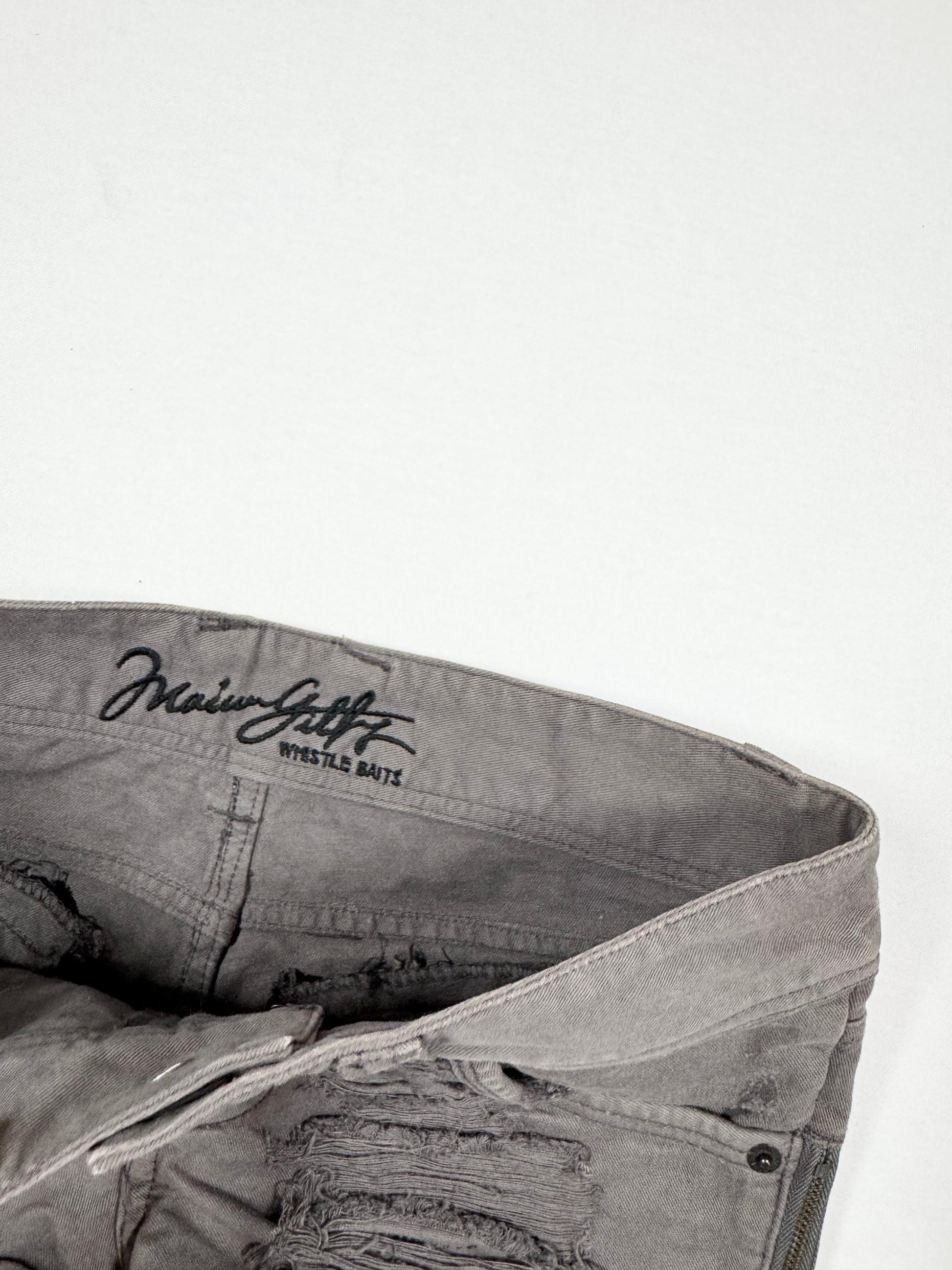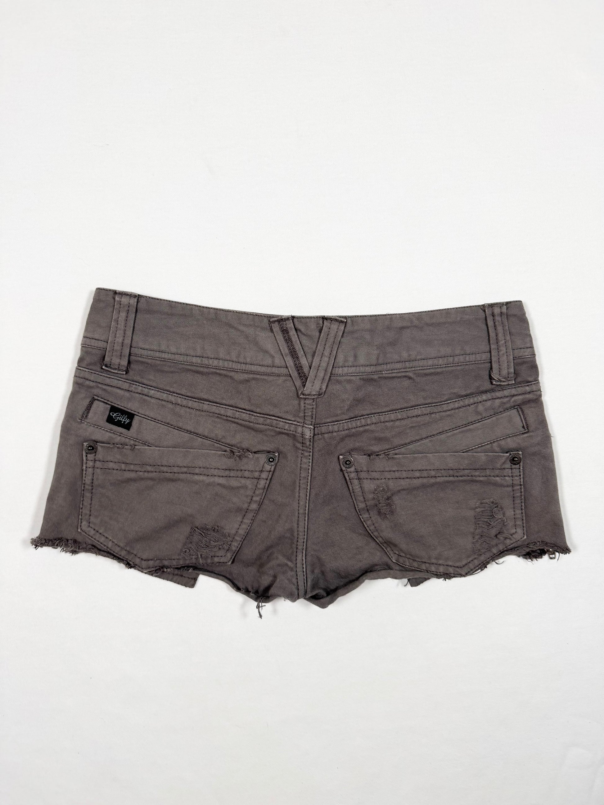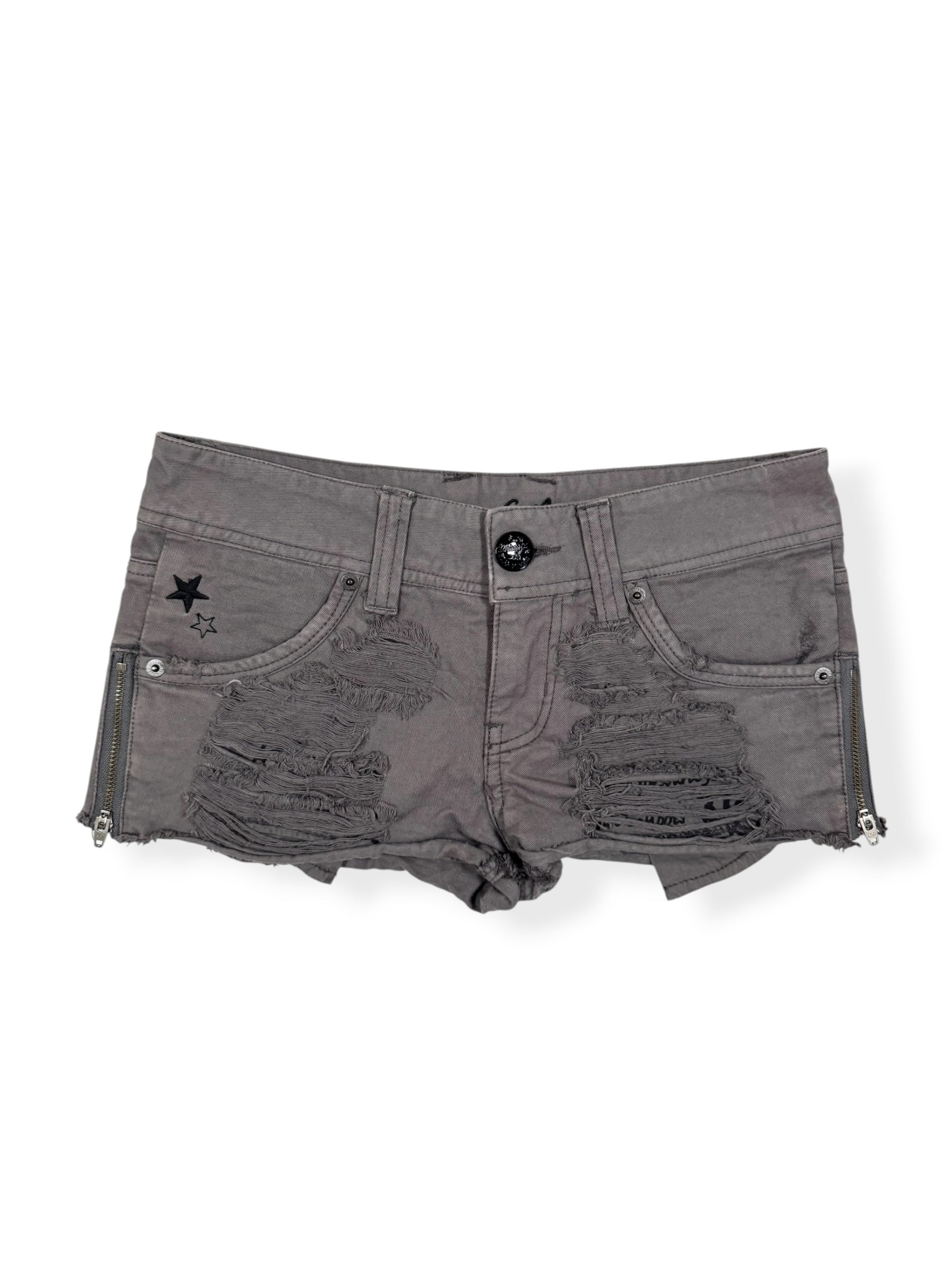 Super cute 00s low rise grey denim mini shorts🤍Distressed front with star embrodiered design🤍Side zip details🤍