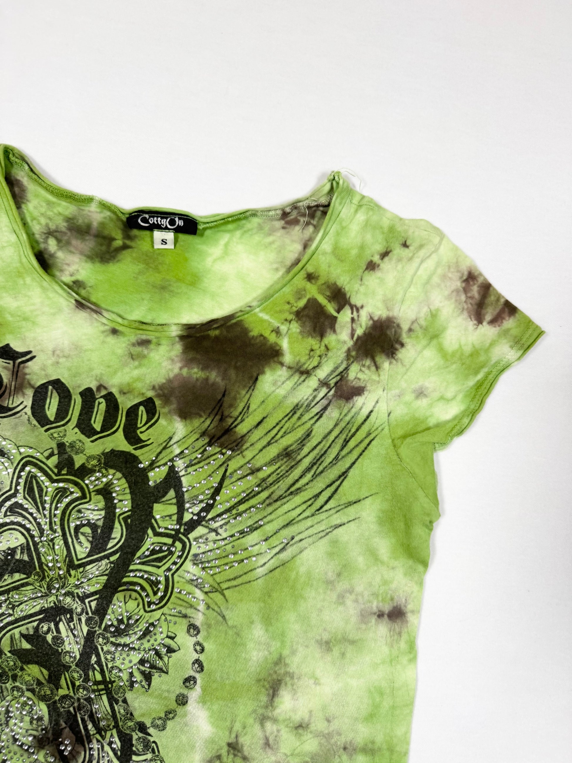 Sick 00s grunge tee in tie dye green and brown🤎Cross grunge print design🤎