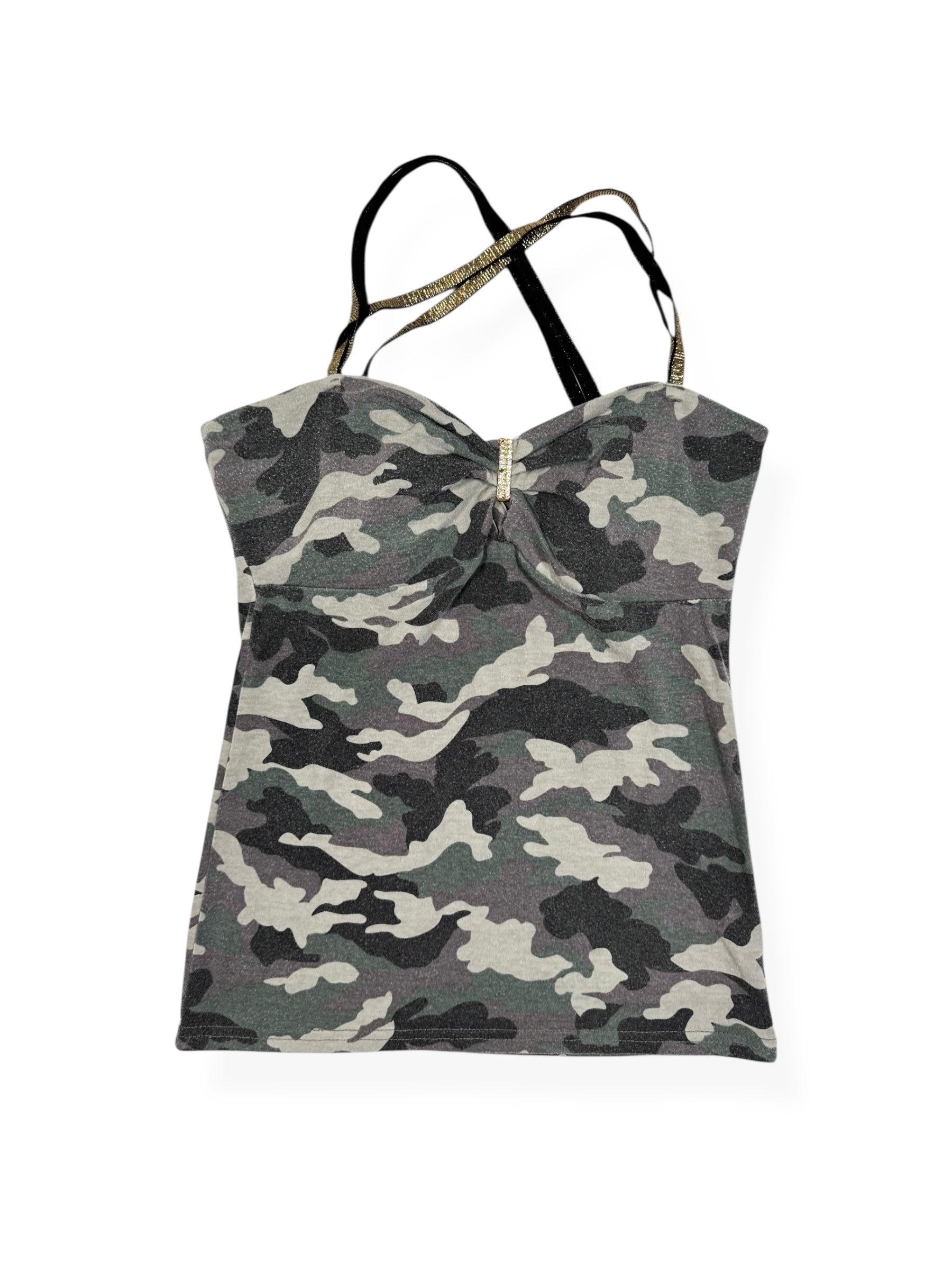 Gyaru style 00s cami in camo🤎Glittery gold straps that cross over at the back🤎