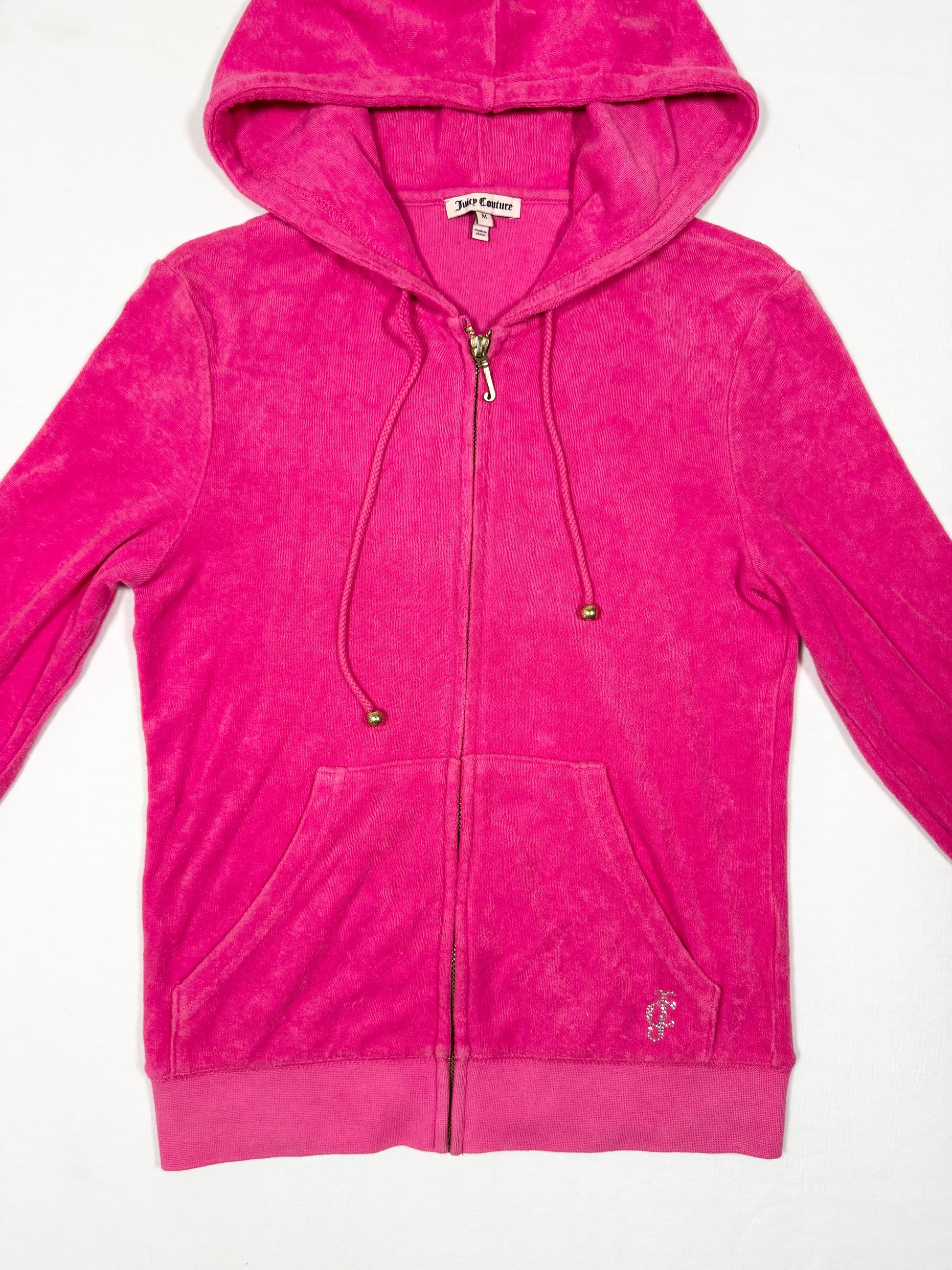 Perfect 00s juicy couture hot pink towelling zip up hoodie🩷little Diamante logo in bottom corner🩷