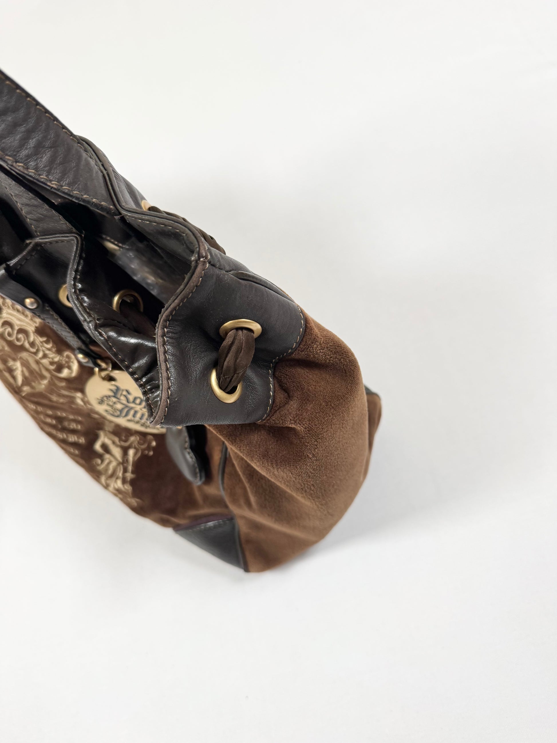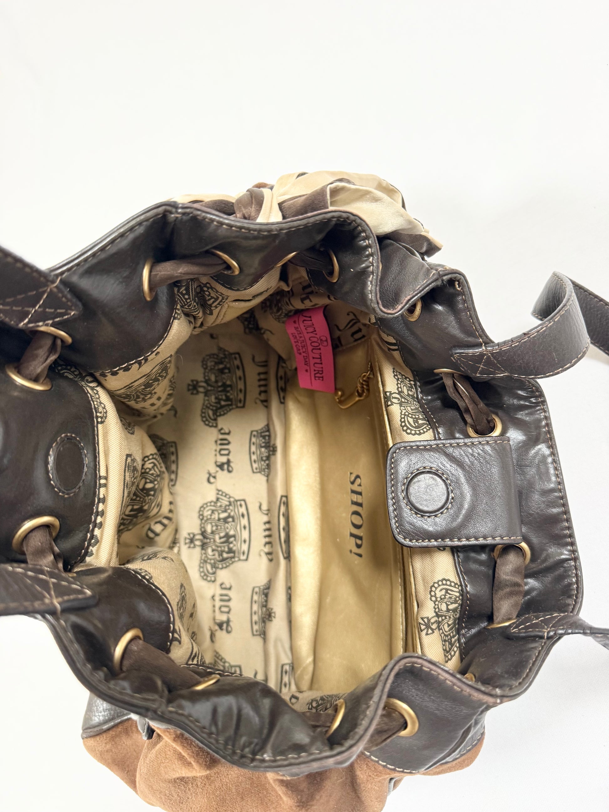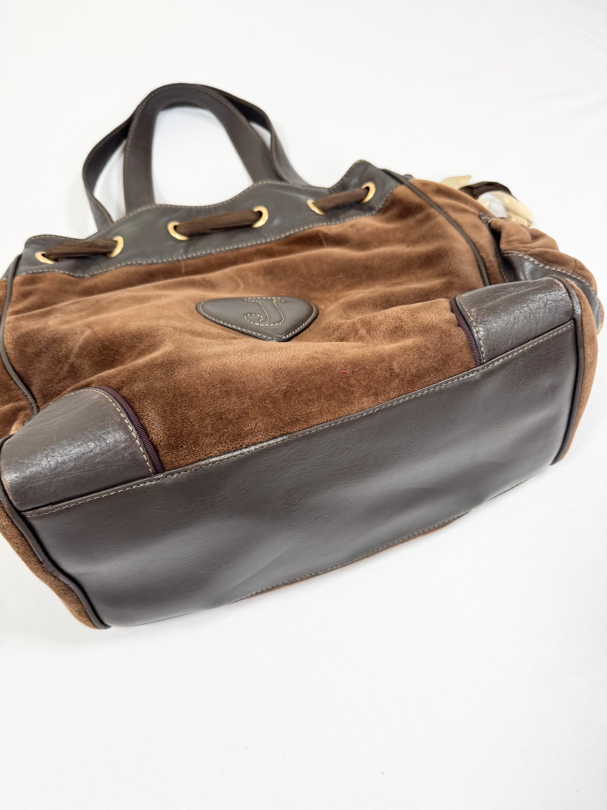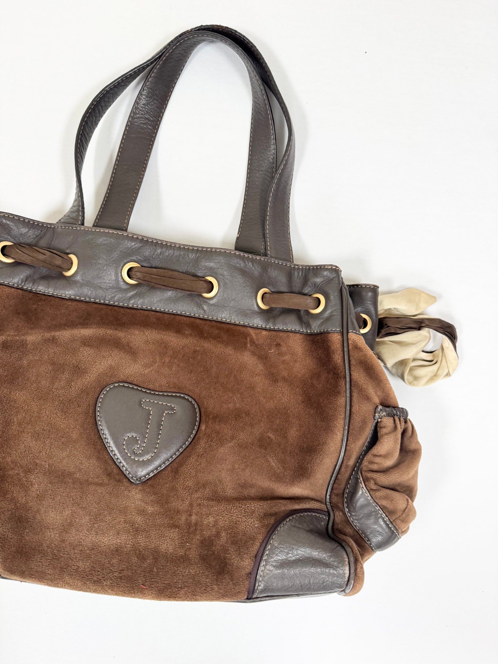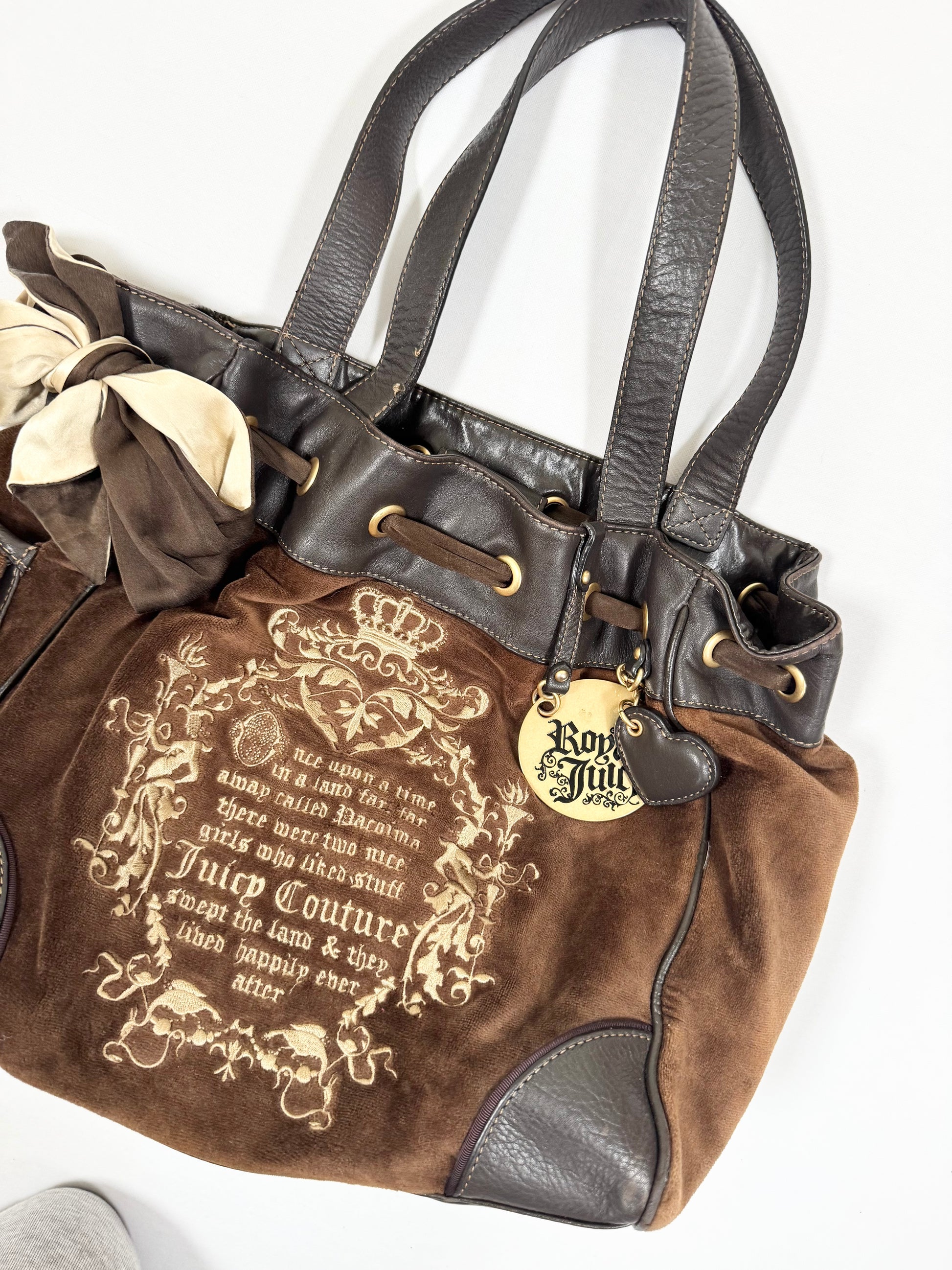 Stunning and rare early 2000s vintage juicy couture fairytale daydreamer in brown velour🤎PERFECT condition🤎Gold hardware charm and leather heart🤎
