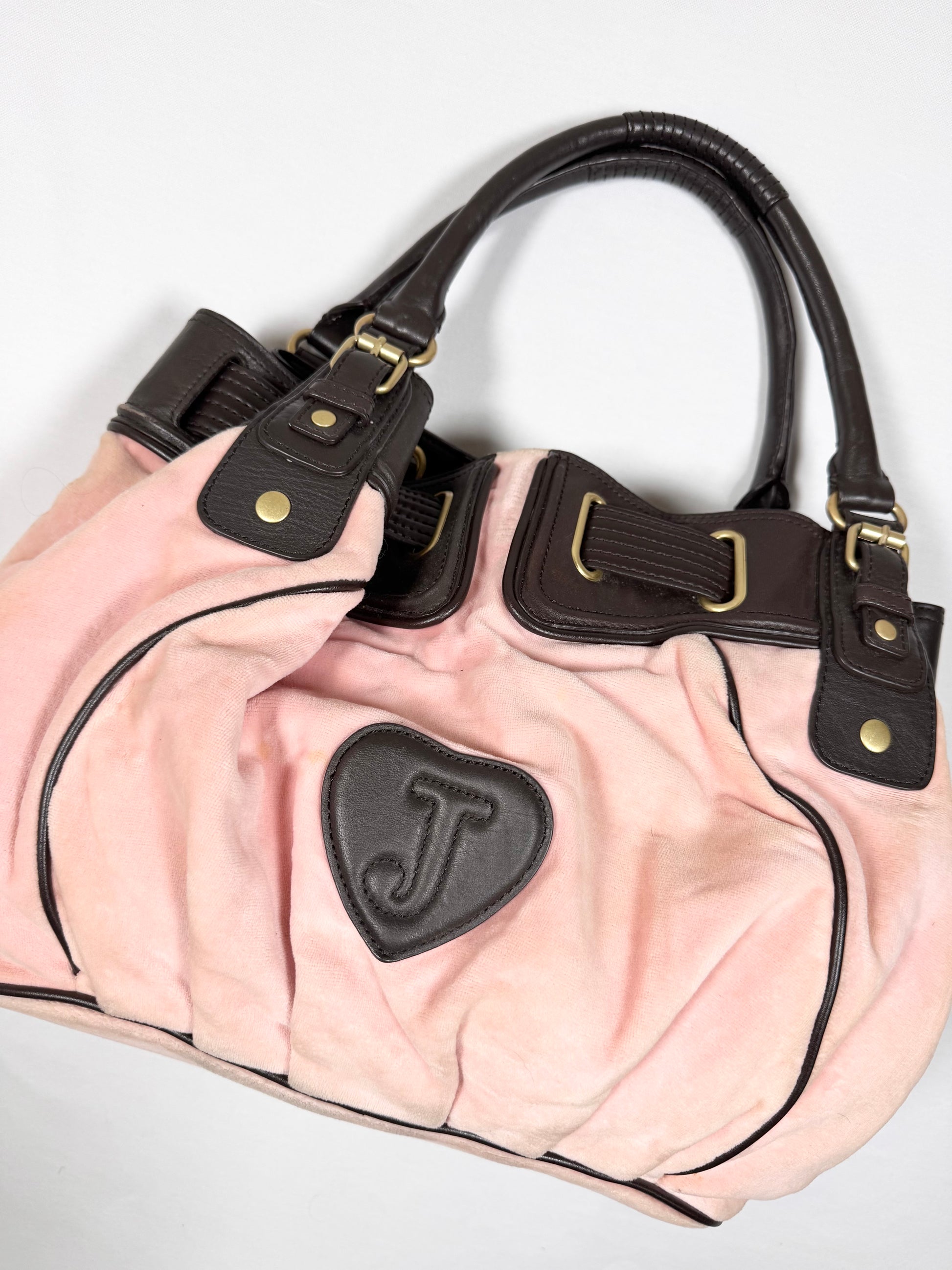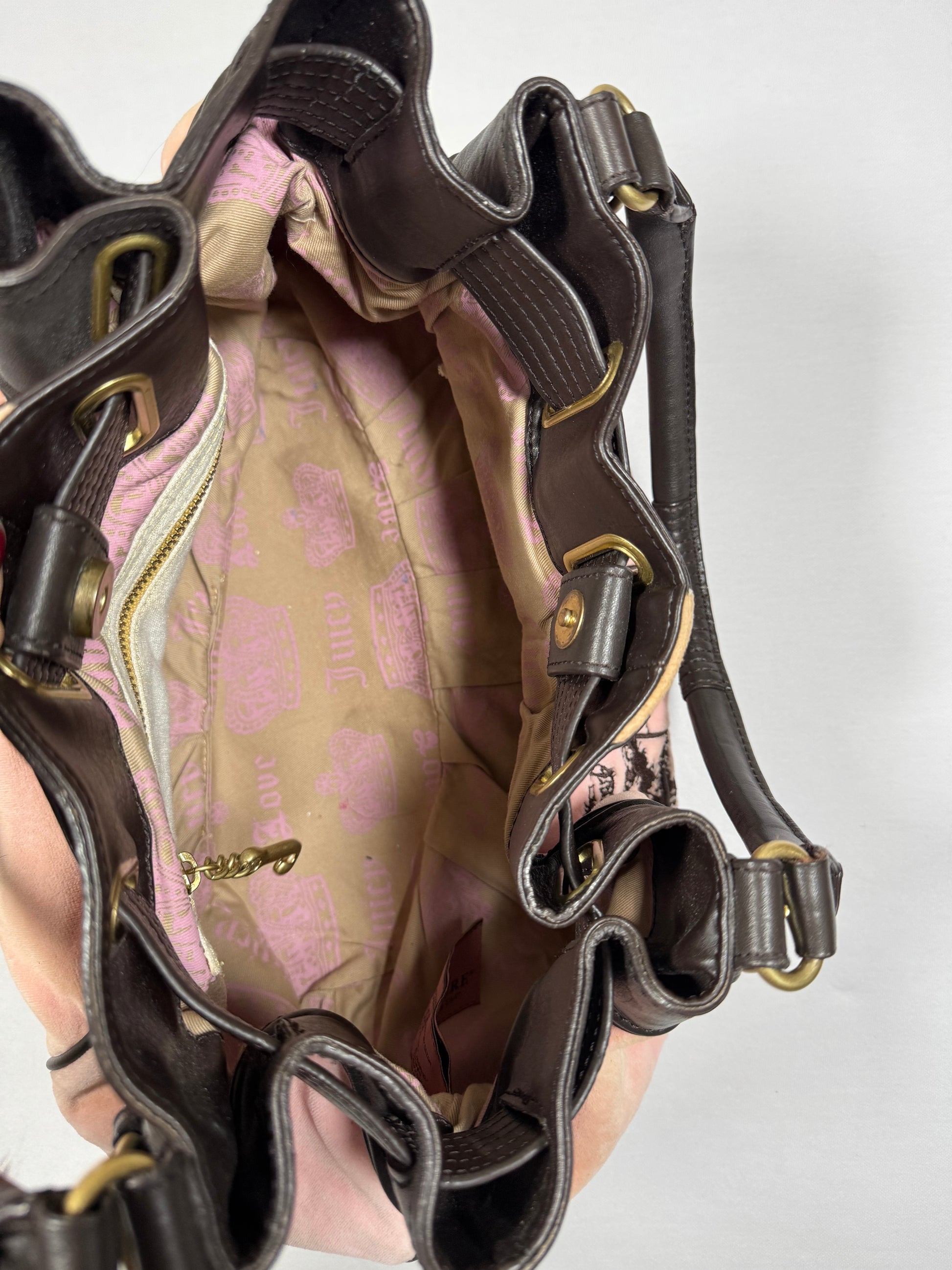 Extremely rare early 2000s pink velour juicy couture bag🩷Embroidered Scotty dog logo in dark brown🩷Dark Brown leather🩷In very good condition🩷