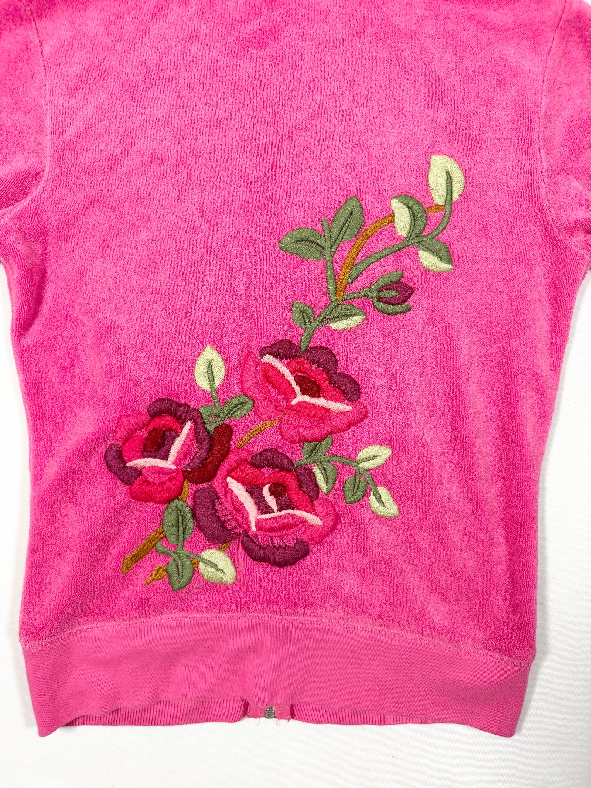 Adorable 00s pink terry juicy couture tracksuit set with shorts and zip up hoodie🩷Embroidered floral designs🩷