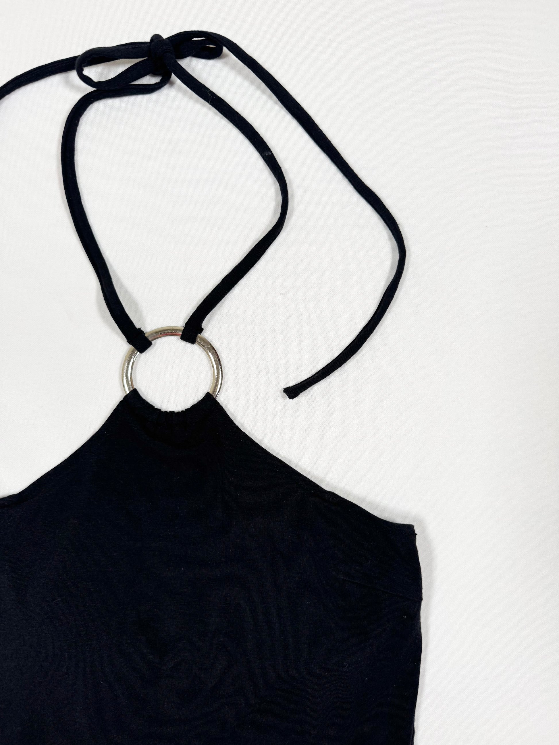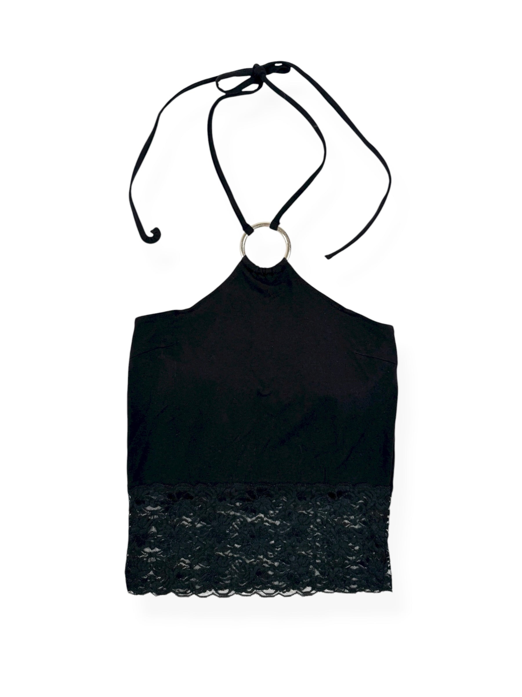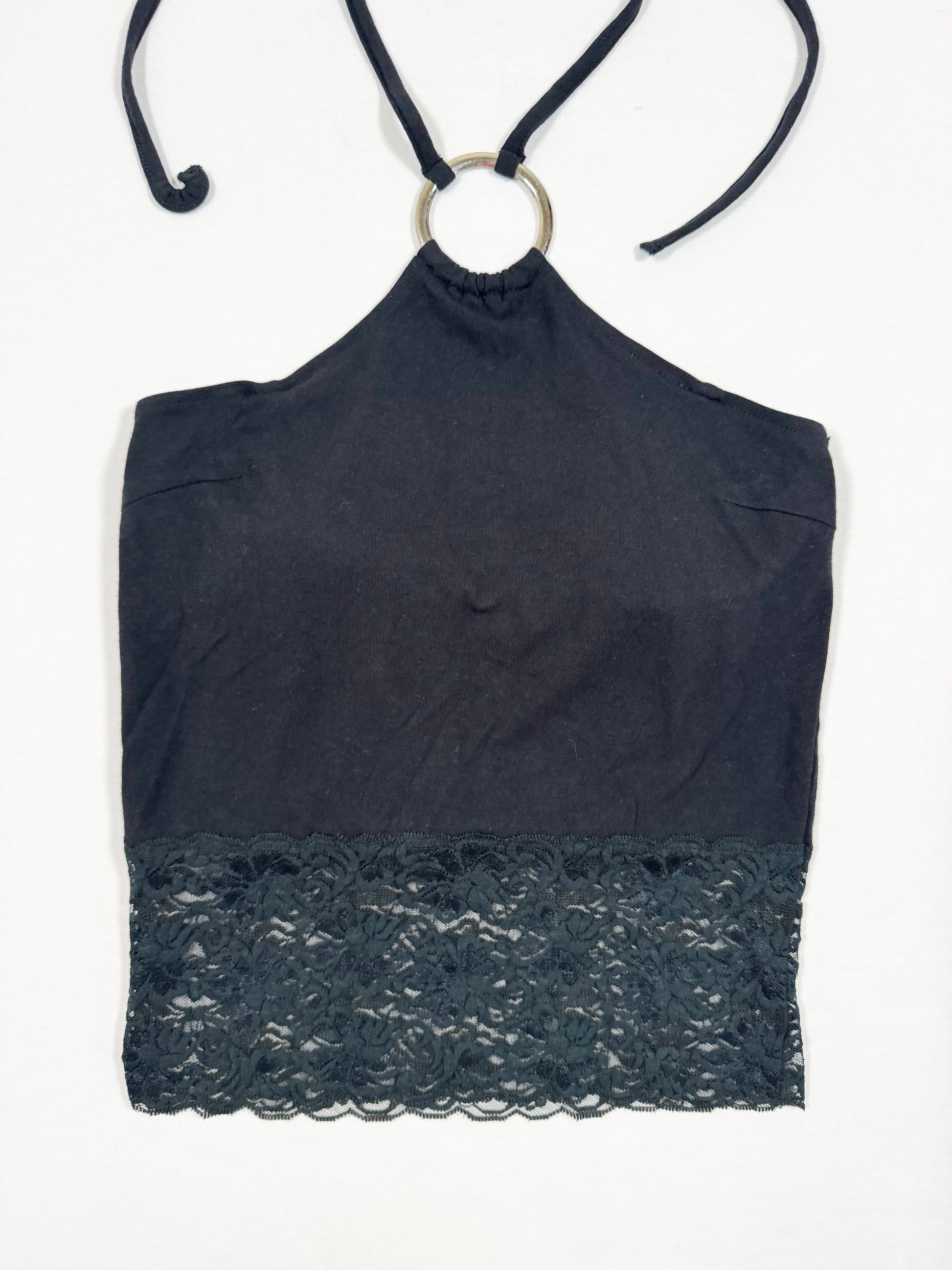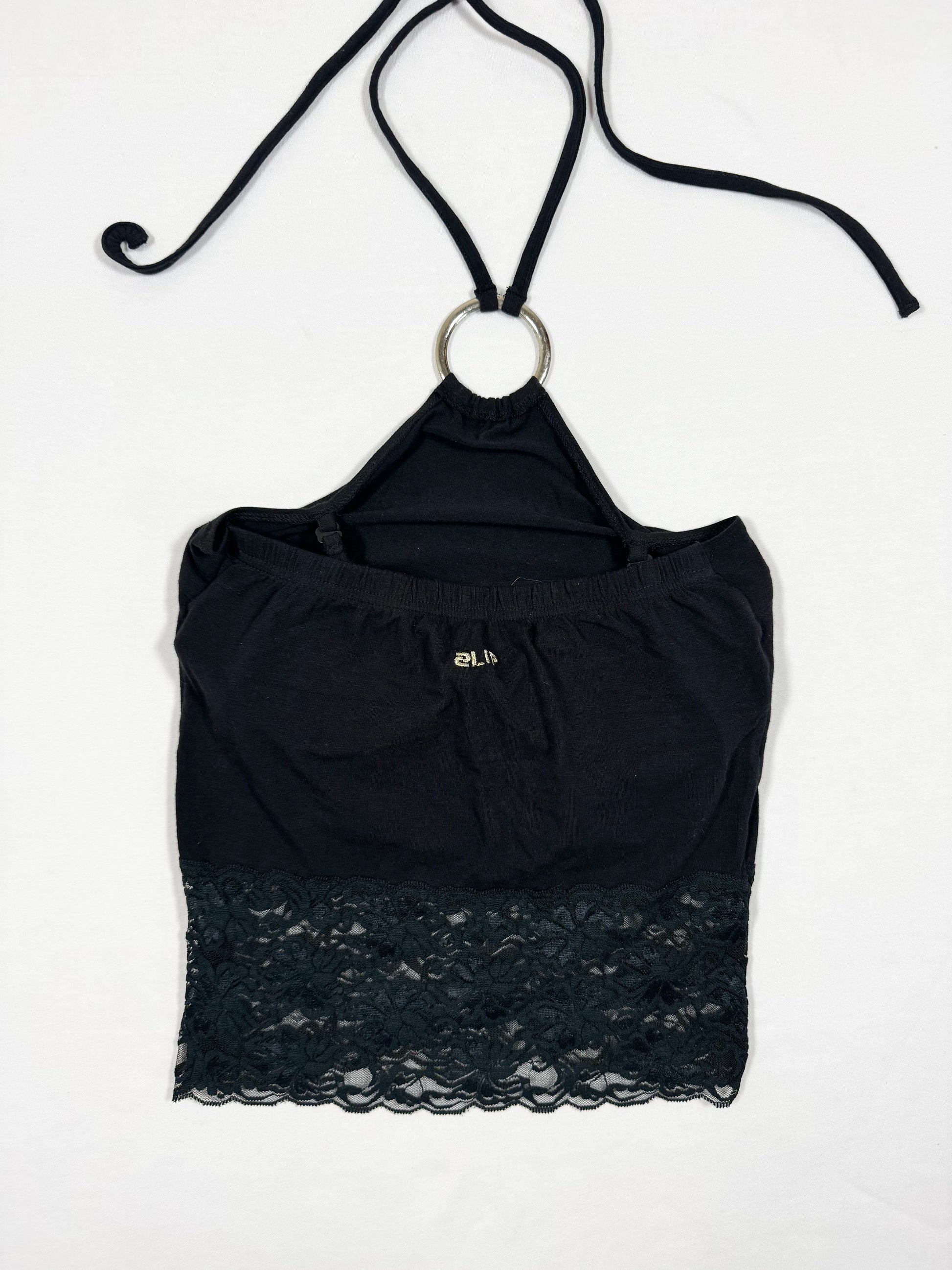 00s black halter top with lace trim🖤O ring front with halter tie🖤built in cups