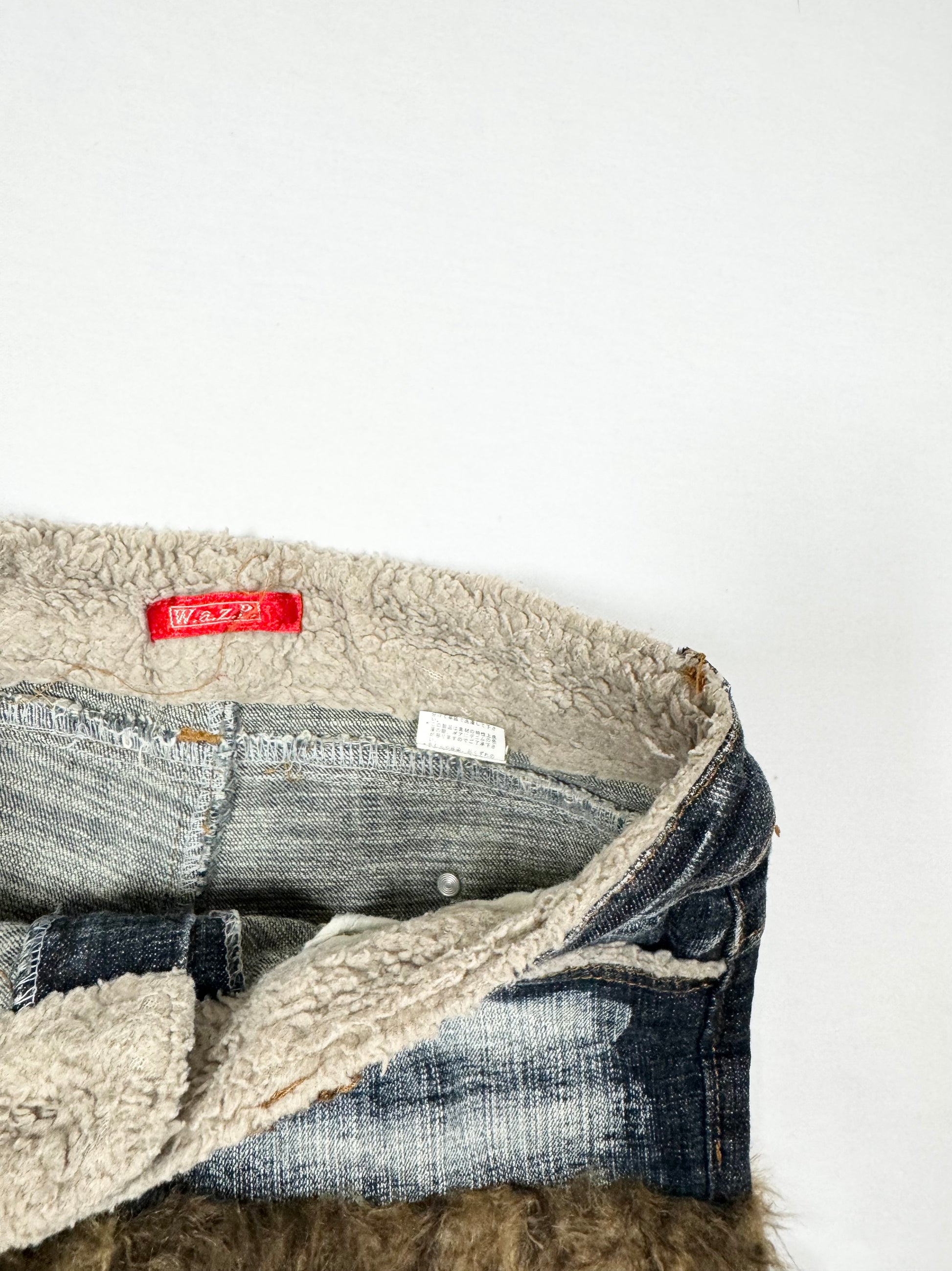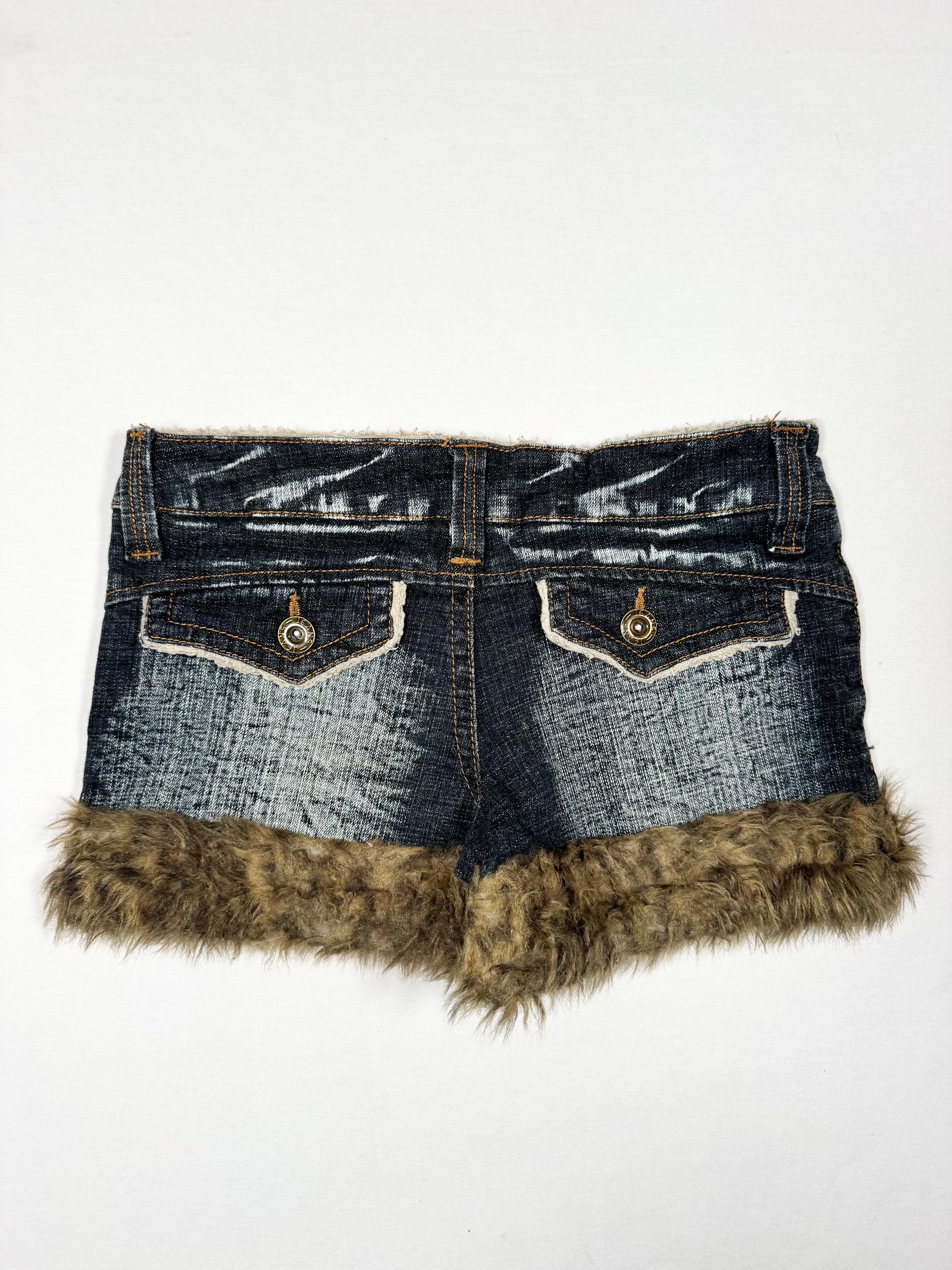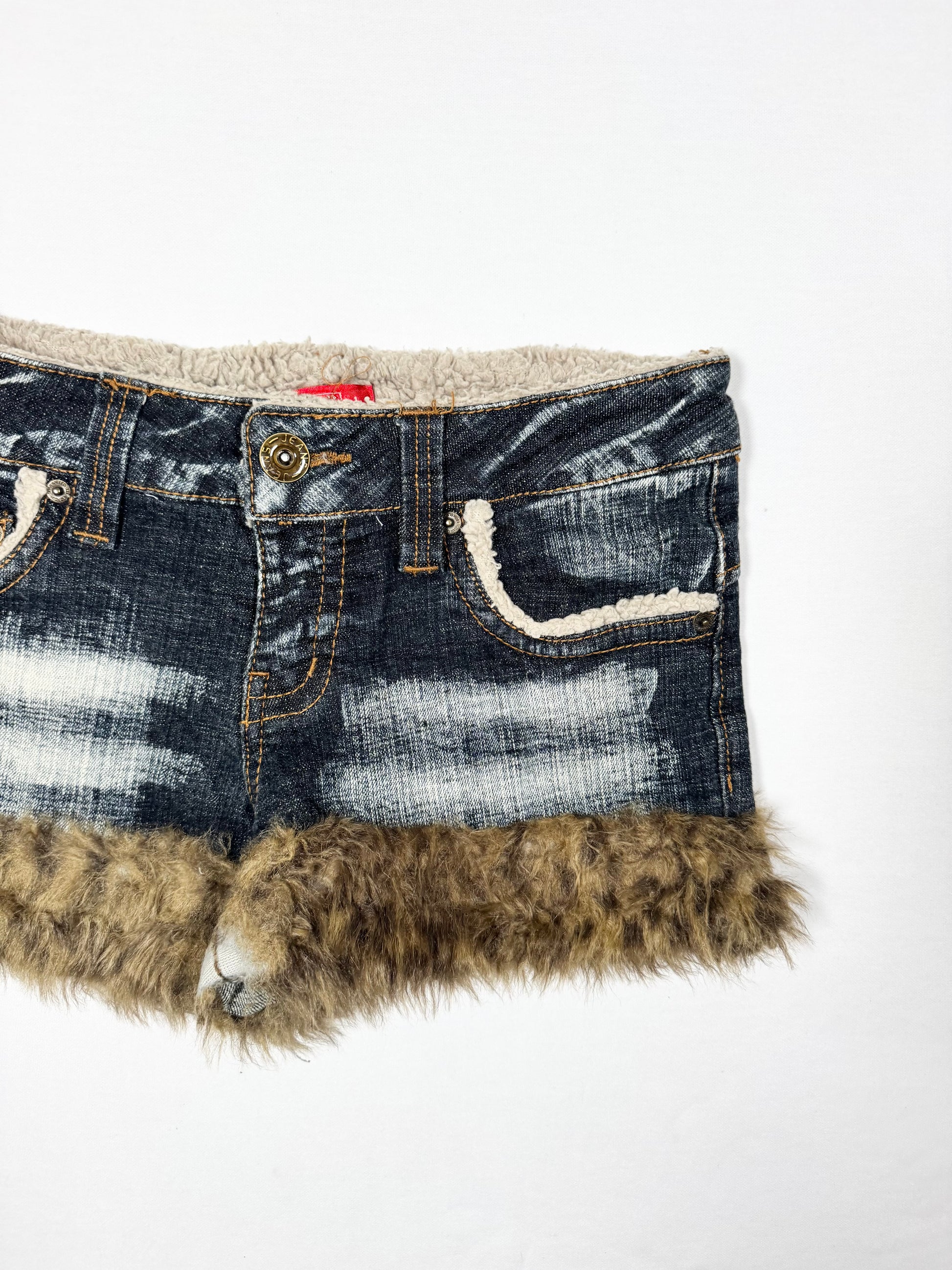 Super cute Gyaru style 00s low rise denim mini short with leopard print fur trim🤎