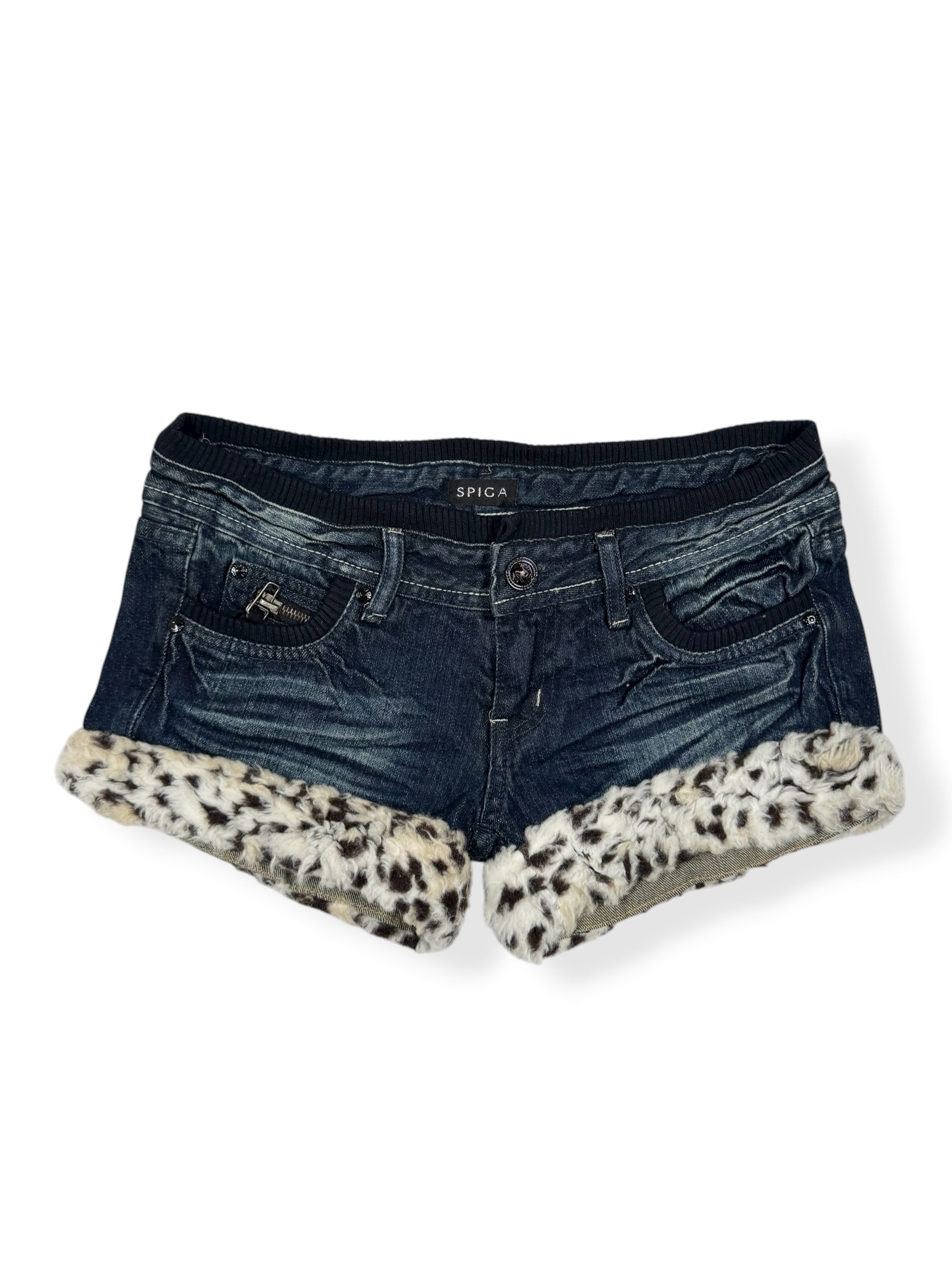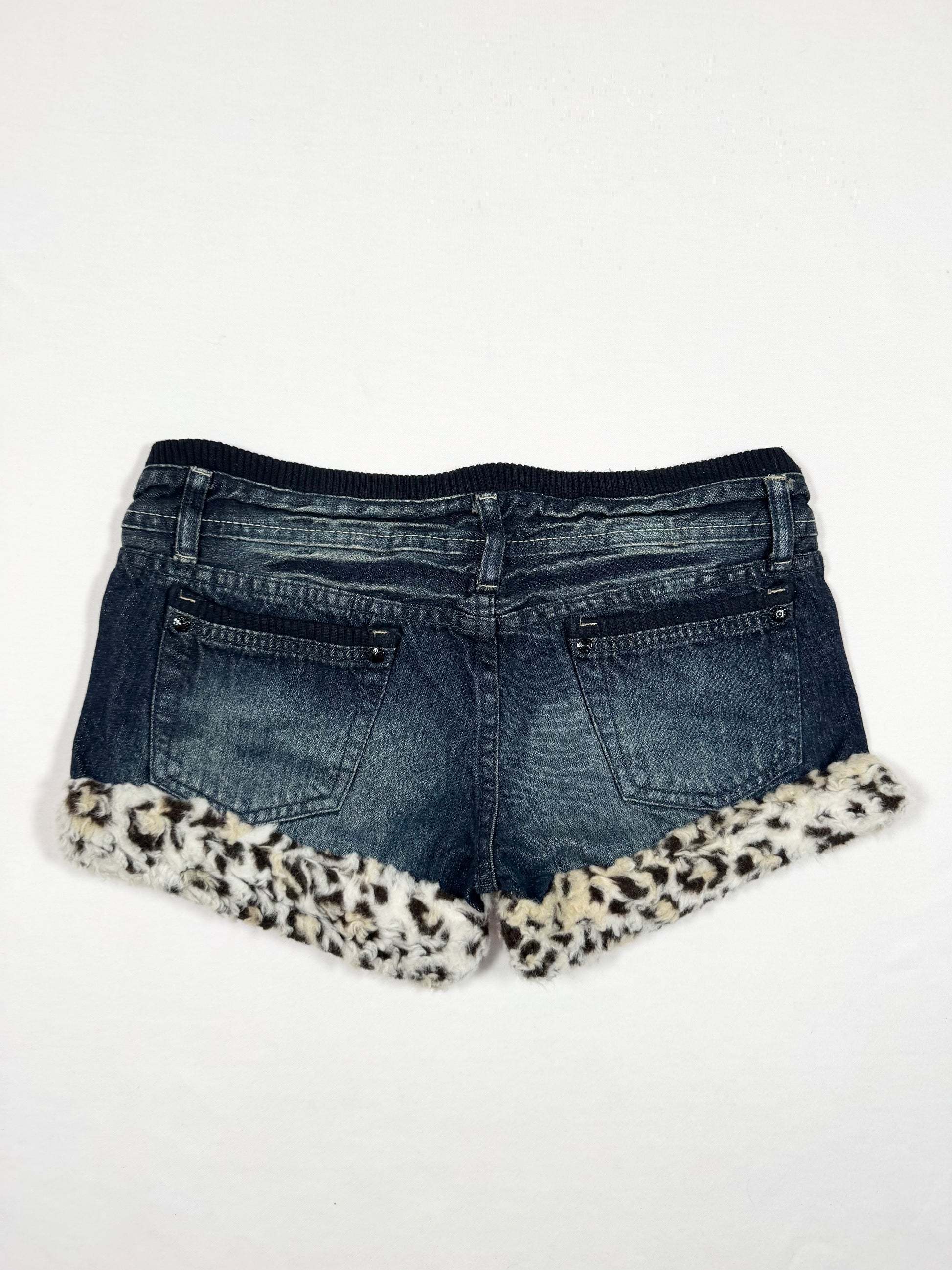 Adorable 00s low rise shorts with leopard print fur trim🤎
