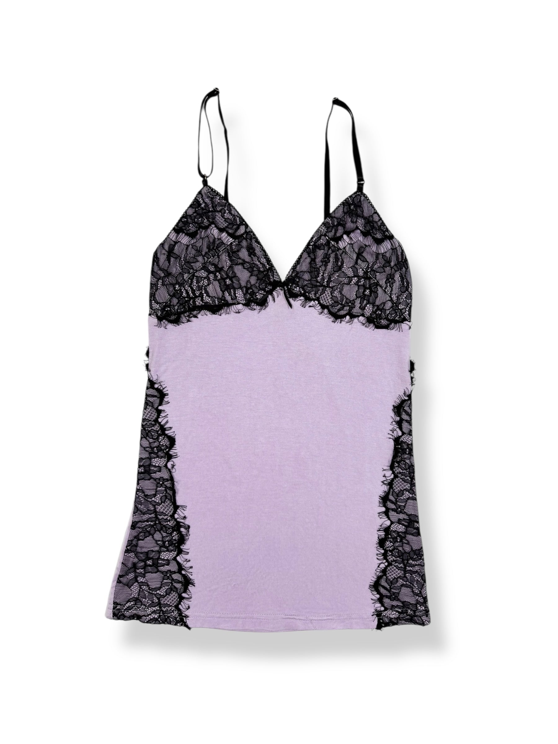 Cute 00s Lipservice cami in light purple with black lace bust and sides🖤