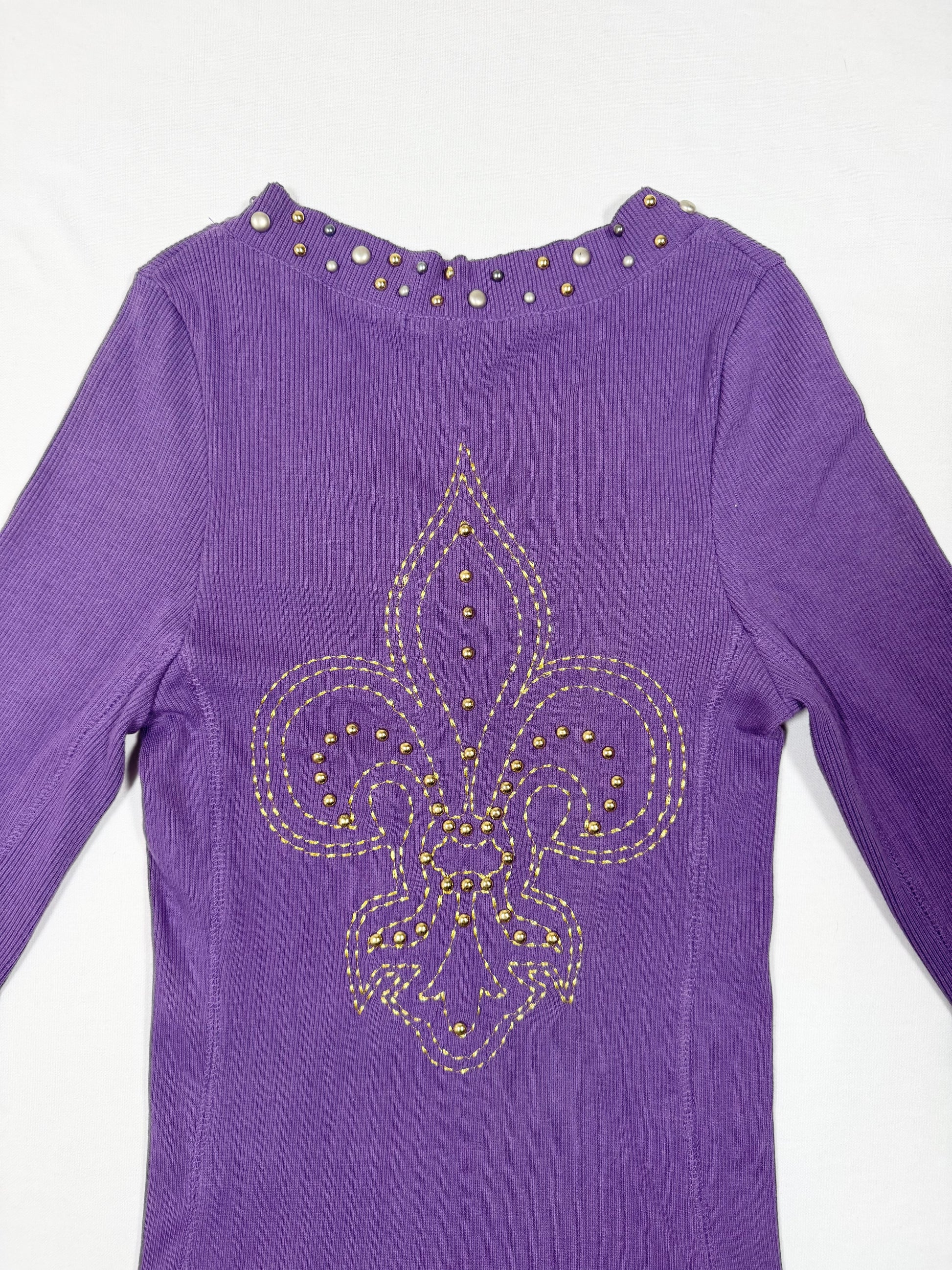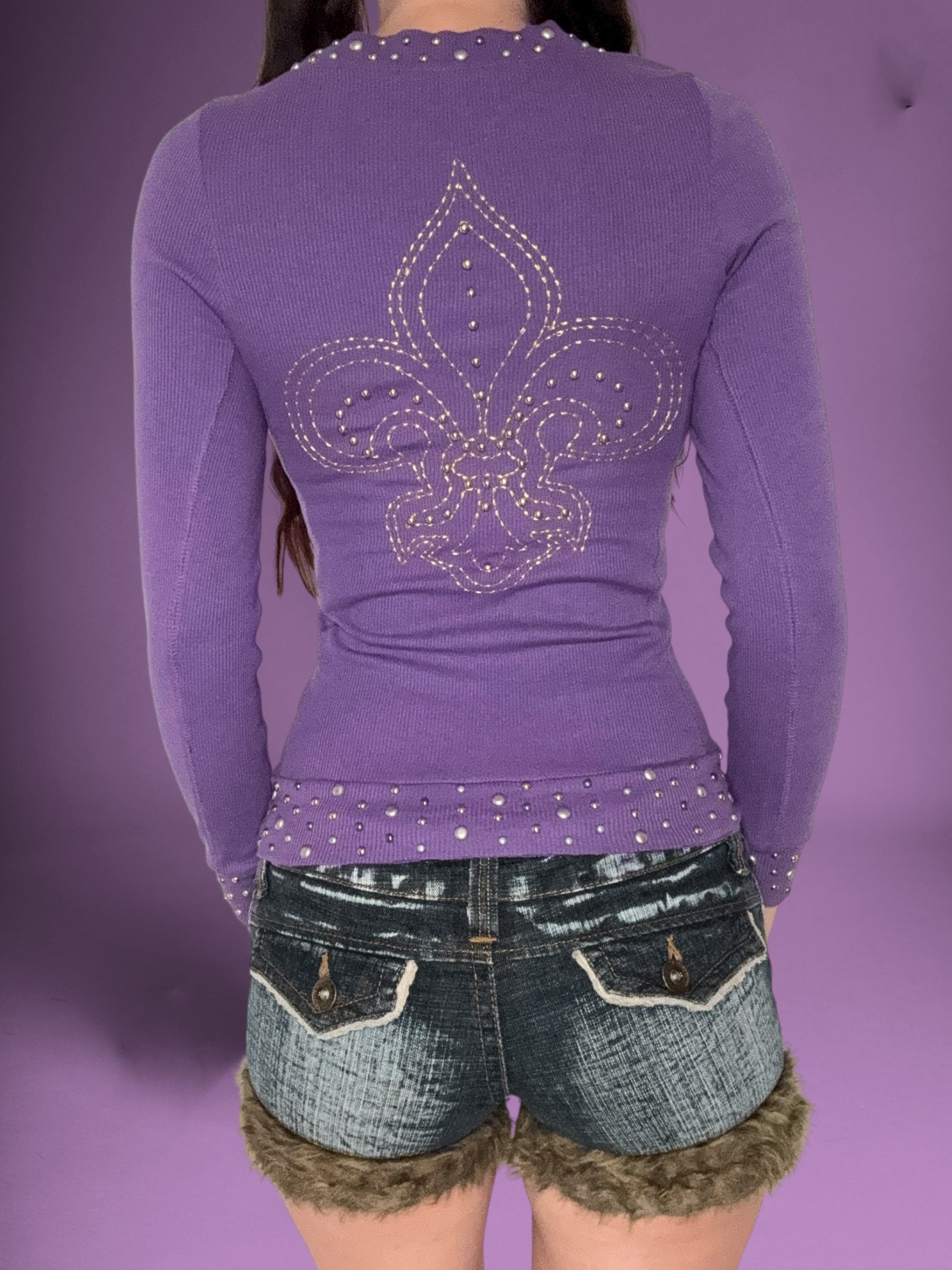 Gorg 00s purple lipservice long sleeved top💜Studded trim details💜Embroidered cross on the back💜