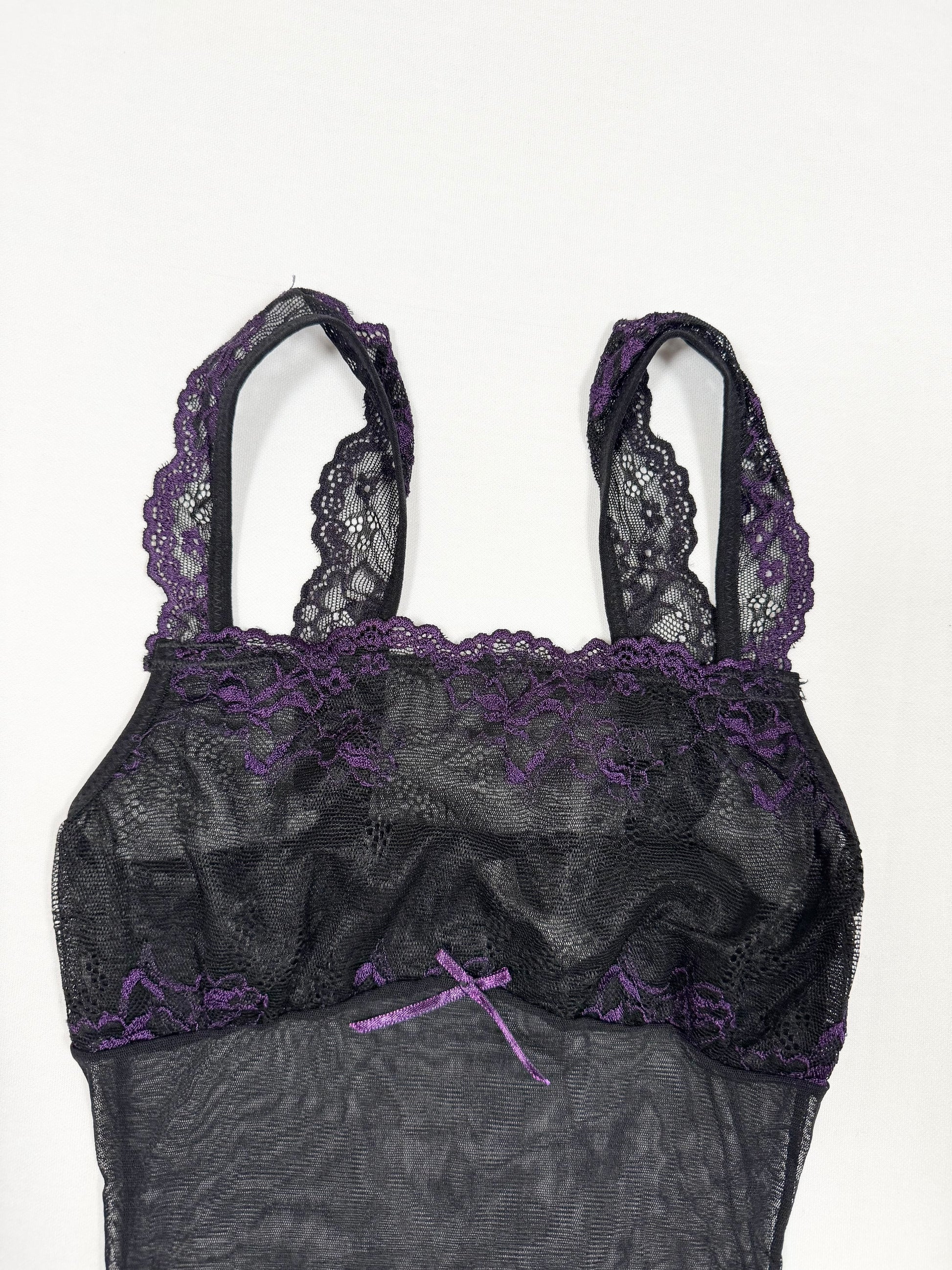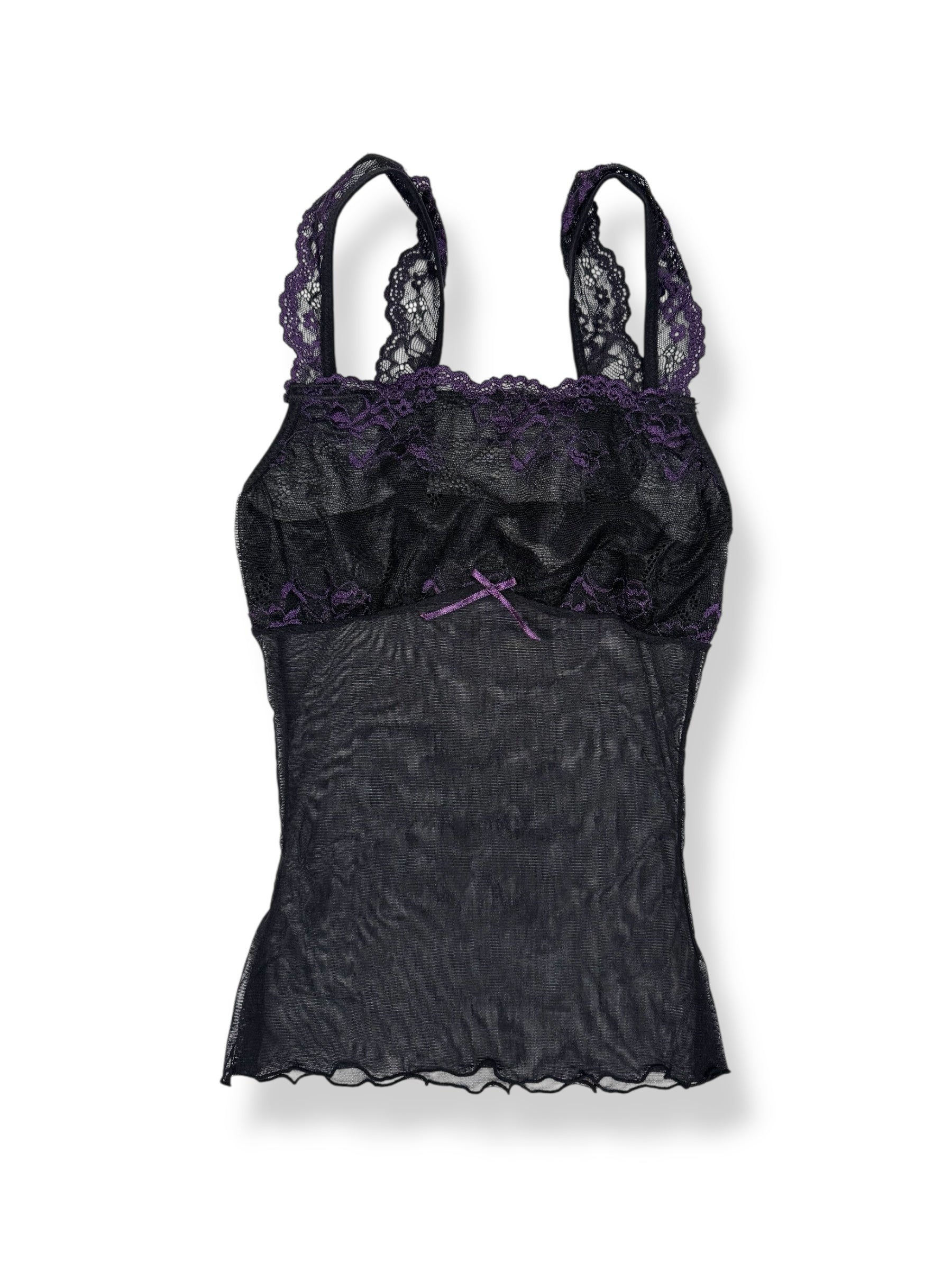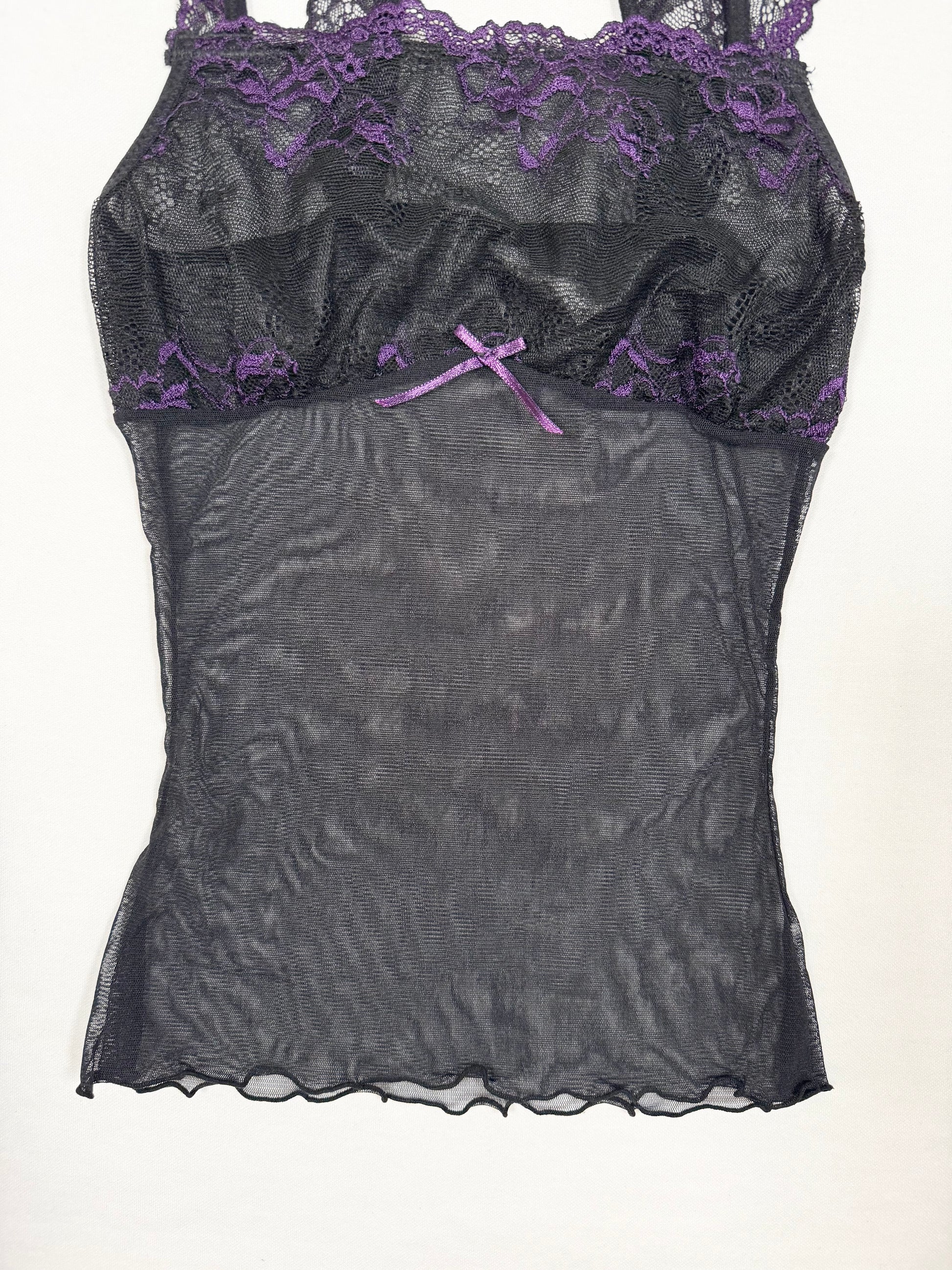 Cutest 00s and Pinterest famous cami🖤Black micromesh with purple lace details and bow🖤