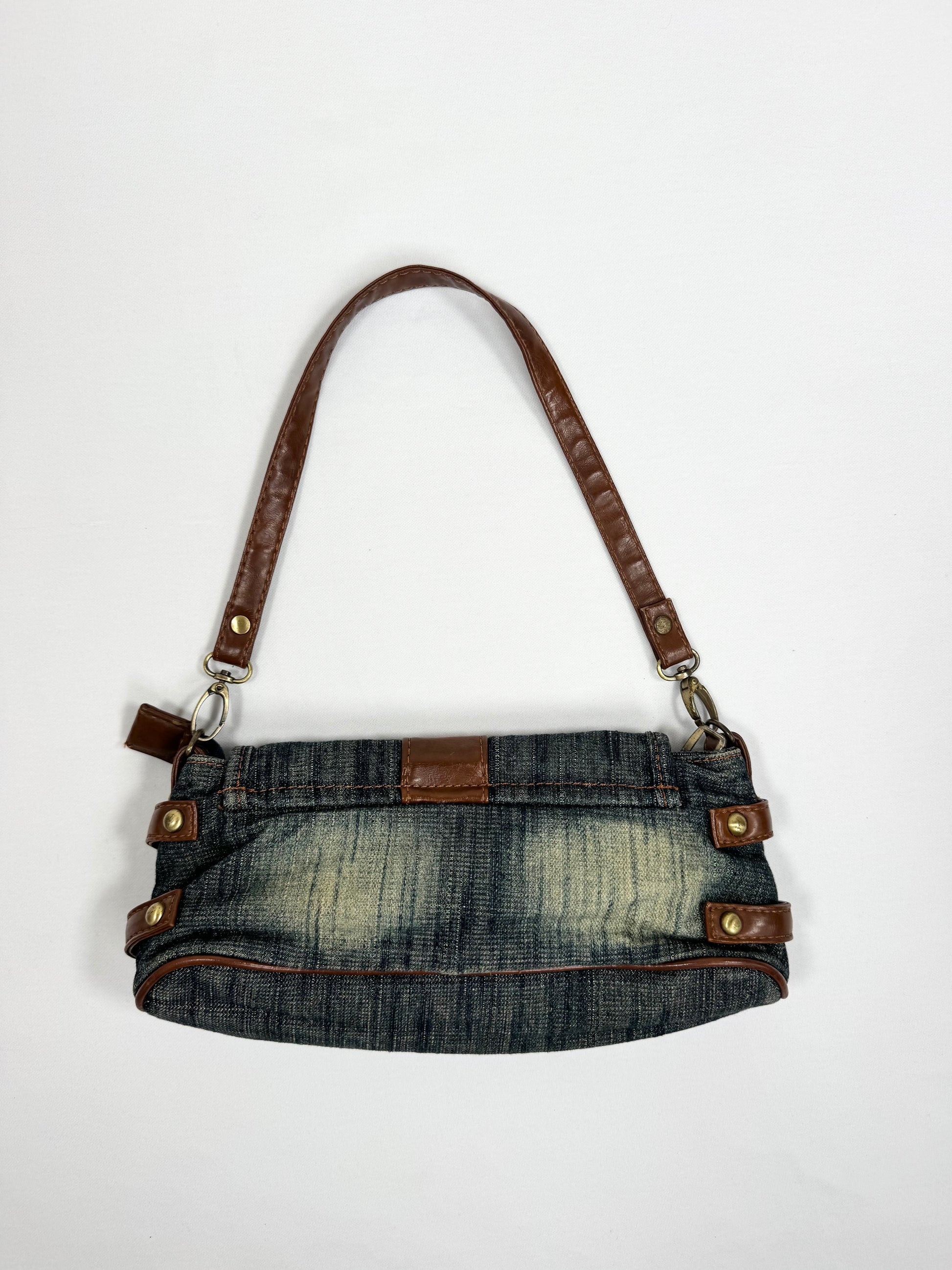 Rare 00s miss sixty denim shoulder bag with faux leather strap🤎Metal hardware logo on the front🤎