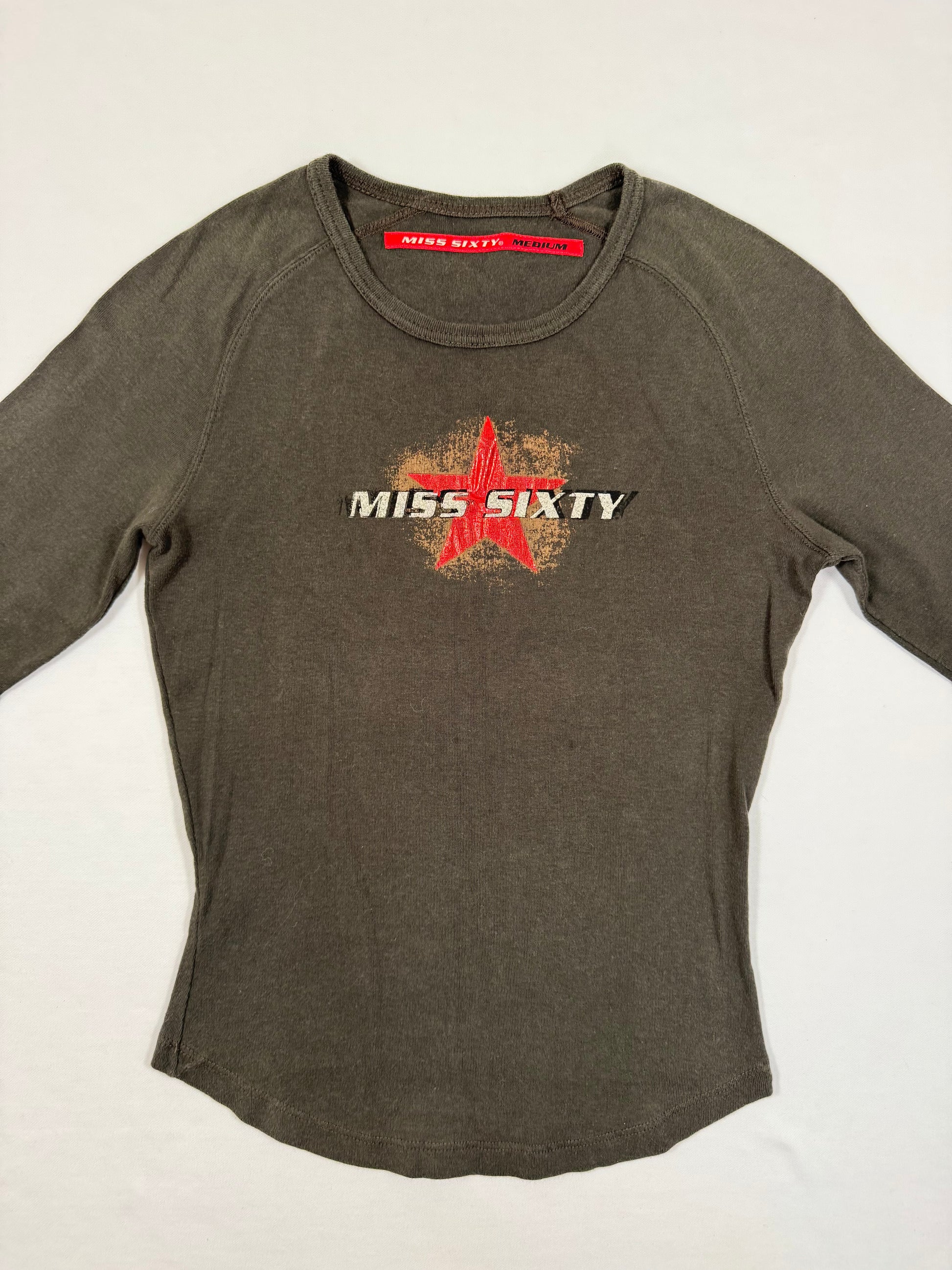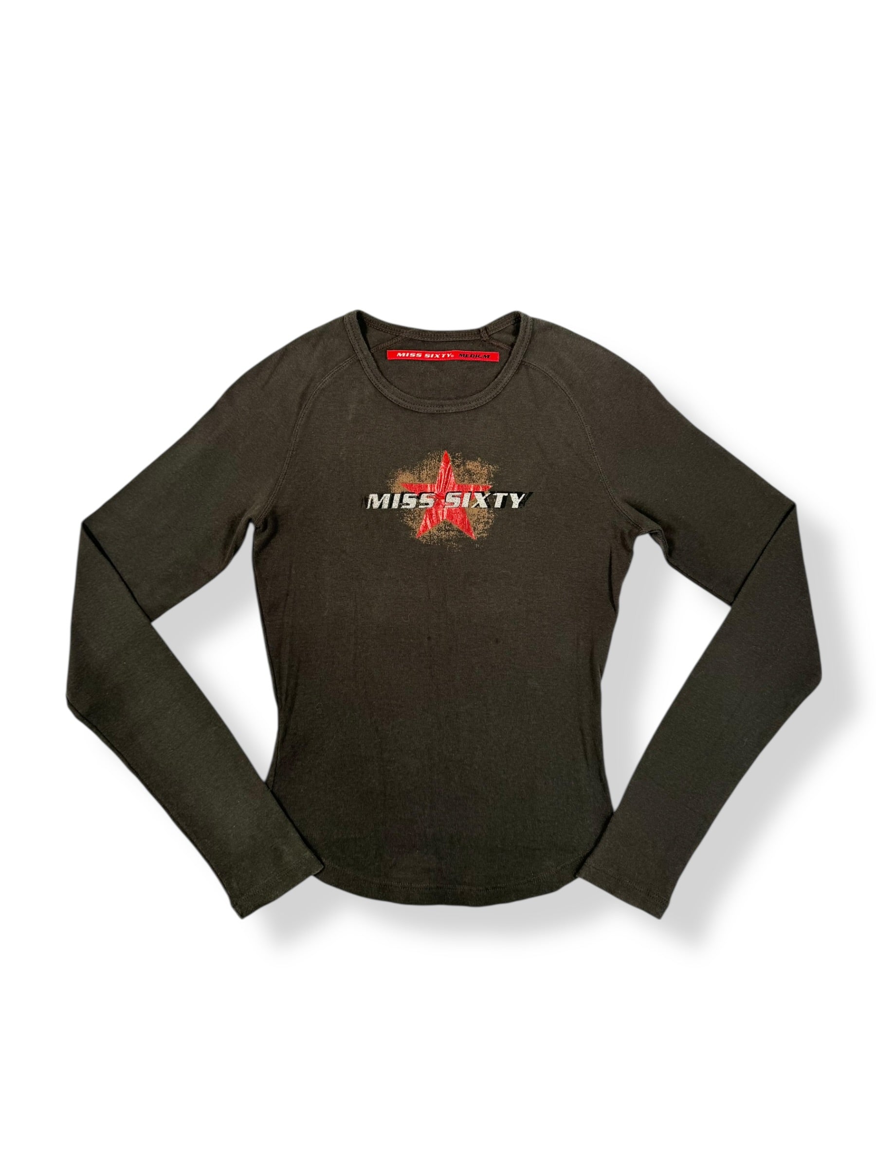 Stunning 00s Miss sixty brown longsleeved top with red star logo on the front ☆