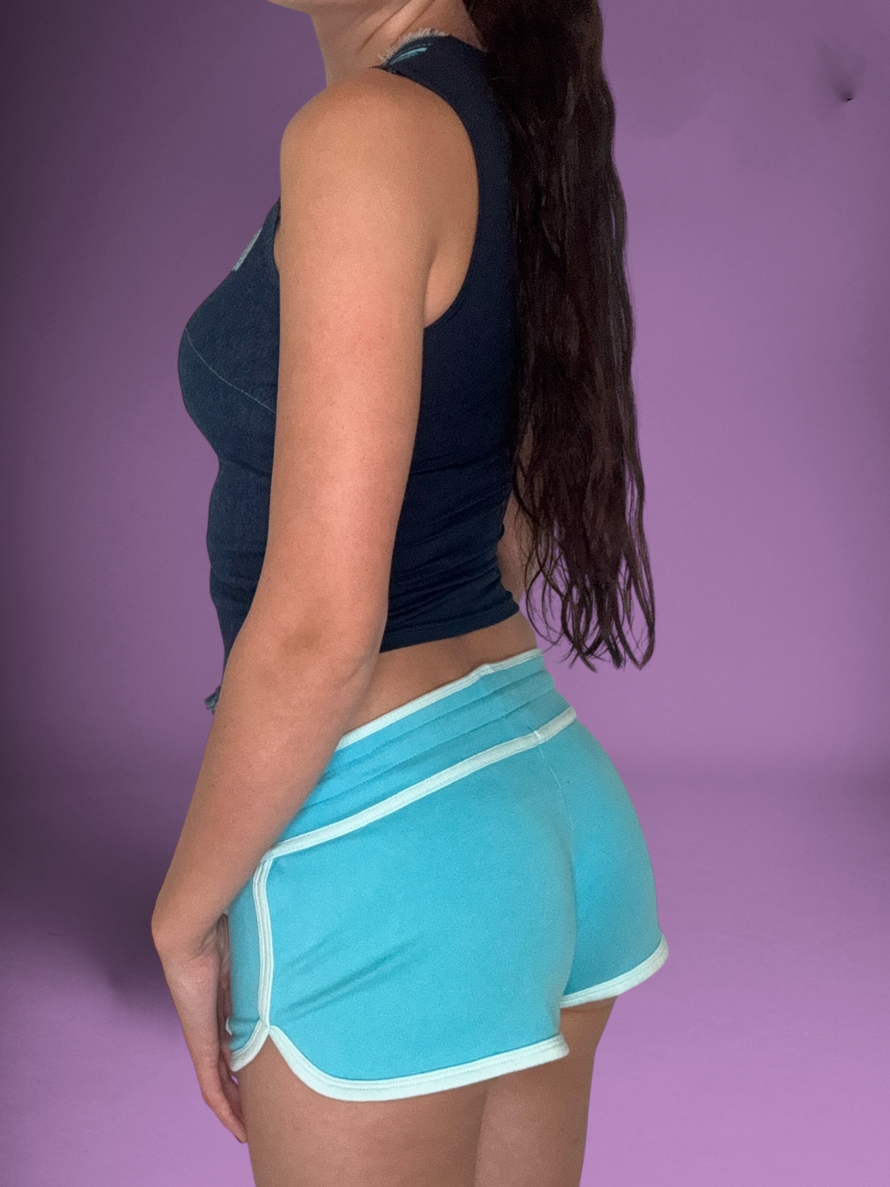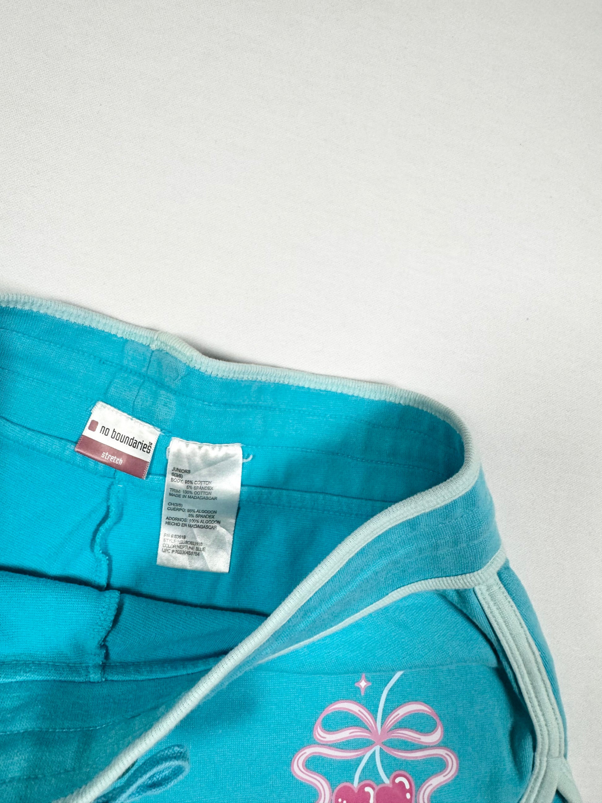 Adorable sporty “no boundaries” low rise shorts in blue🤍Bow cherry print on the front🤍
