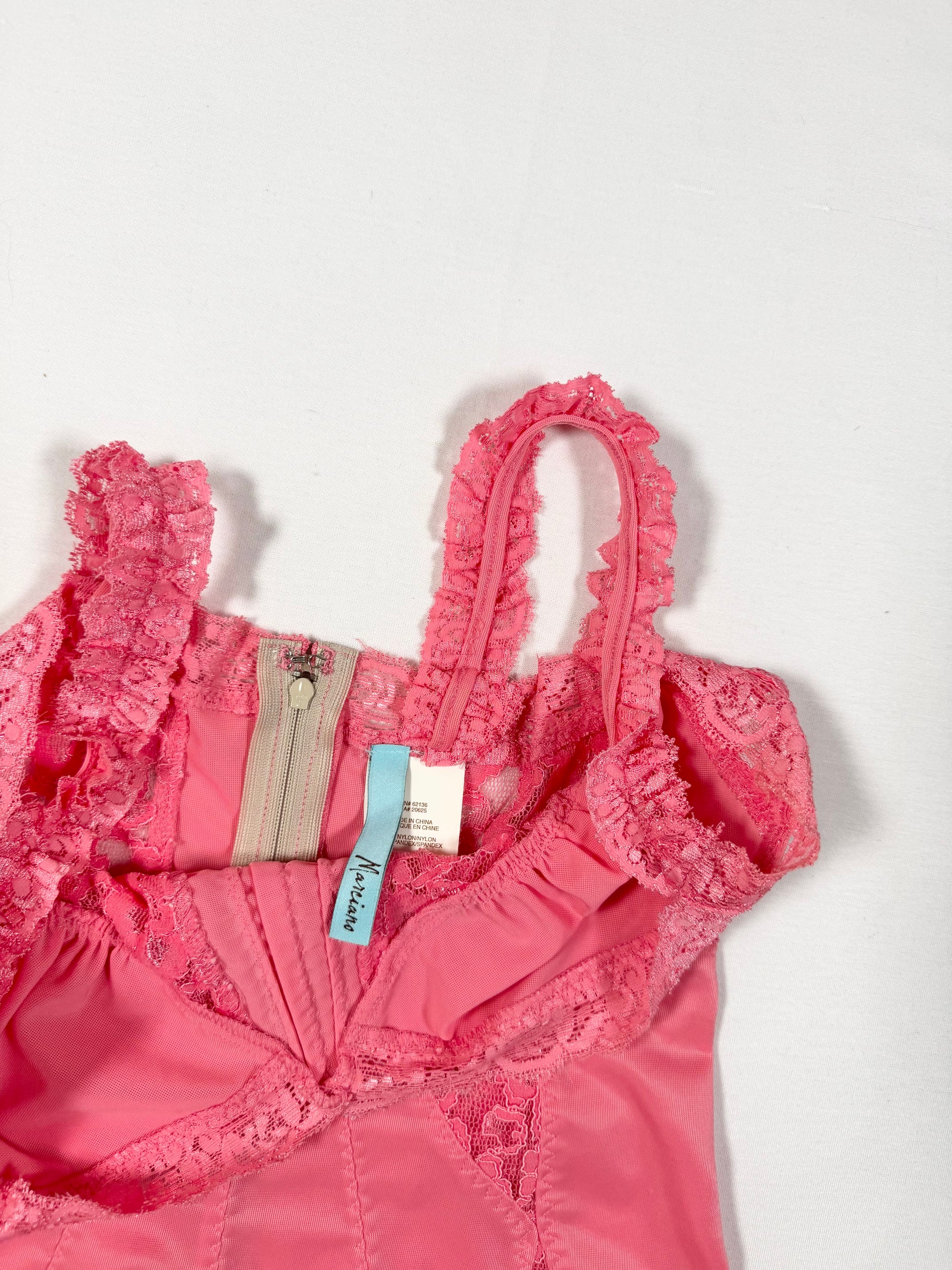 Stunning 00s peachy pink cami with lace details🤍Zip up back closure🤍