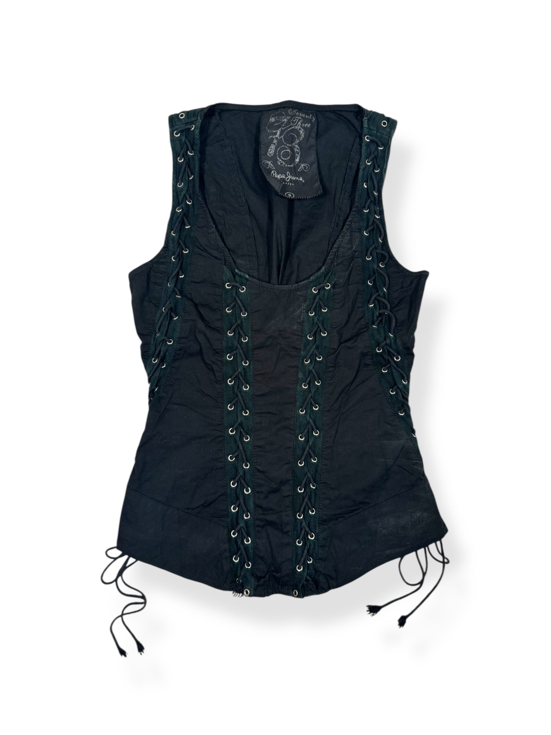 Insane 00s Pepe jeans corset tank🖤Black with lace up front sides and back🖤Personal purchase that doesn’t fit my bust🖤