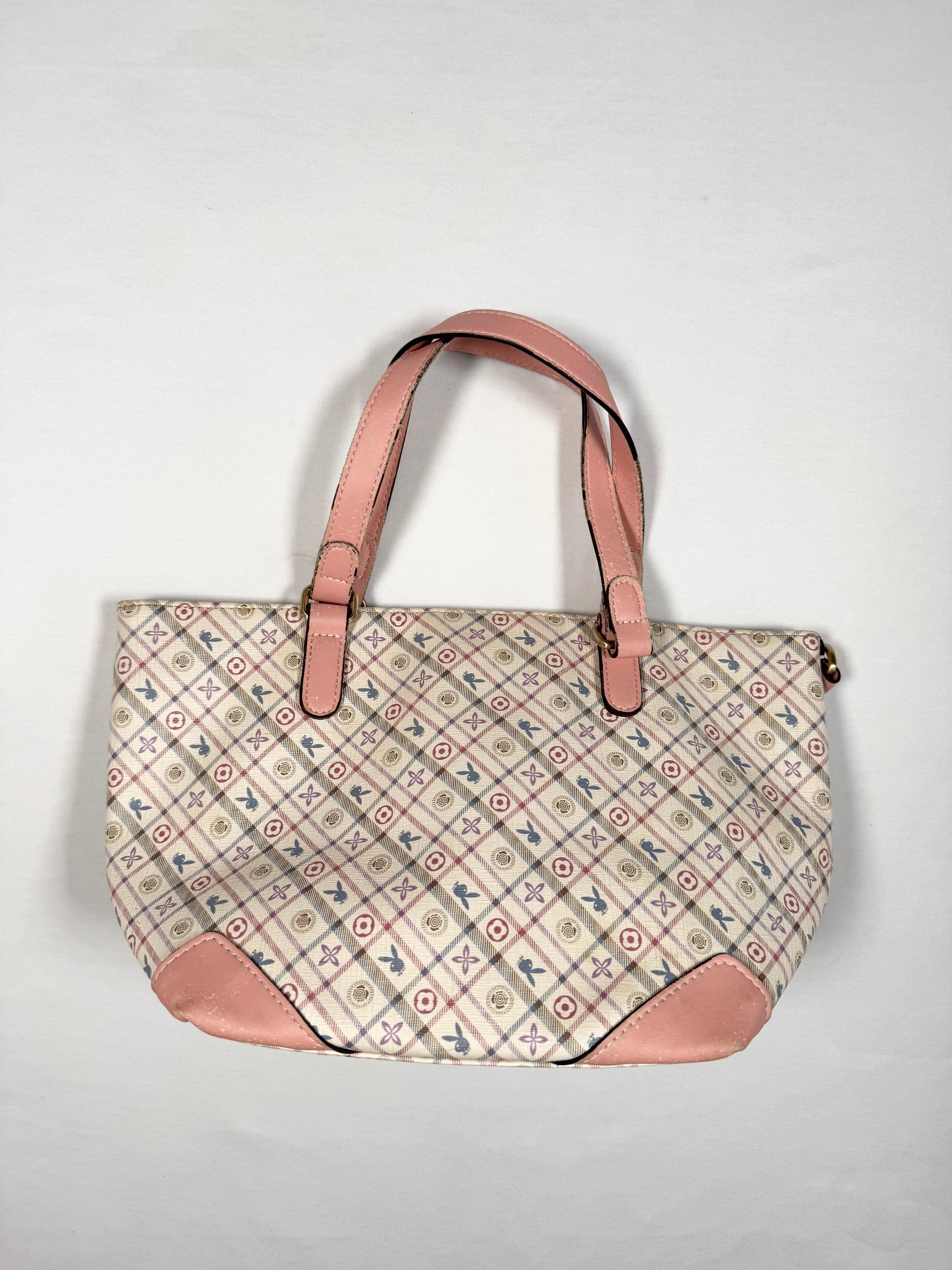 Adorable 00s playboy bag🤍Beige with plaid bunny print🤍Light pink bunny charm on the front🤍