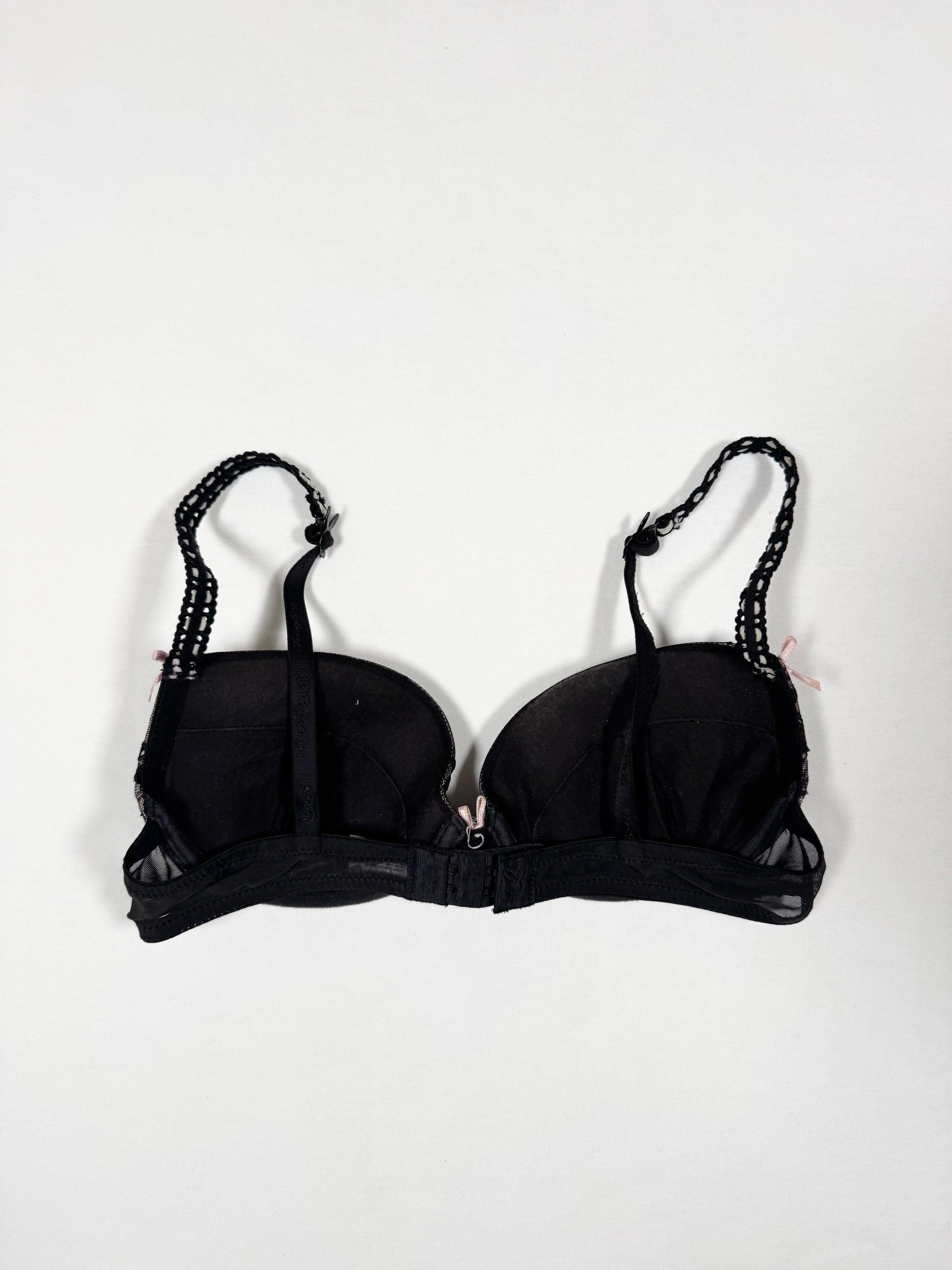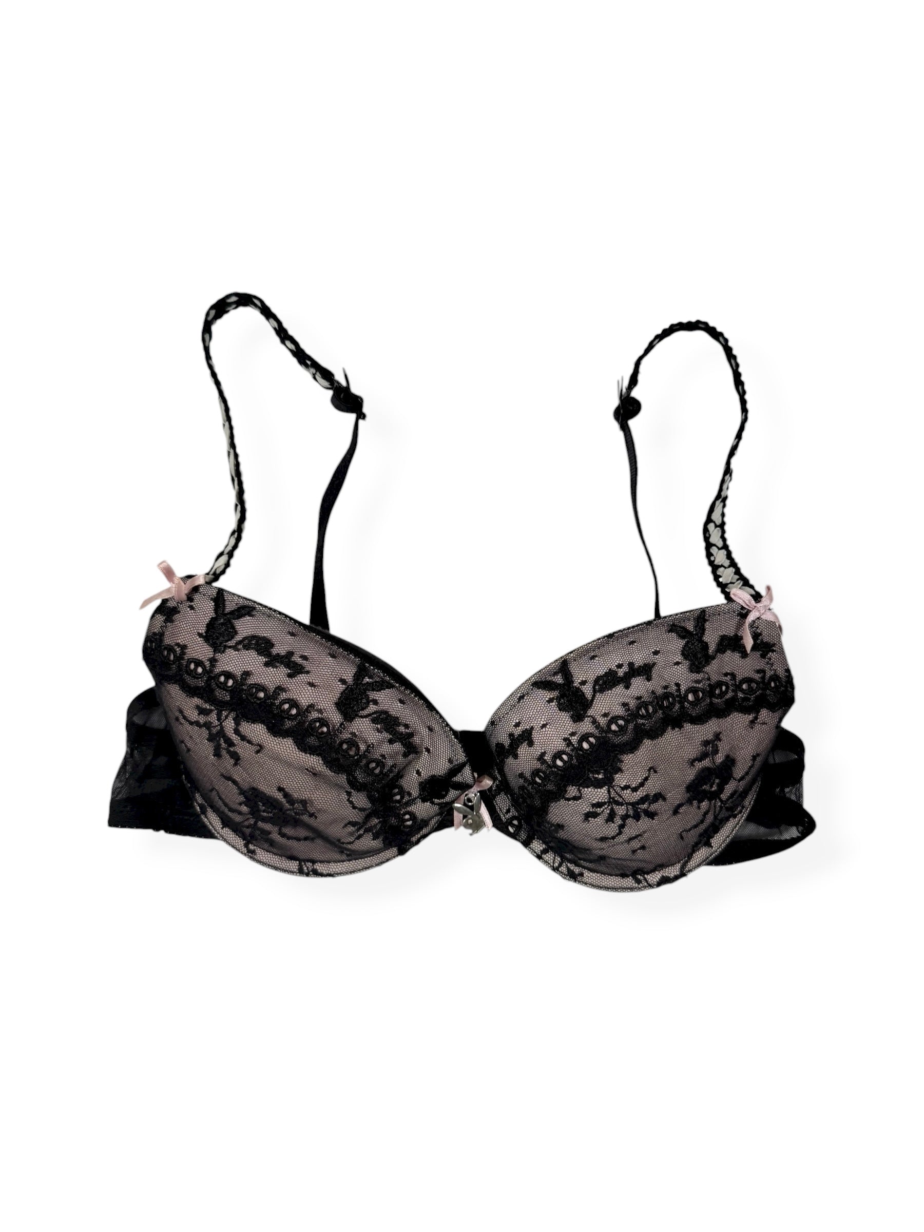 Adorable 00s playboy bra🖤Pink lining with black lace overlay fabric🖤Bunny logos embrodiered in the lace🖤