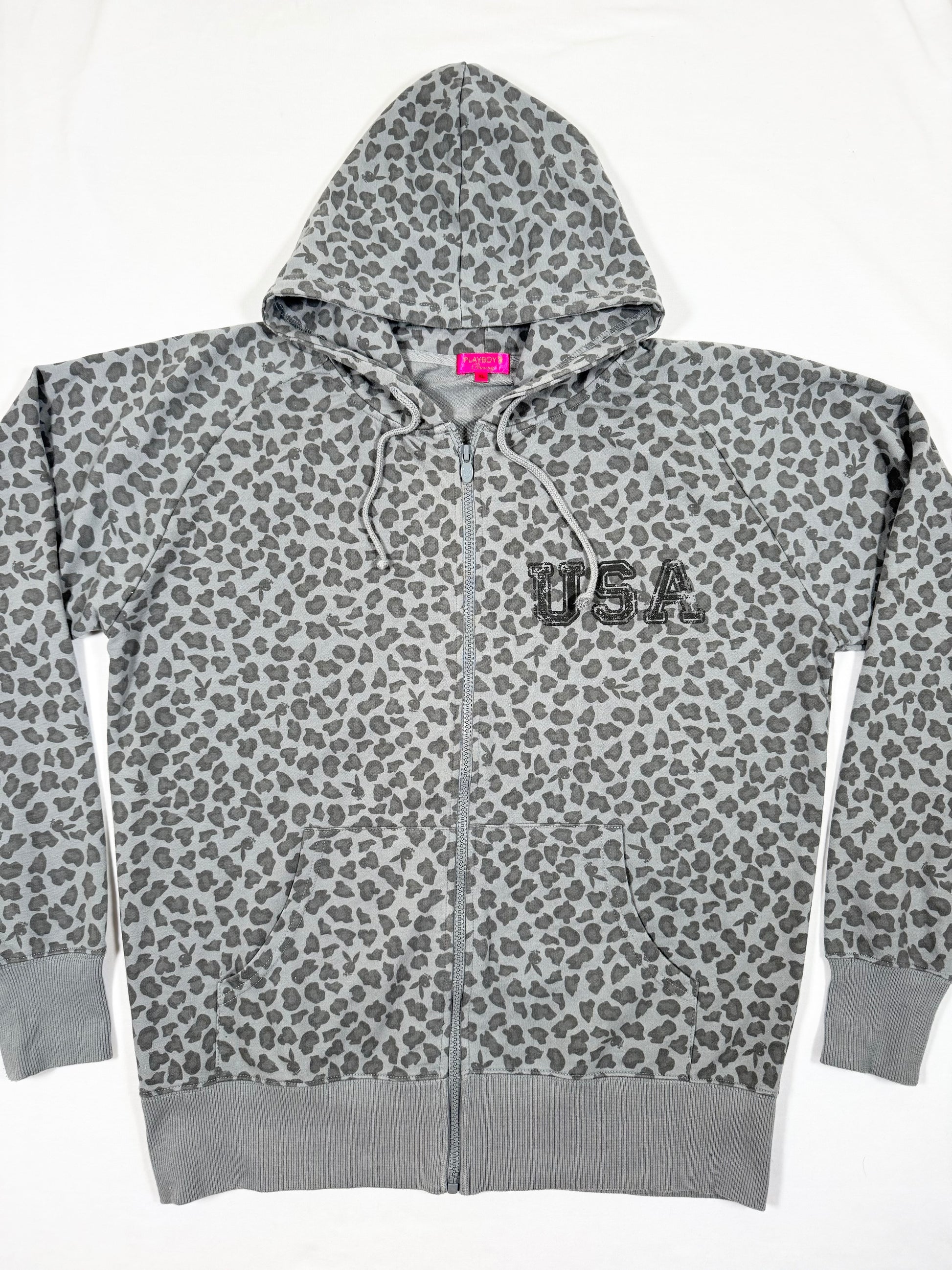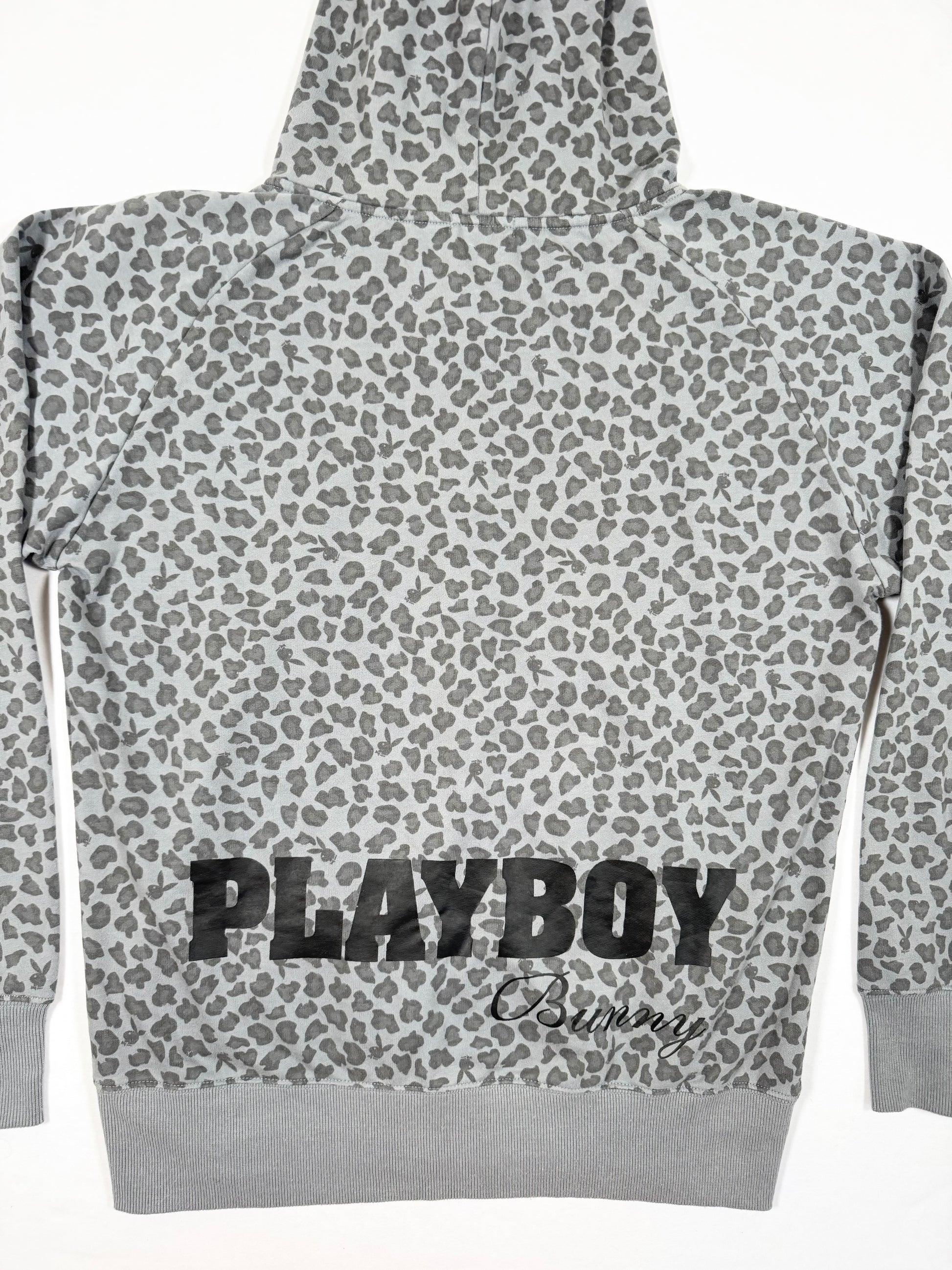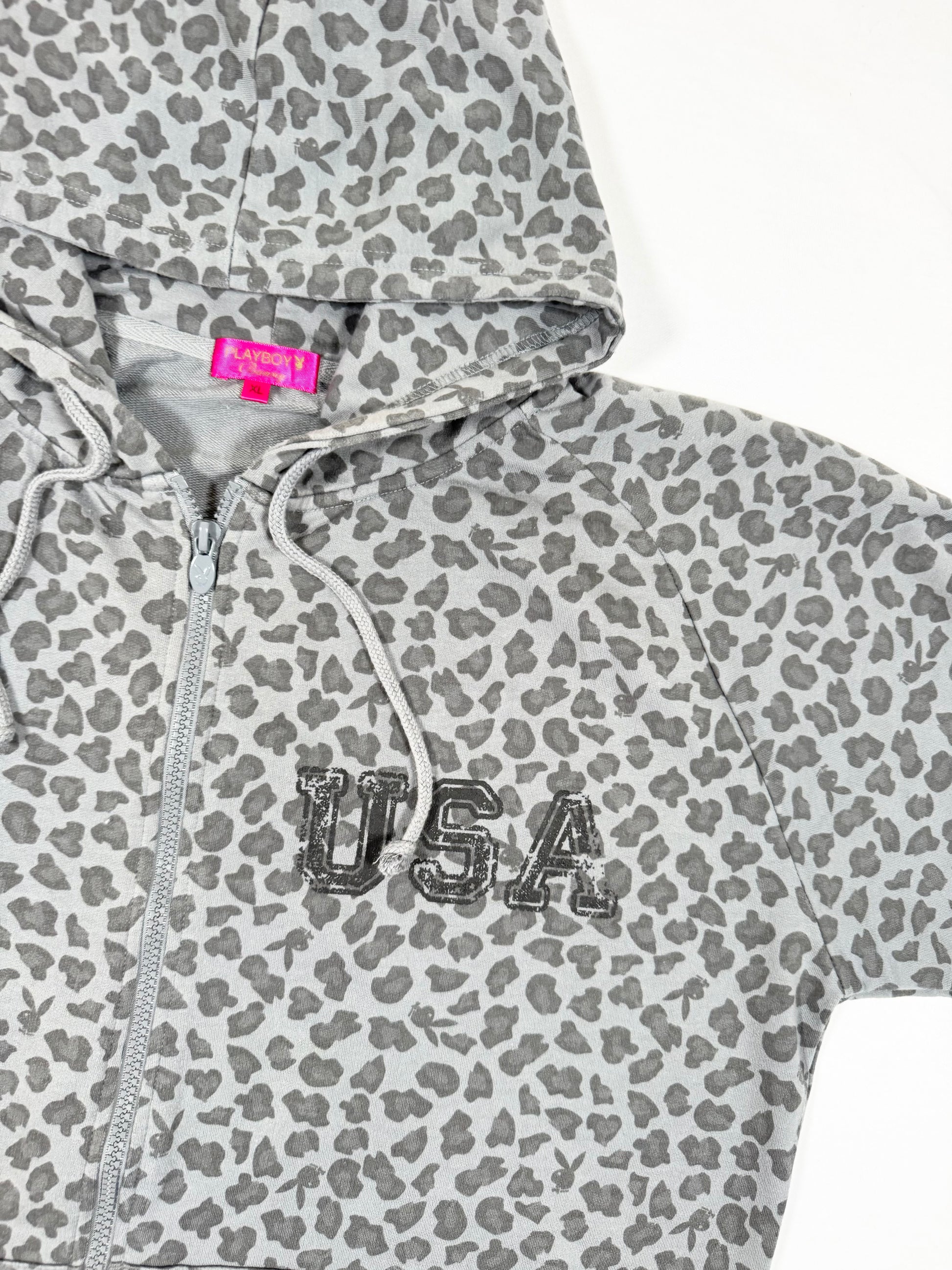 cute 00s grey leopard print playboy zip up hoodie🖤Black playboy bunny logo on the back and “USA” print on the front🖤