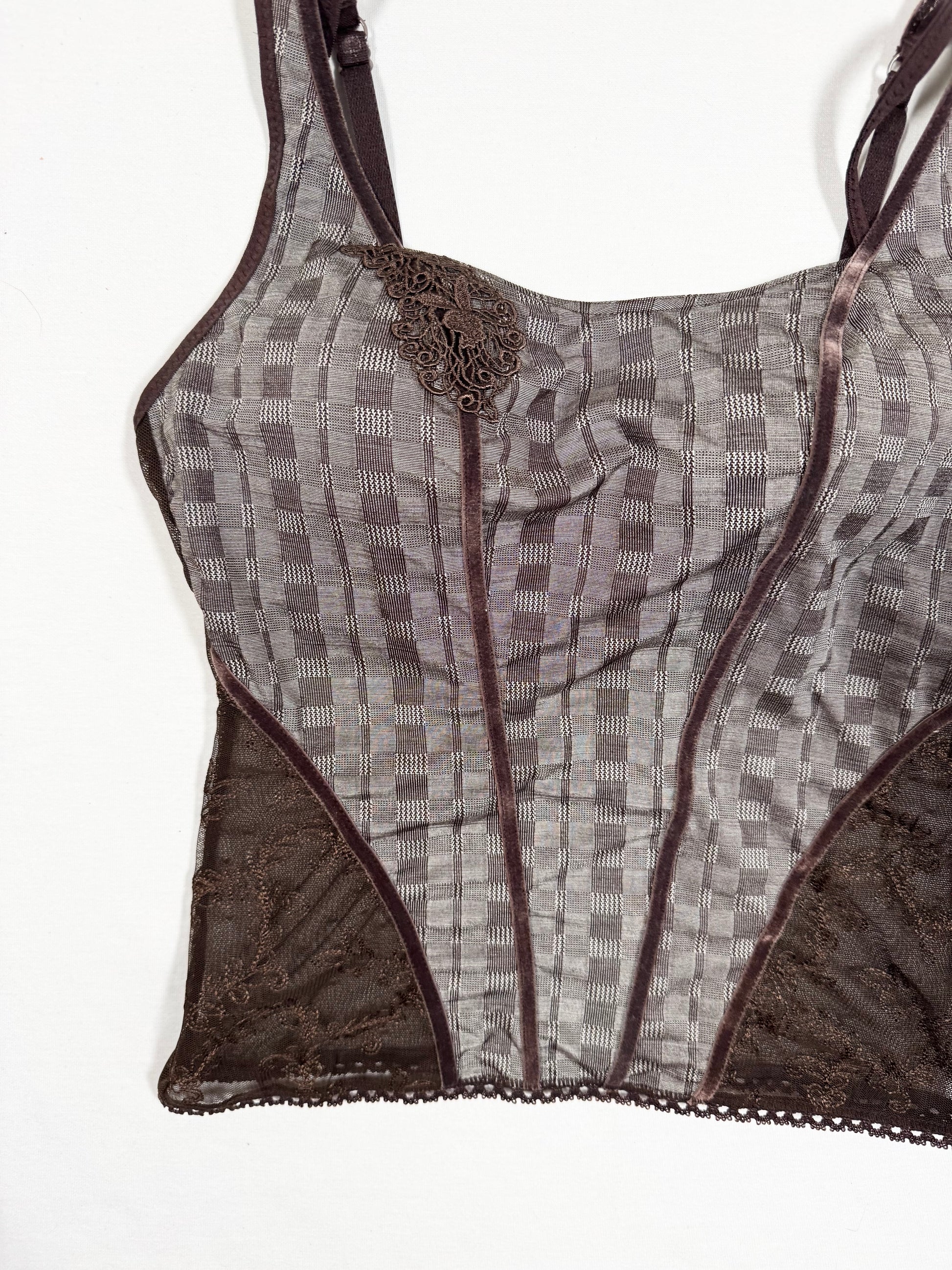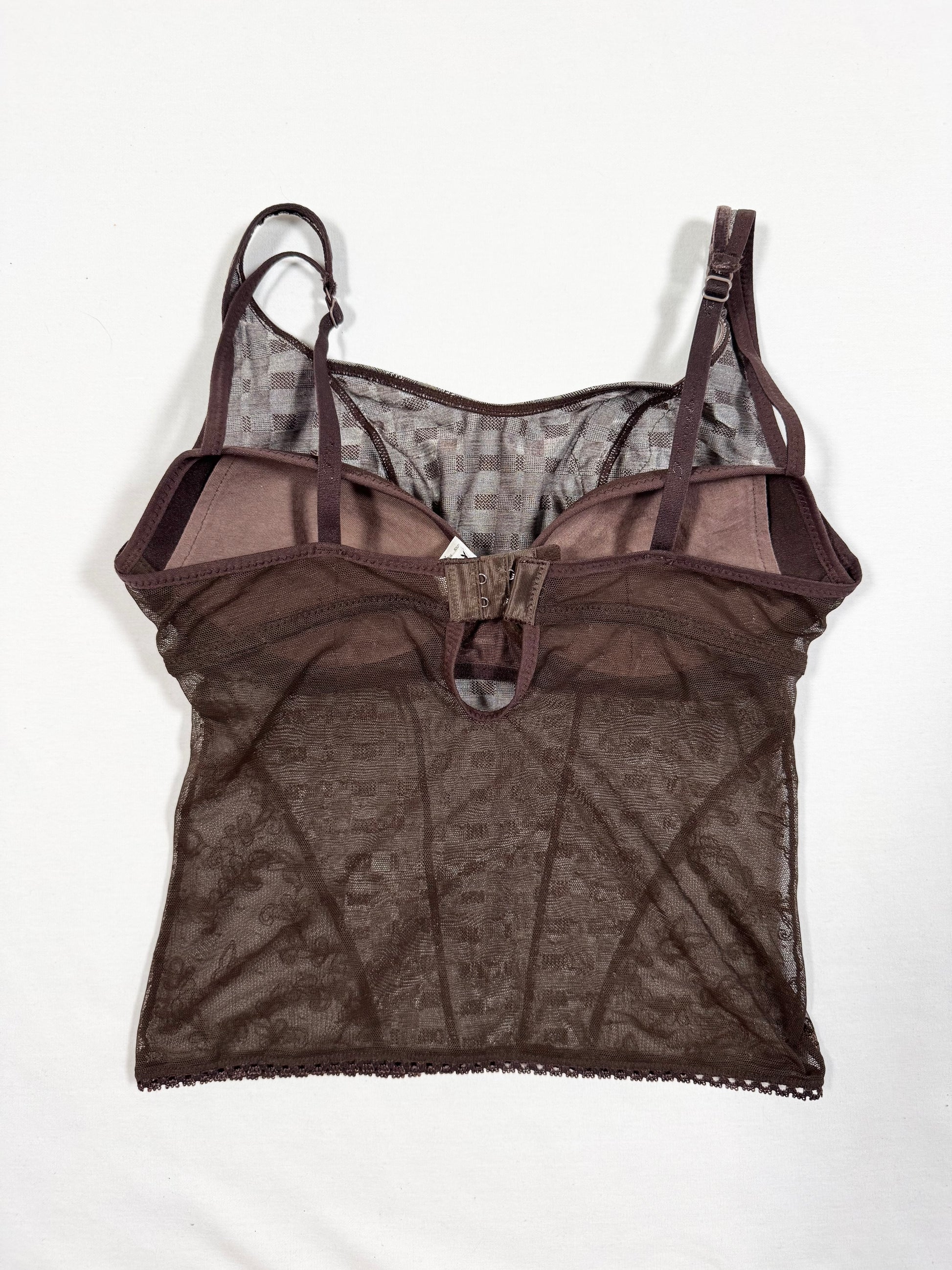Unique 00s playboy brown plaid cami with mesh sides🤎Embroidered bunny logo on the front🤎