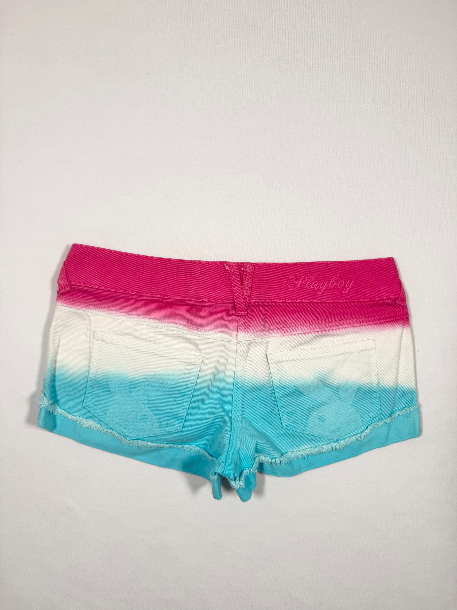 Unique 00s playboy low rise denim mini shorts🤍Popsicle vibe blue white and pink ombré🤍Ultimate 2012-2014 style🤍