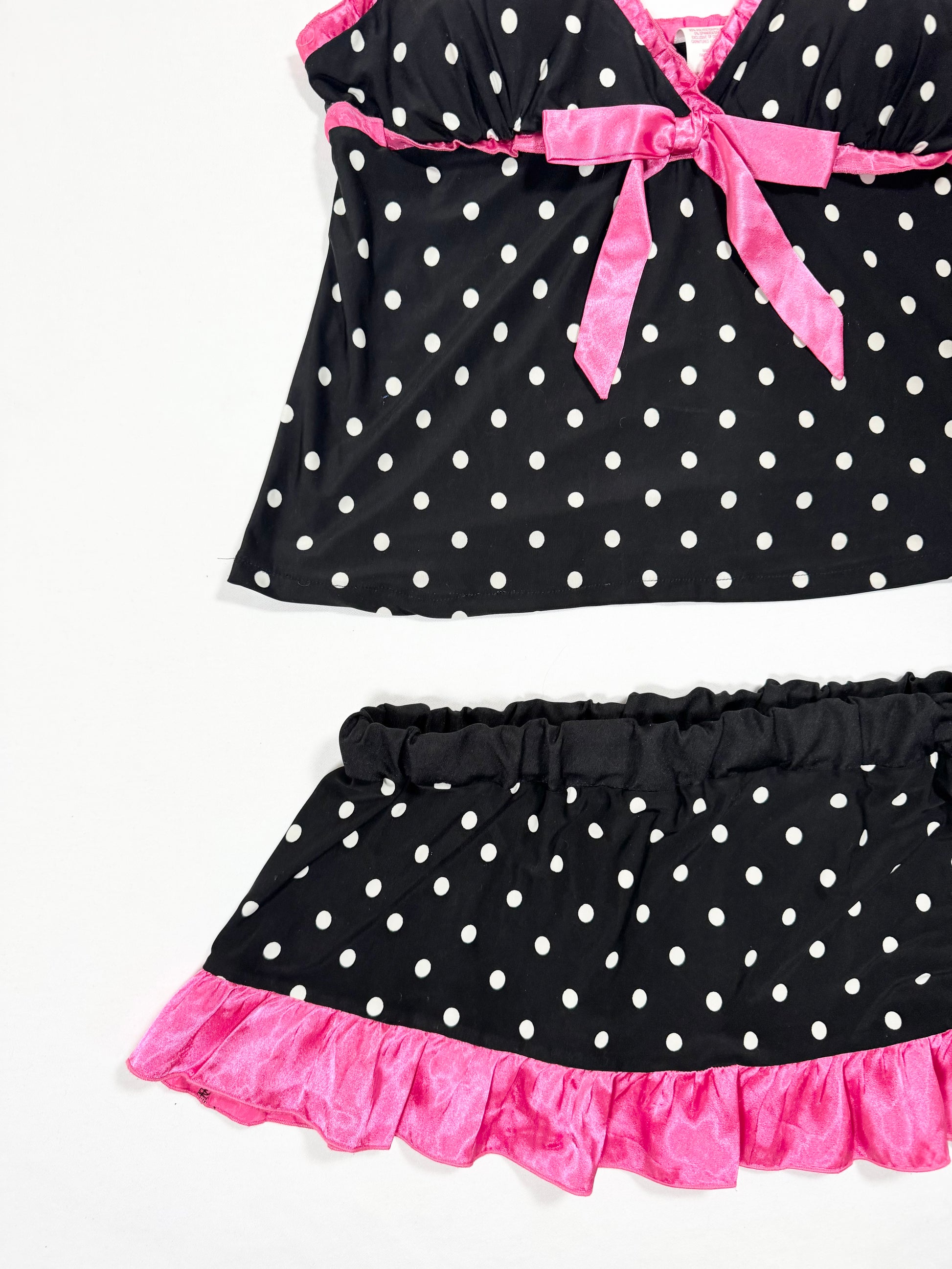 Adorable 00s polka dot cami set with pink satin trim and bow🩷