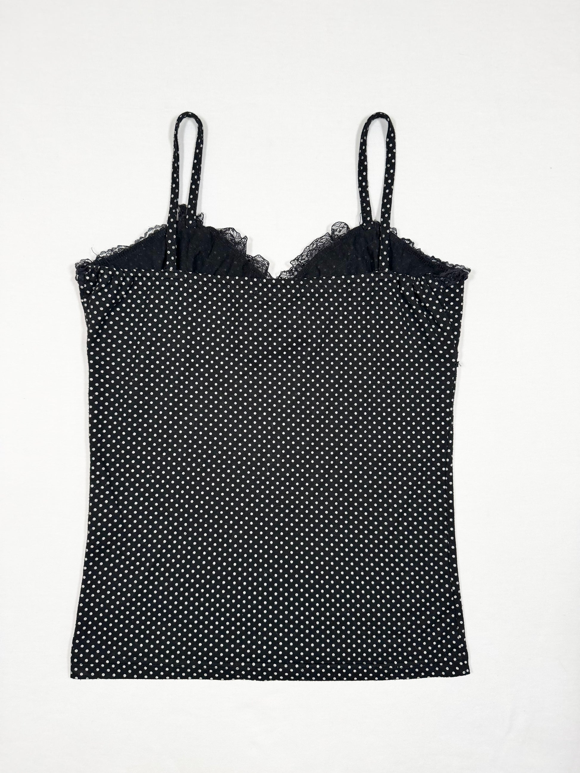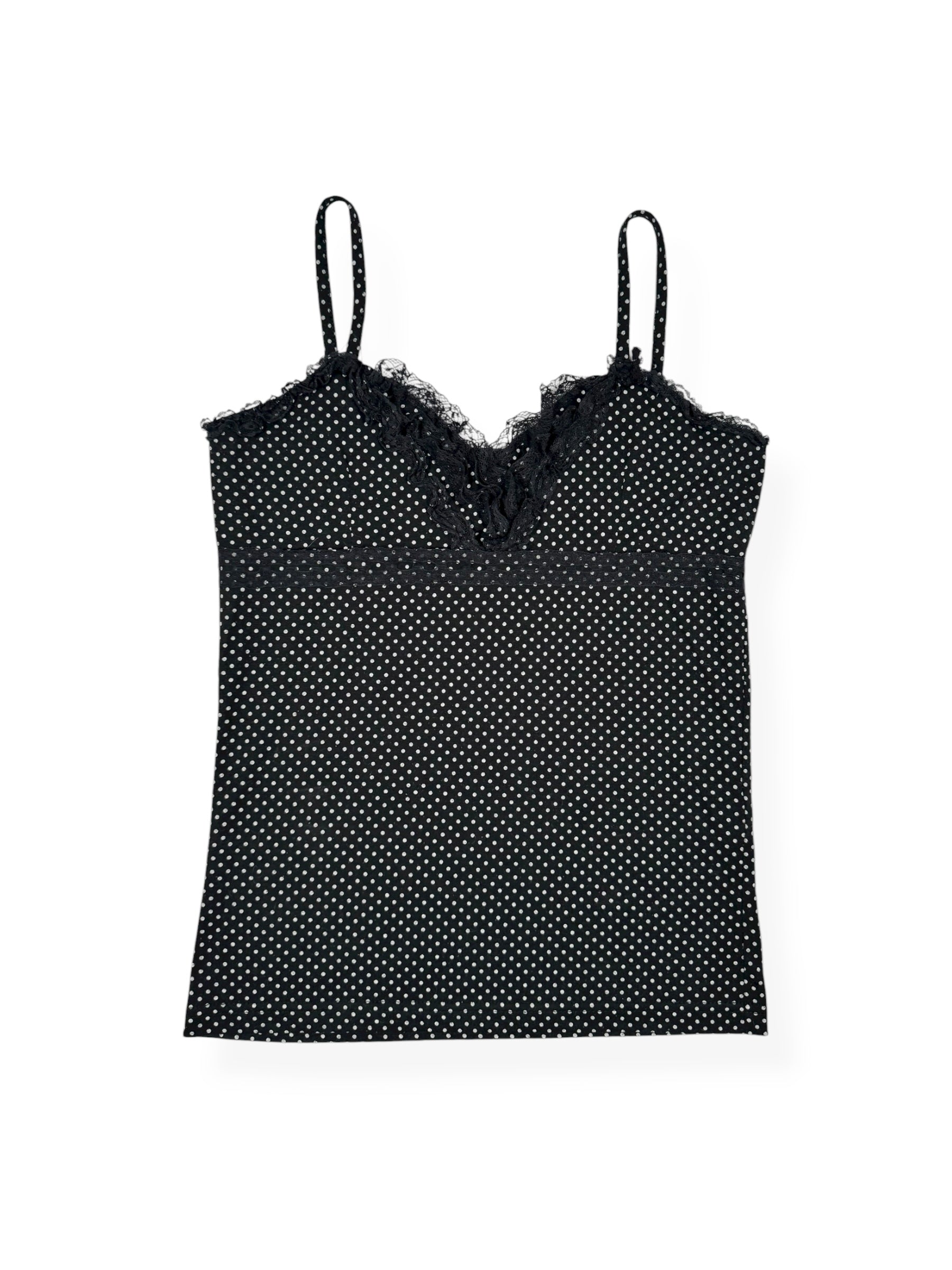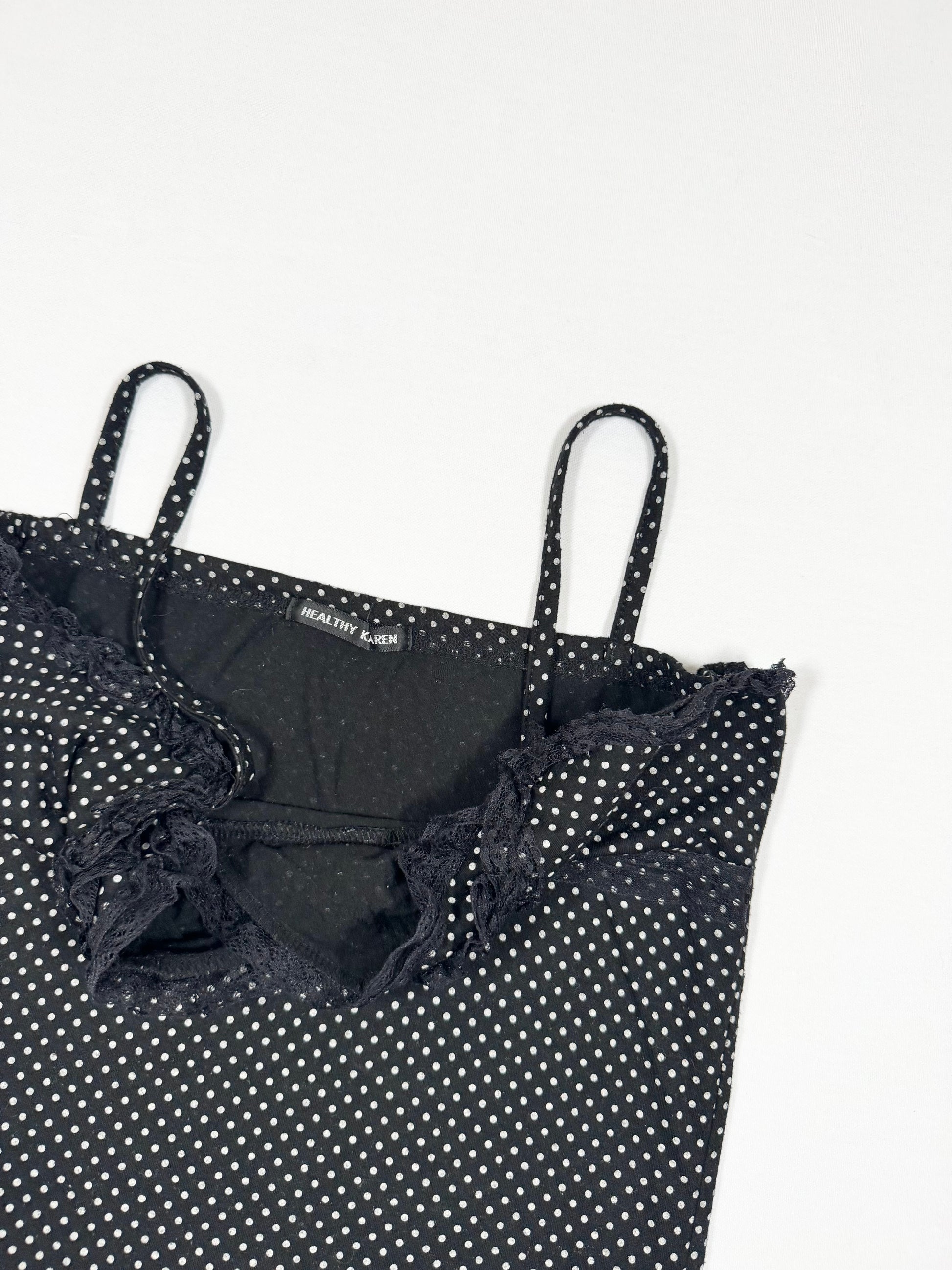 Adorable 00s black polka dot cami with ruffled lace bust🖤