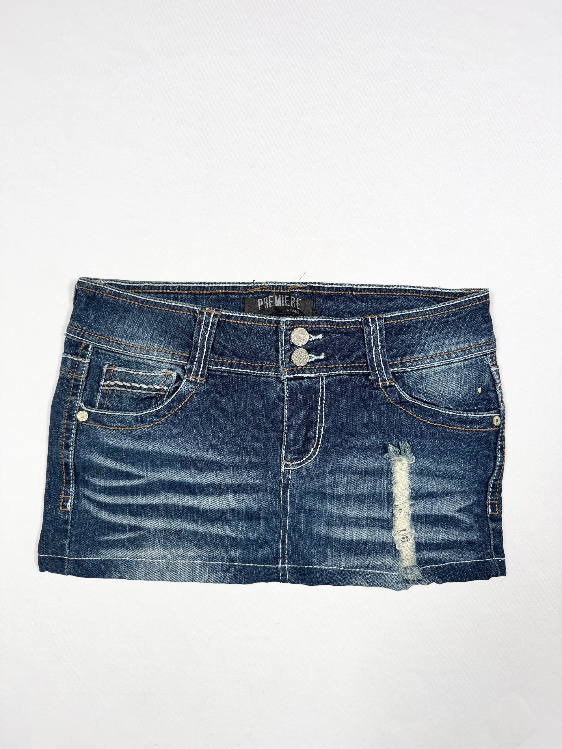 Super cute 00s low rise denim mini skirt by premiere🖤Diamante back pockets🖤