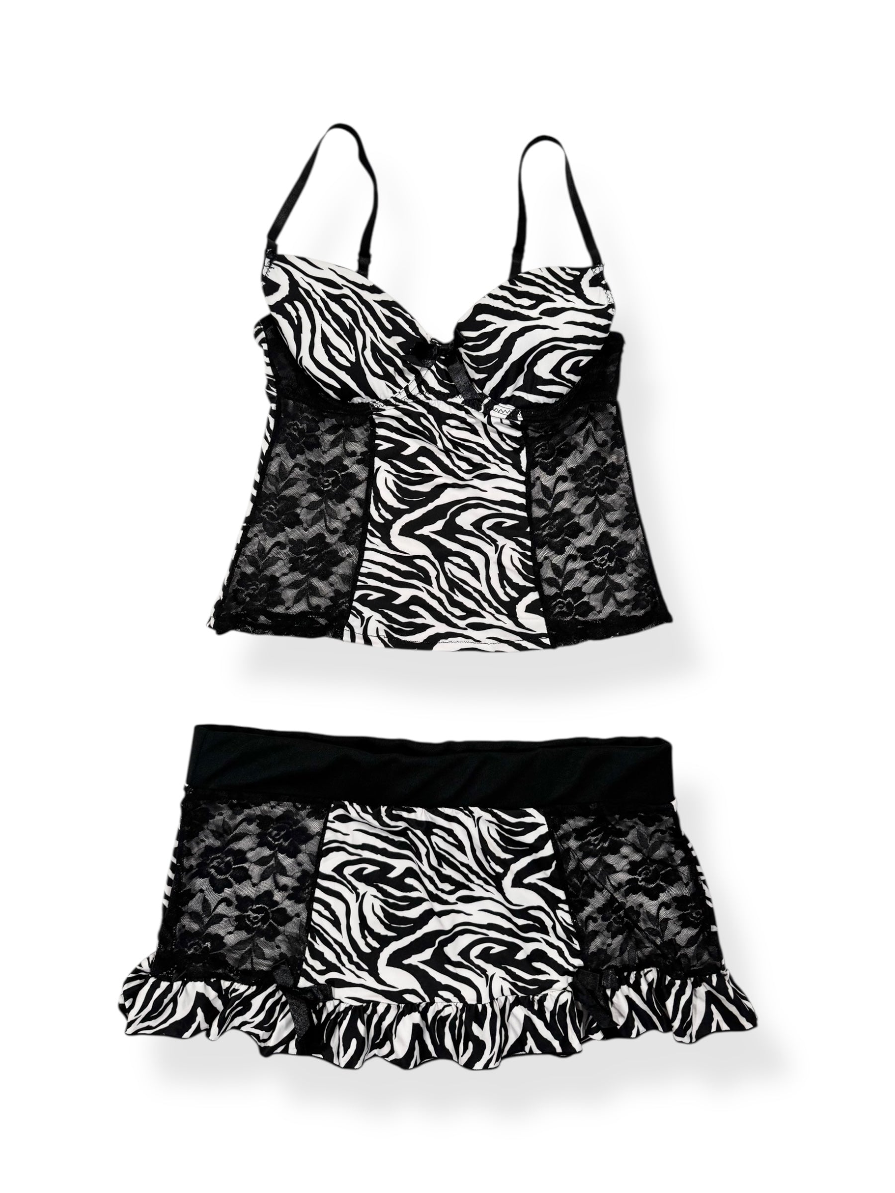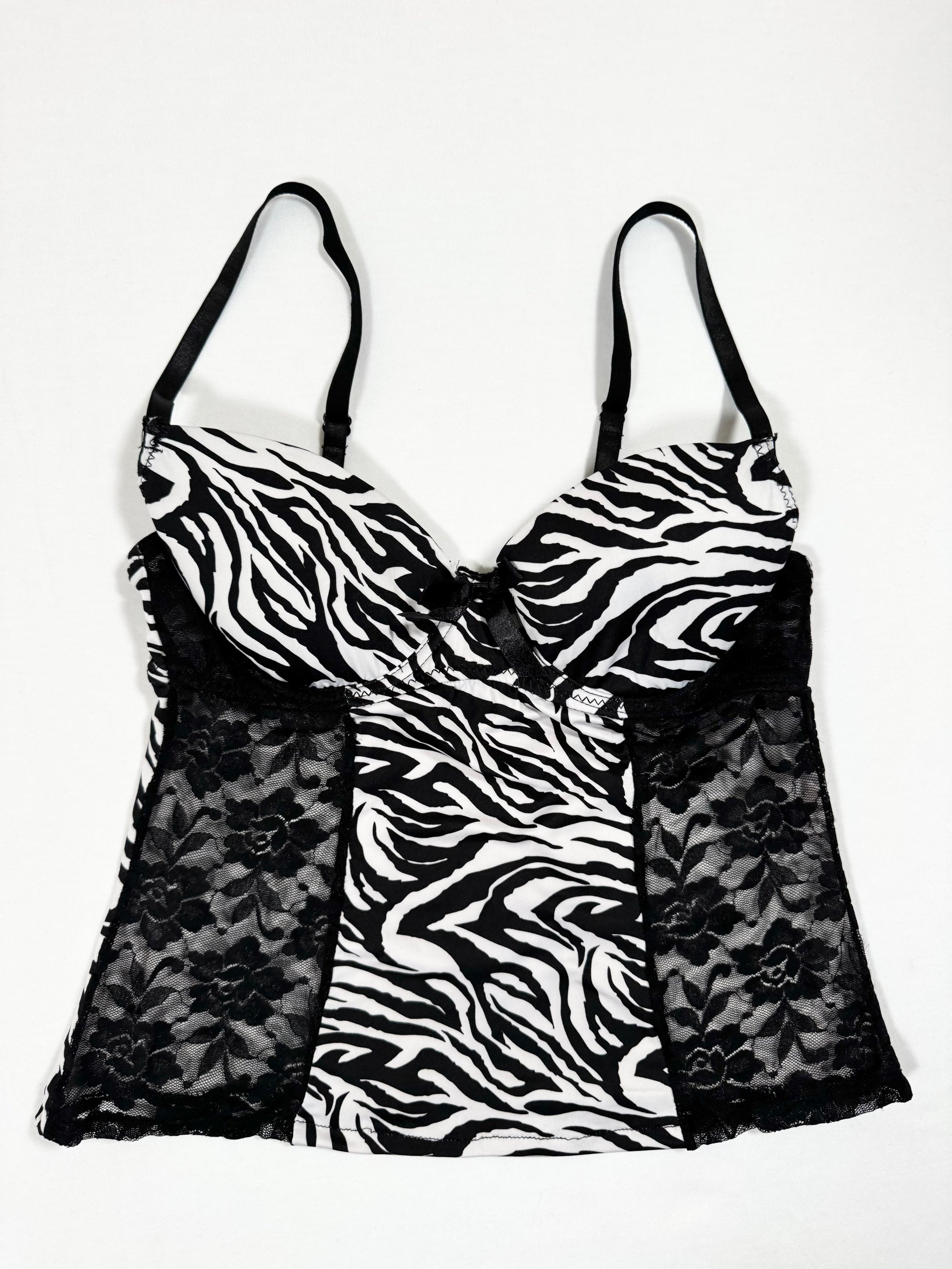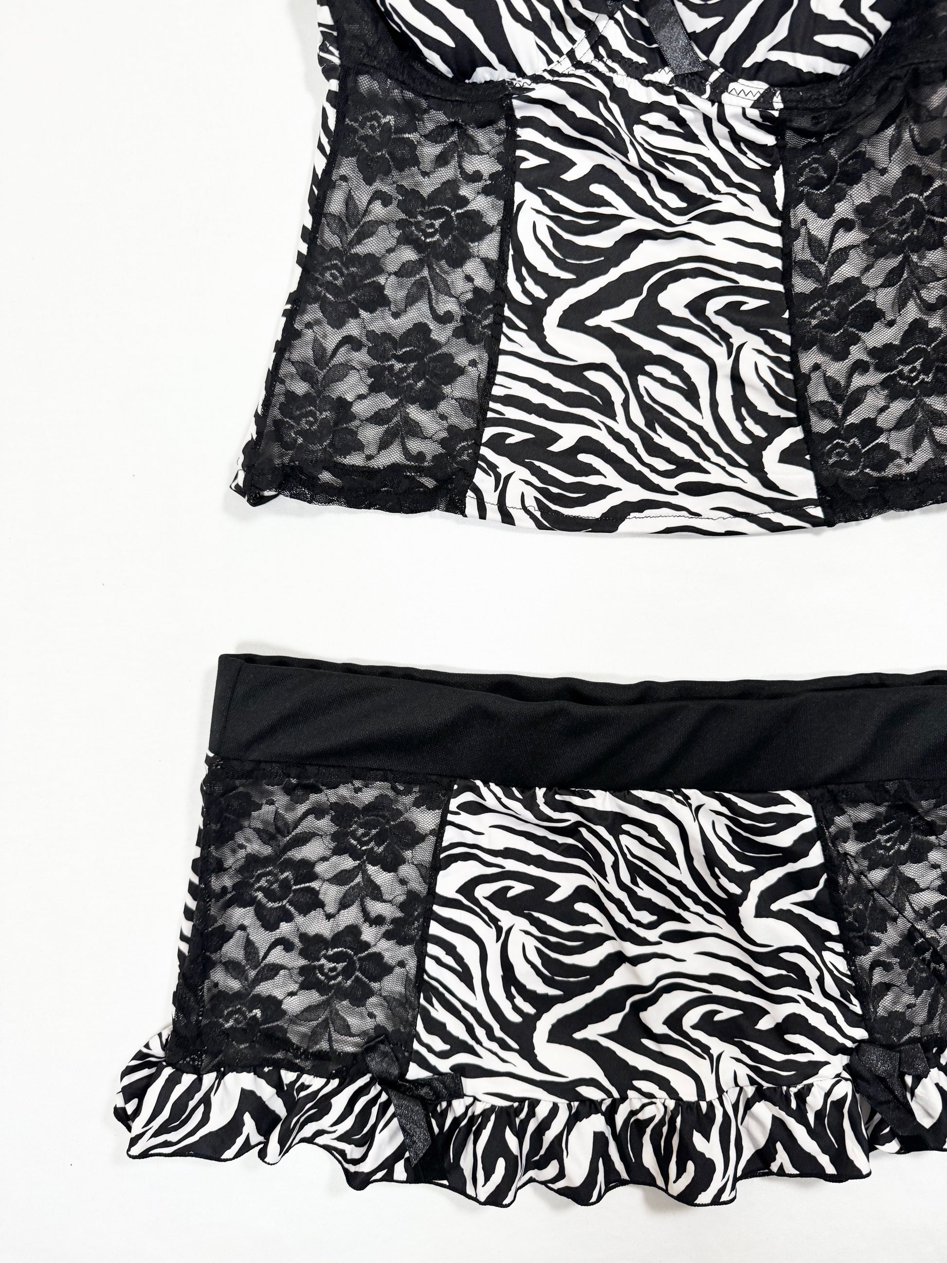 Hot 00s rampage zebra print cami and skirt set🖤lace panel details🖤
