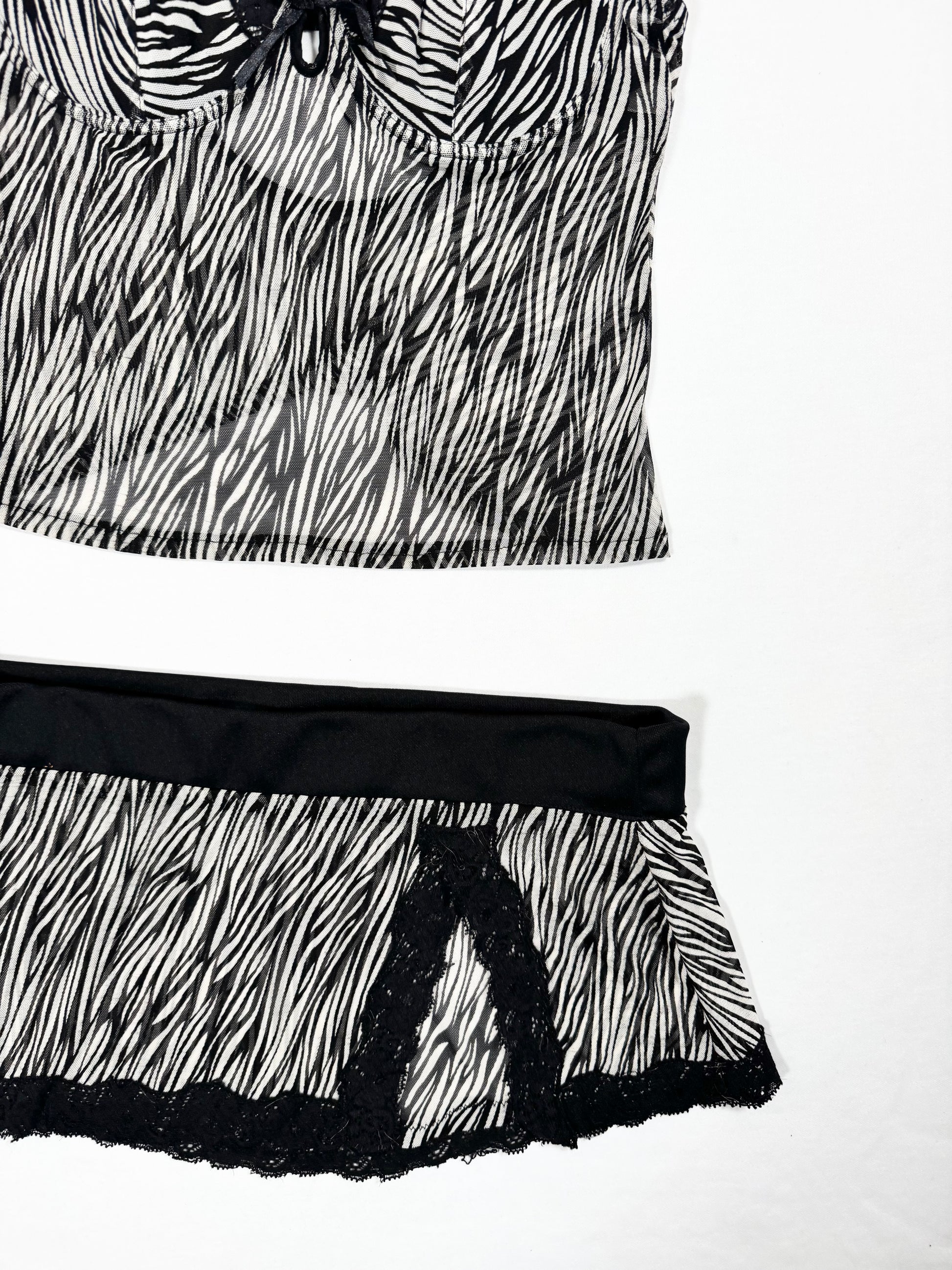 Hot 00s rampage zebra print micromesh cami and skirt set🖤Black lace trim🖤